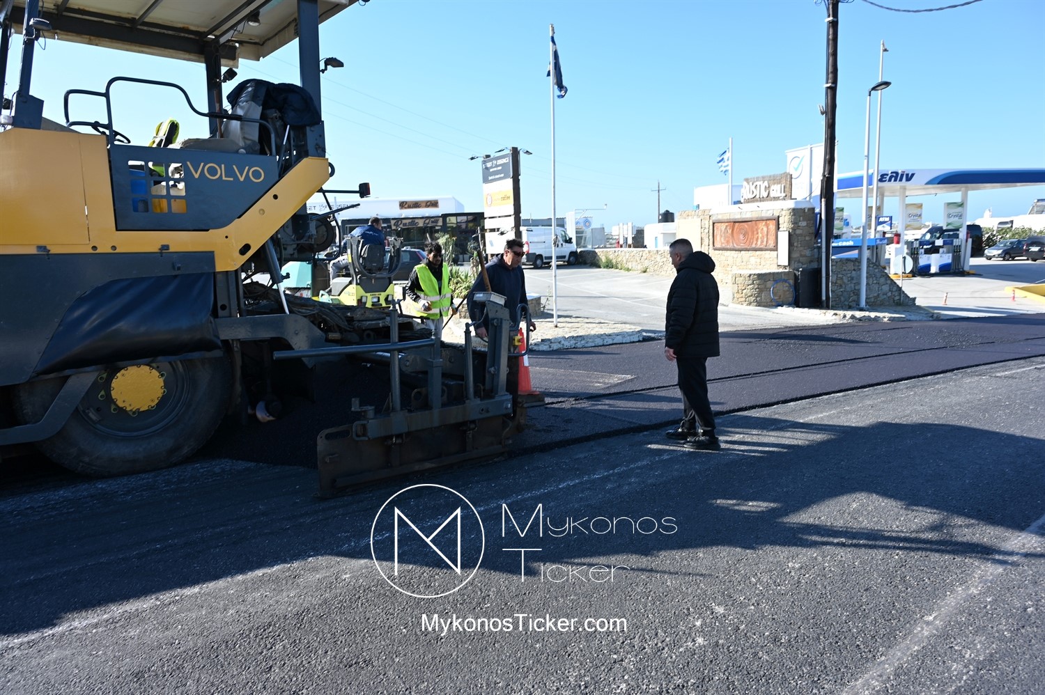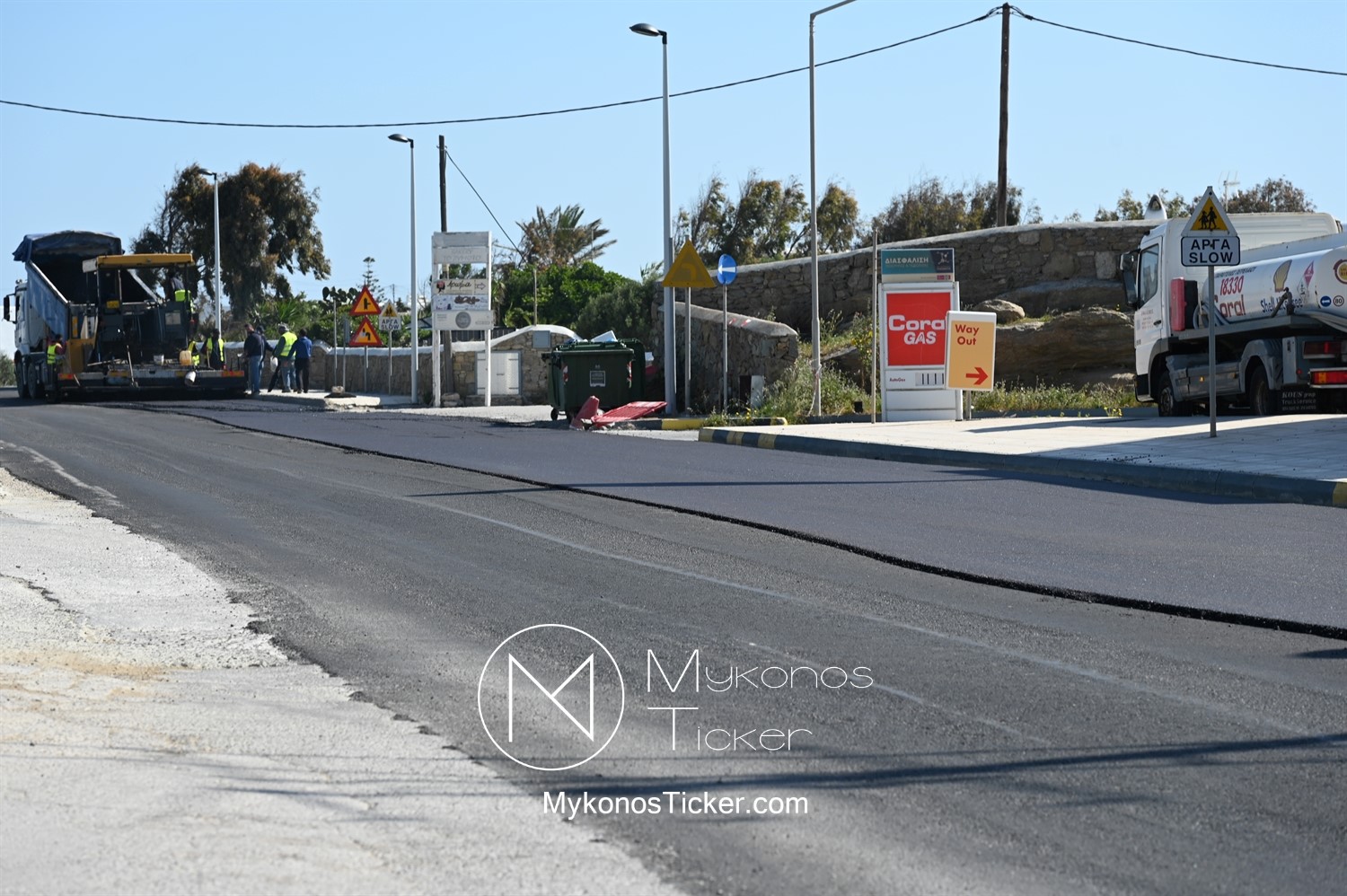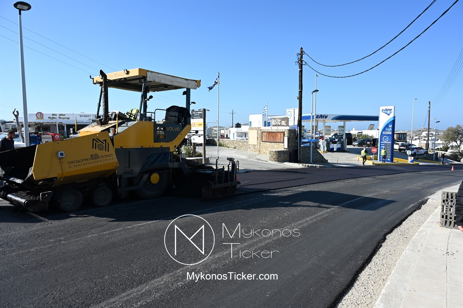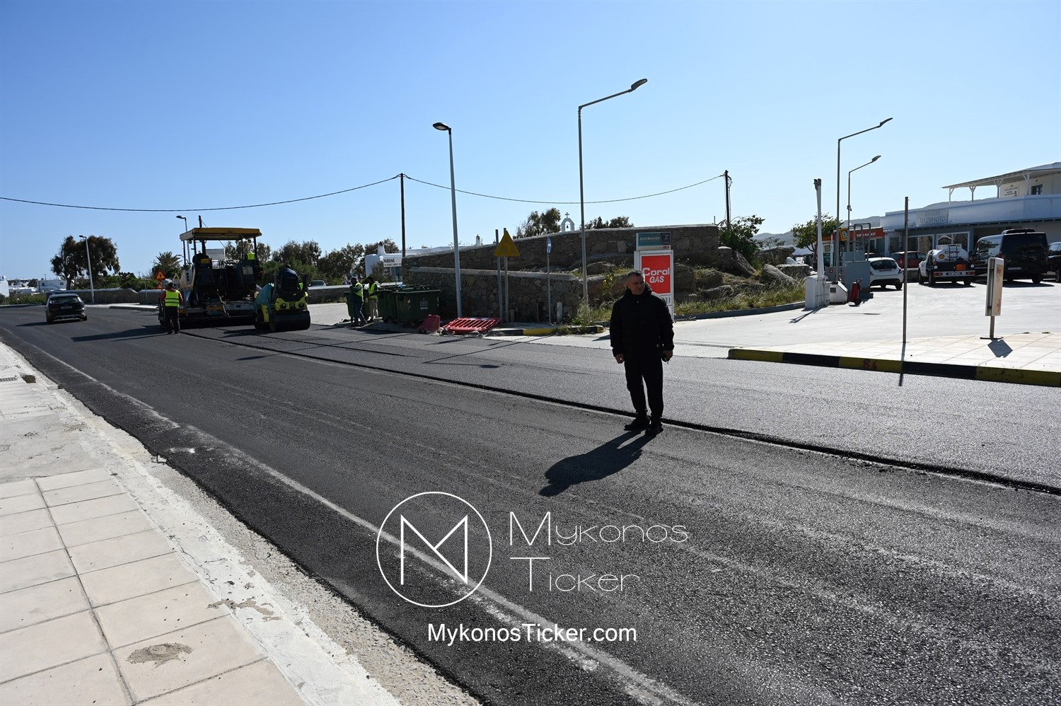 Στα πλαίσια ολοκλήρωσης του έργου «Προωθητικός Αγωγός Αφαλάτωσης Κόρφου Προς Κεντρικές Δεξαμενές Πόλης Μυκόνου, ΔΕΥΑ Μυκόνου», εκτελούνται εργασίες ανακατασκευής ασφαλτοτάπητα επί του νέου Περιφερειακού δρόμου που συμβάλλουν στη βελτίωση του οδικού δικτύου και ενισχύουν την ασφάλεια των πολιτών.