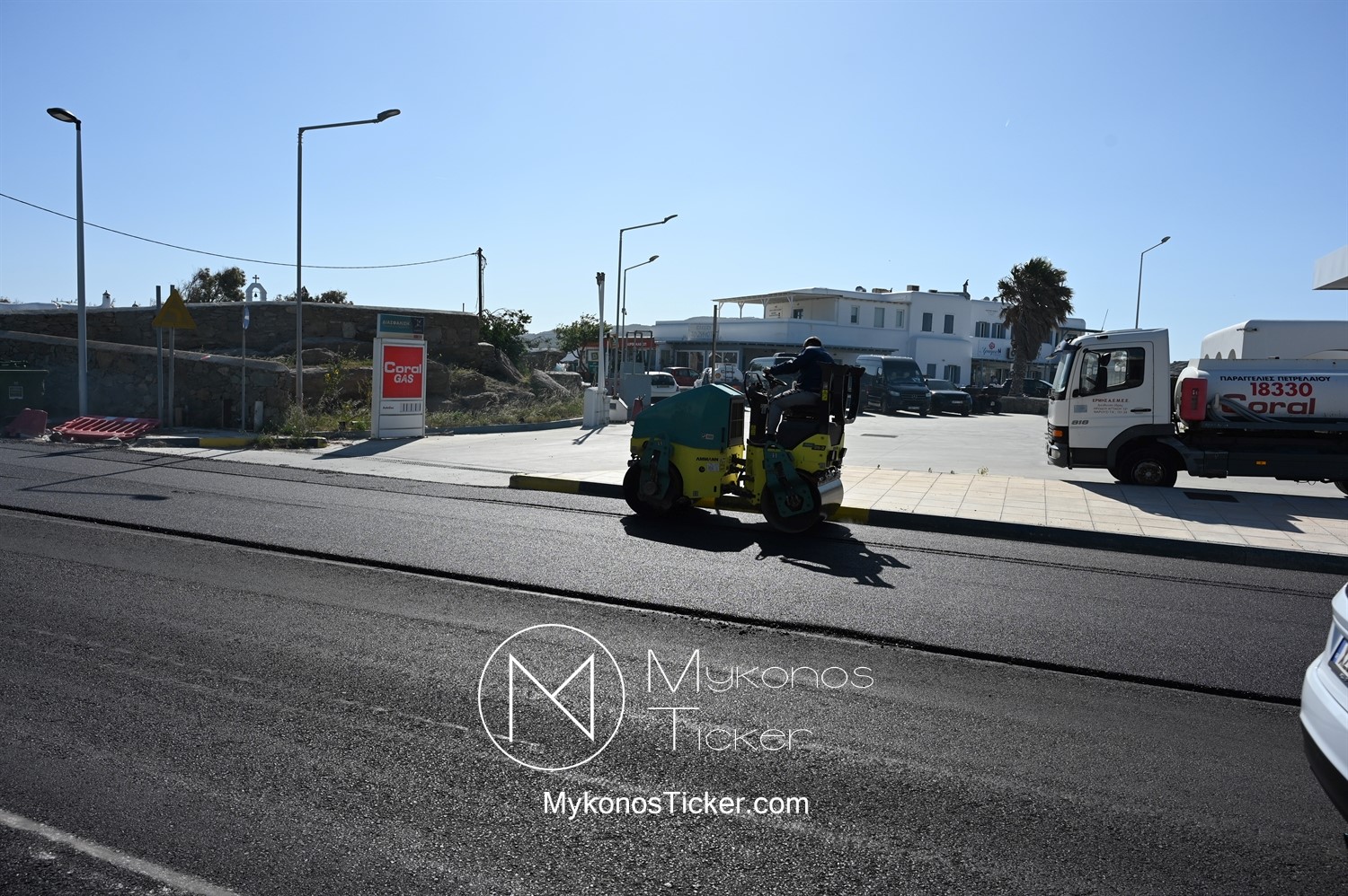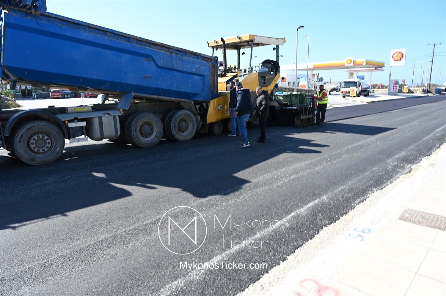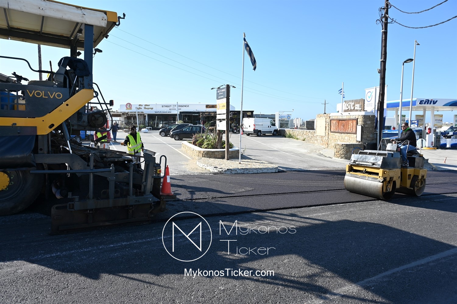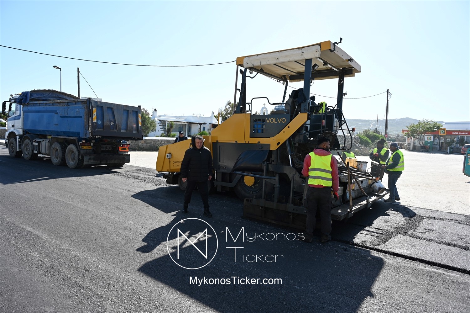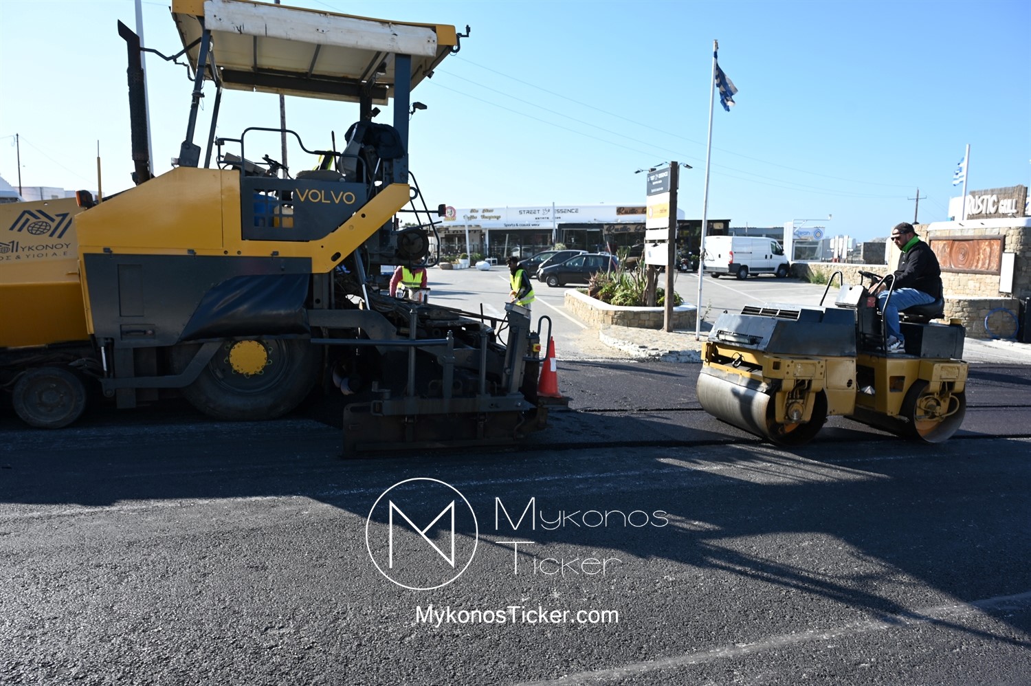 Στα πλαίσια ολοκλήρωσης του έργου «Προωθητικός Αγωγός Αφαλάτωσης Κόρφου Προς Κεντρικές Δεξαμενές Πόλης Μυκόνου, ΔΕΥΑ Μυκόνου», εκτελούνται εργασίες ανακατασκευής ασφαλτοτάπητα επί του νέου Περιφερειακού δρόμου που συμβάλλουν στη βελτίωση του οδικού δικτύου και ενισχύουν την ασφάλεια των πολιτών.
