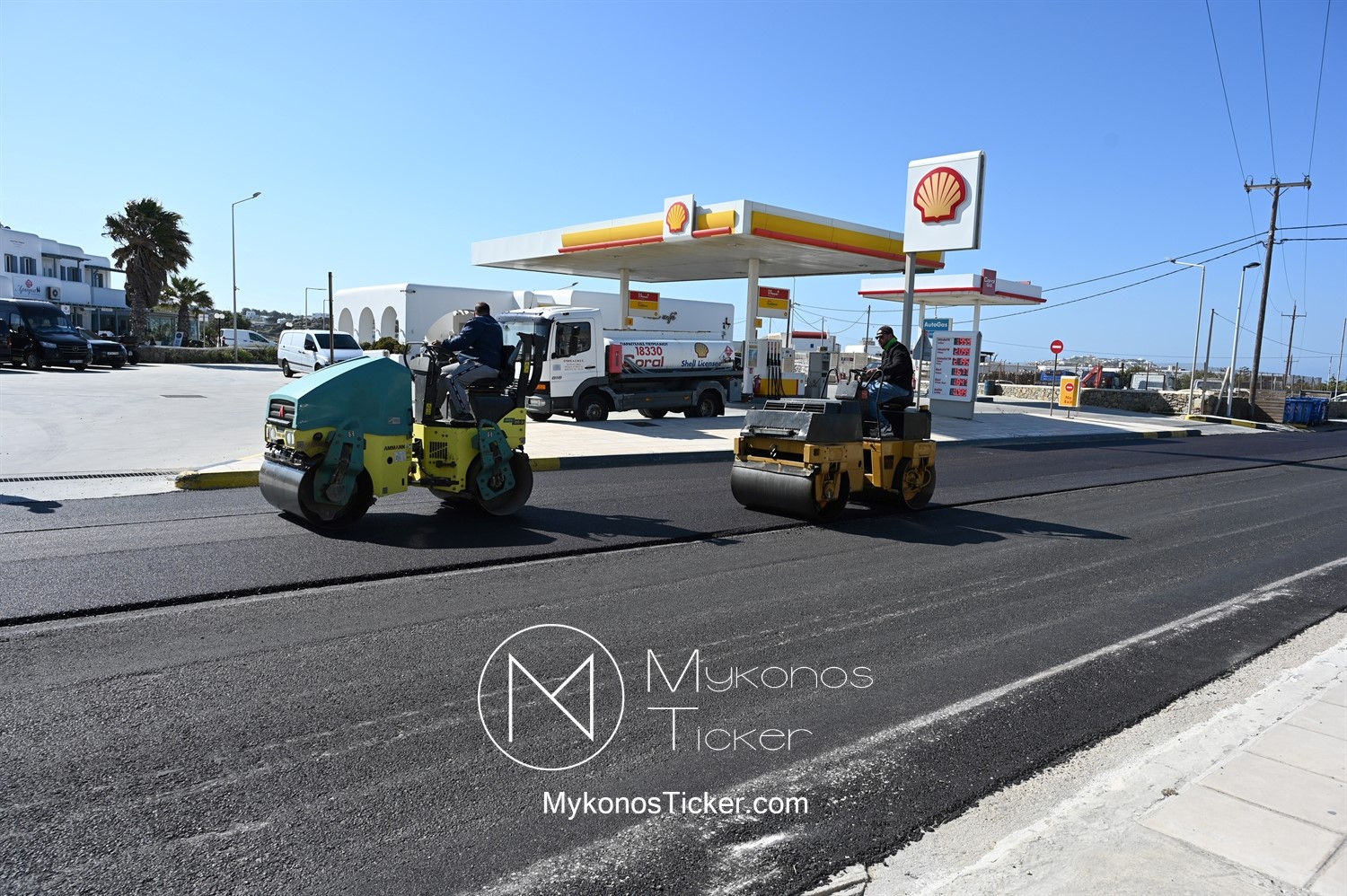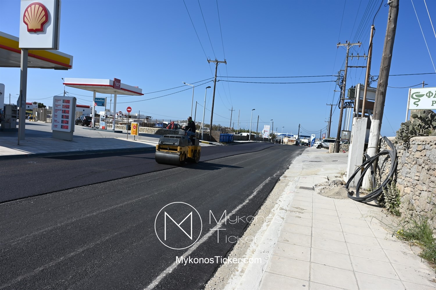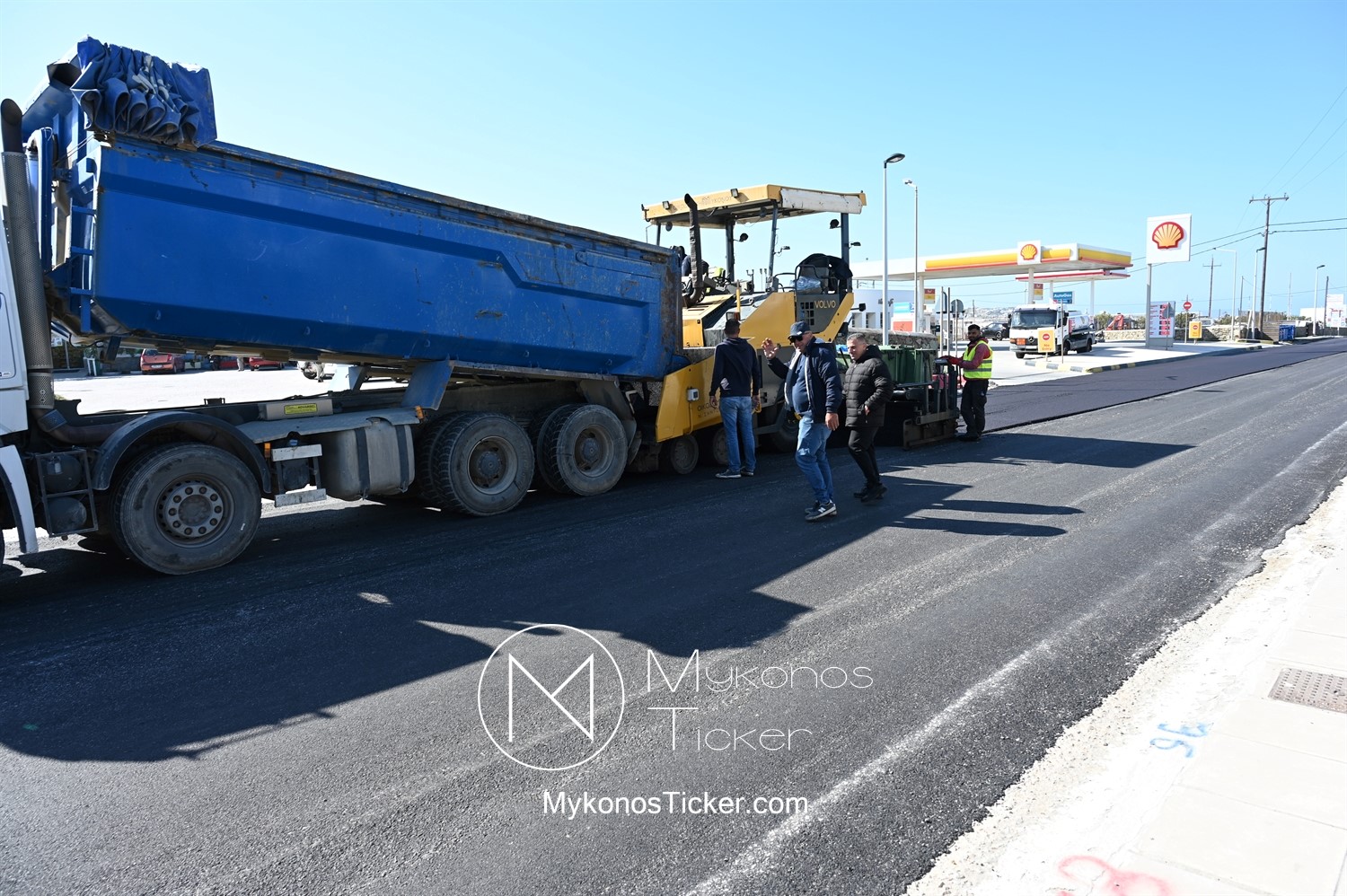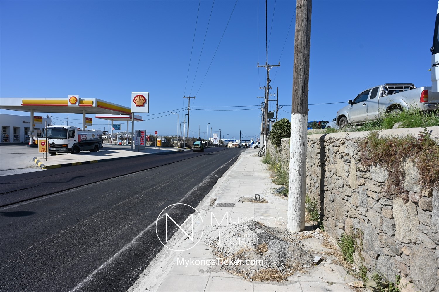 Στα πλαίσια ολοκλήρωσης του έργου «Προωθητικός Αγωγός Αφαλάτωσης Κόρφου Προς Κεντρικές Δεξαμενές Πόλης Μυκόνου, ΔΕΥΑ Μυκόνου», εκτελούνται εργασίες ανακατασκευής ασφαλτοτάπητα επί του νέου Περιφερειακού δρόμου που συμβάλλουν στη βελτίωση του οδικού δικτύου και ενισχύουν την ασφάλεια των πολιτών.