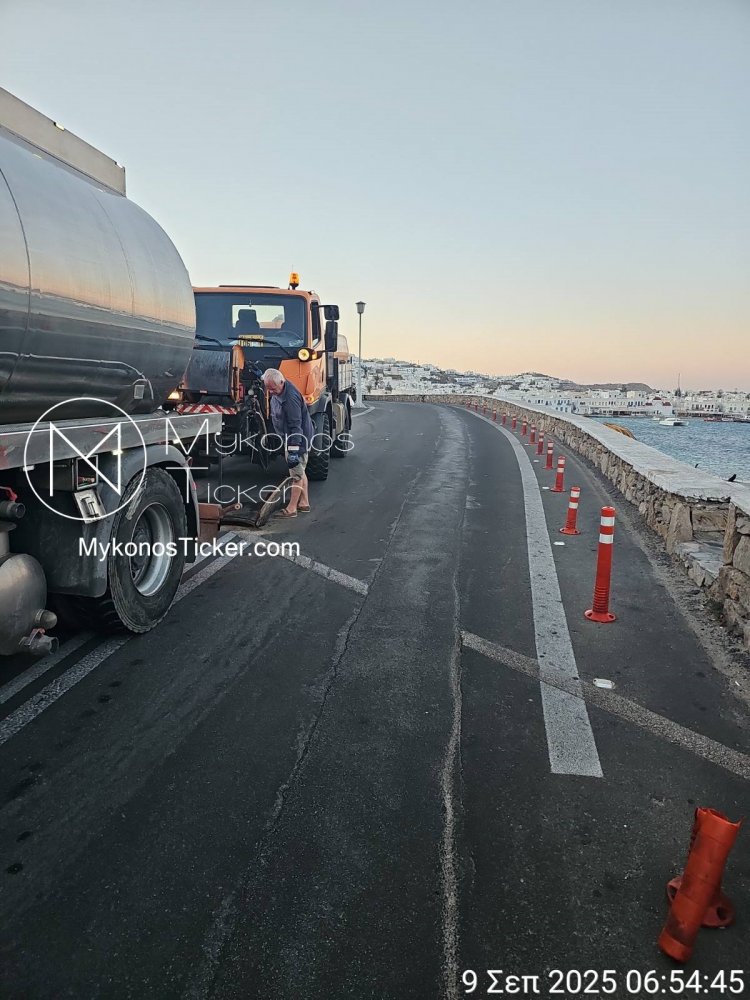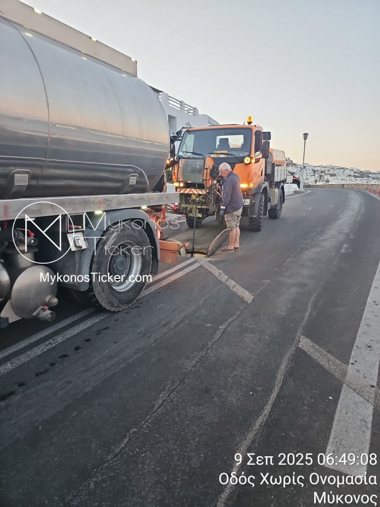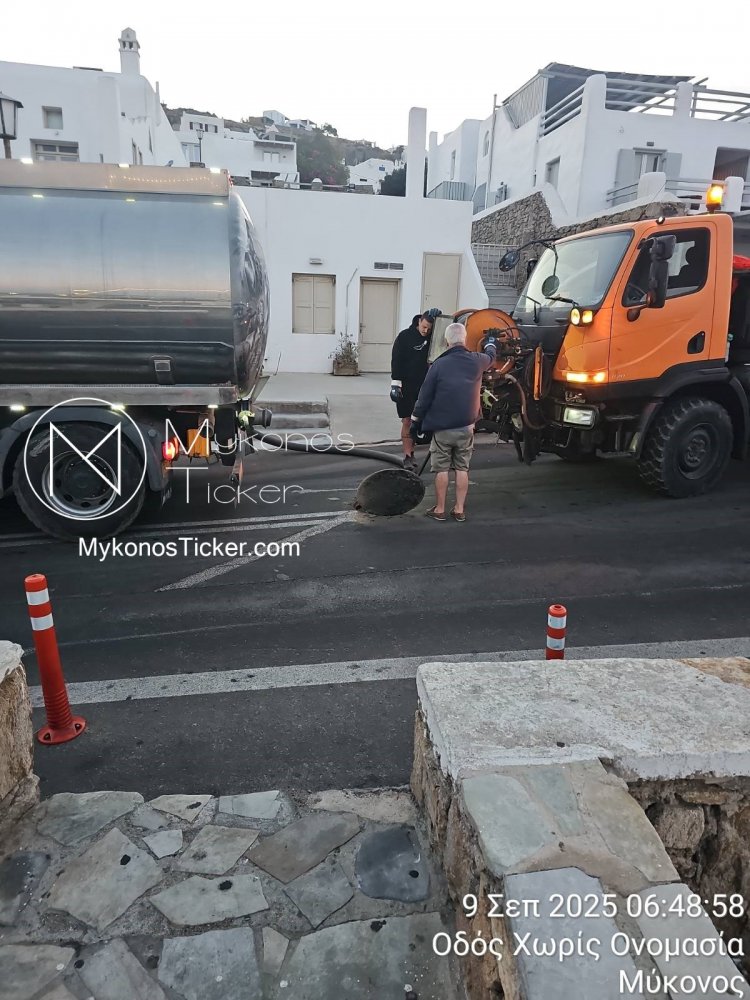 Πιο συγκεκριμένα, την Τρίτη 09 Σεπτεμβρίου 2025, εκτελέστηκαν προγραμματισμένες εργασίες καθαρισμού και προληπτικής συντήρησης των φρεατίων και των αγωγών,περιμετρικά του Αρχαιολογικού Μουσείου Μυκόνου έως την αφαλάτωση των παλαιών σφαγείων, πλήρους καθαρισμού και γενικής συντήρησης του αποχετευτικού δικτύου μεταξύ διαδοχικών φρεατίων και αγωγών, με την συνδρομή ειδικού οχήματος με αποφρακτικό μηχανισμό και δεξαμενή με πλήρες κύκλωμα υψηλής πίεσης νερού με δυνατότητα απόφραξης υψηλής πίεσης αλλά και δυνατότητα ρύθμισης και αυξομείωσης της πίεσης και παροχής, ώστε να απομακρυνθούν τα συσσωρευμένα λίπη και το πουρί που στέκονται στο αντλιοστάσιο και στα φρεάτια και να επιτευχθεί η ομαλή και απρόσκοπτη λειτουργία των διάφορων συστημάτων στο αποχετευτικό δίκτυο.