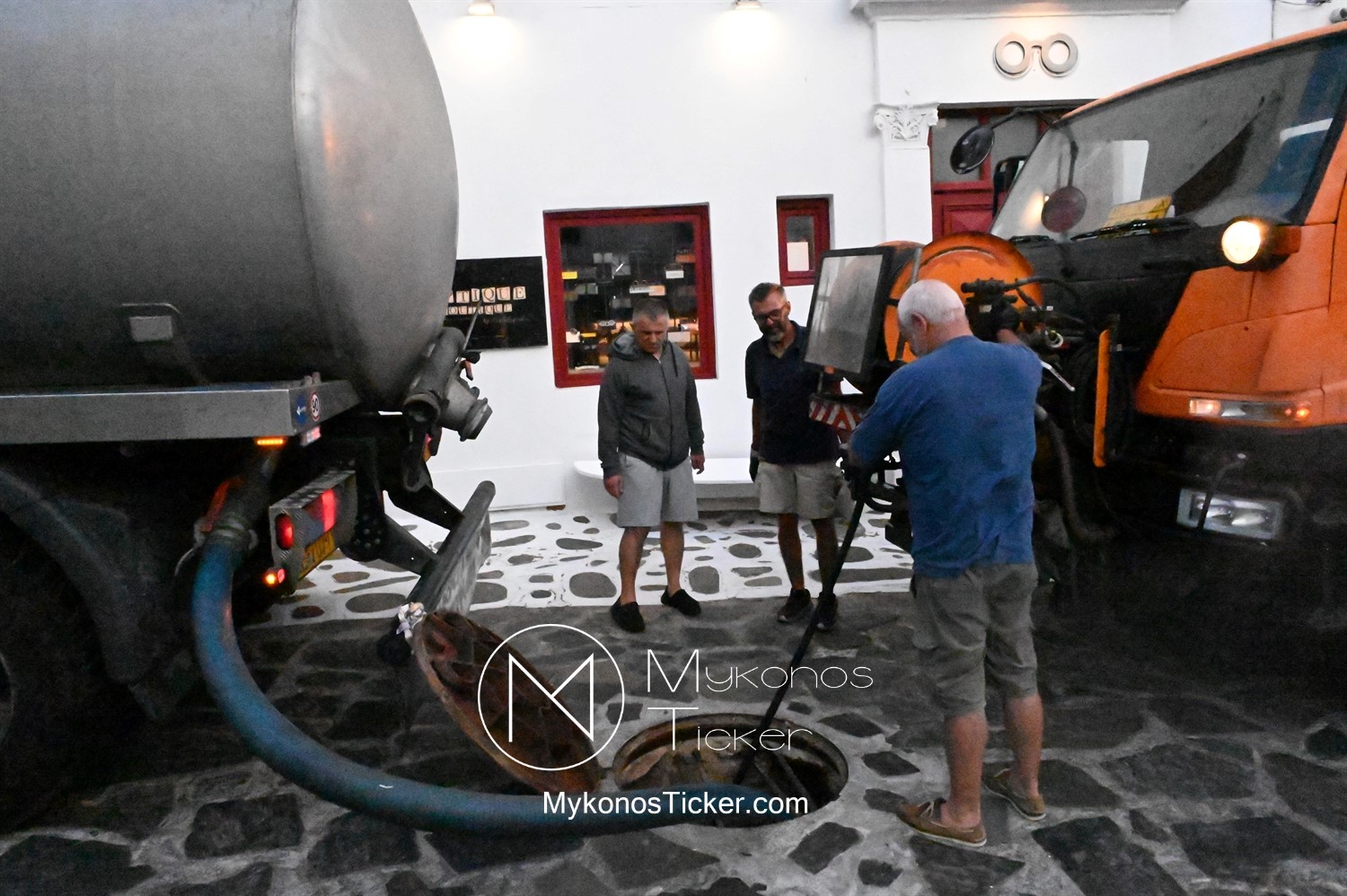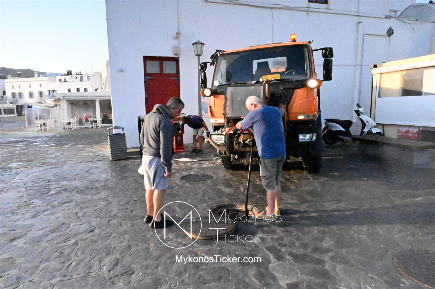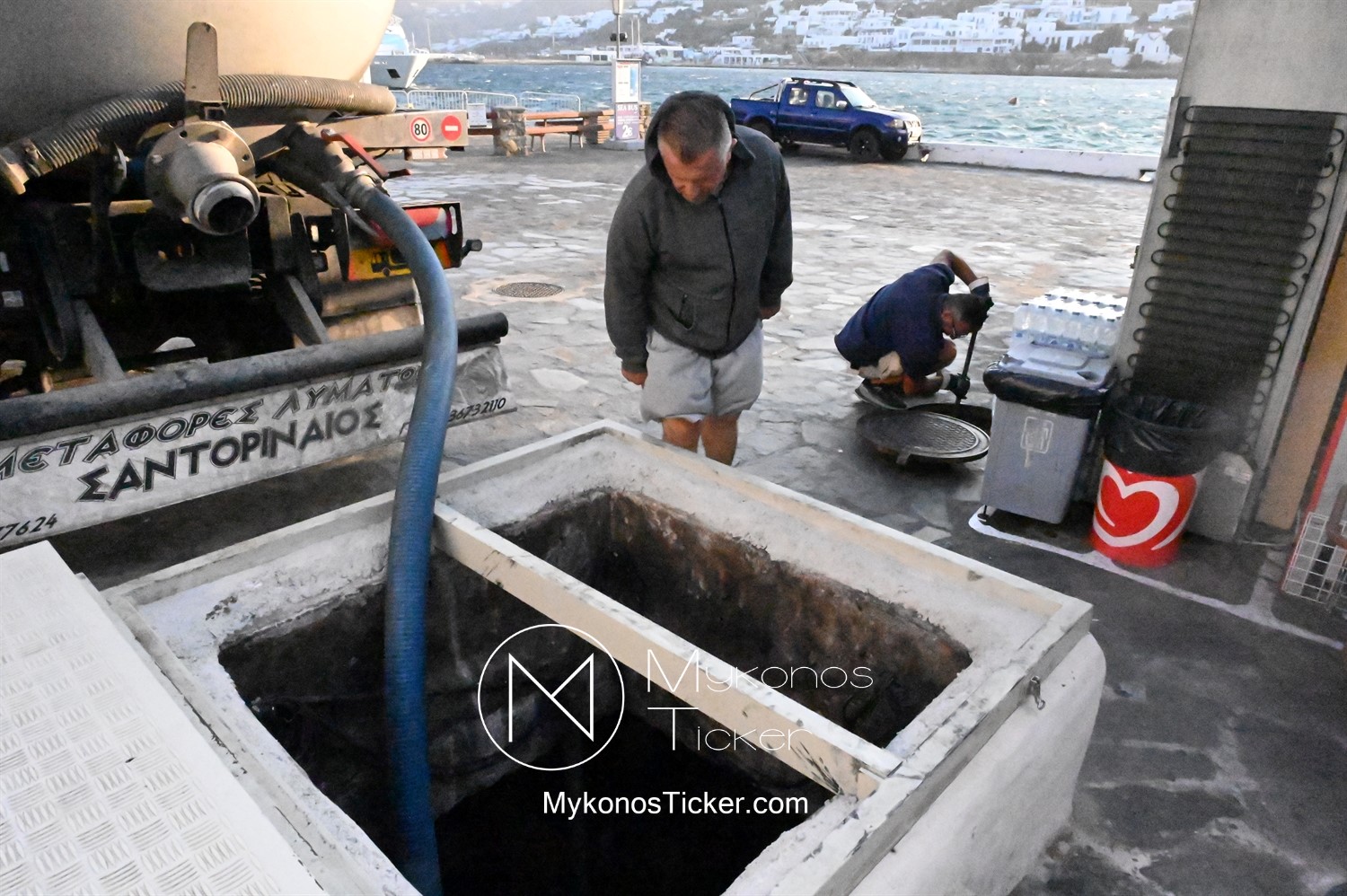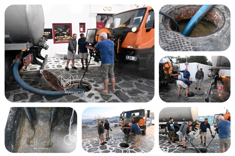 ΔΕΥΑ Μυκόνου: Προγραμματισμένες εργασίες καθαρισμού φρεατίων - αγωγών απoχέτευσηs με υδροβολή και αντλιοστασίου λυμάτων στην Παραλία, Xώpας Mυκόvoυ  [Εικόνες & Video]