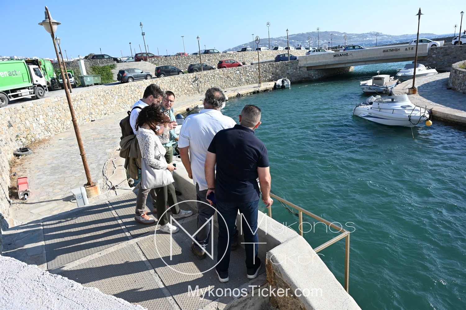 Επίσης, τα Μέλη της Επιτροπής ενημερώθηκαν από την Τεχνική Διευθύντρια της ΔΕΥΑΜ, Ευαγγελία Χατζηνάκη και είδαν αυτοπροσώπως τη διαδικασία της ανάκτησης πόσιμου νερού από θαλασσινό νερό, με χρήση της τεχνικής της αντίστροφης ώσμωσης, μια δόκιμη και αναγνωρισμένη τεχνολογία που με οικονομικό και αξιόπιστο τρόπο μπορεί να παρέχει υψηλής ποιότητας νερό ύδρευσης. Η τεχνική βασίζεται στην εισαγωγή, μέσω αγωγών σε απόσταση 25μ. από το αλιευτικό καταφύγιο, θαλασσινού νερού, υπό υψηλή πίεση μέσα από κυλίνδρους στους οποίους βρίσκονται διαδοχικά στρώματα μεμβρανών που διαχωρίζουν το νερό εισόδου σε δυο κλάσματα.