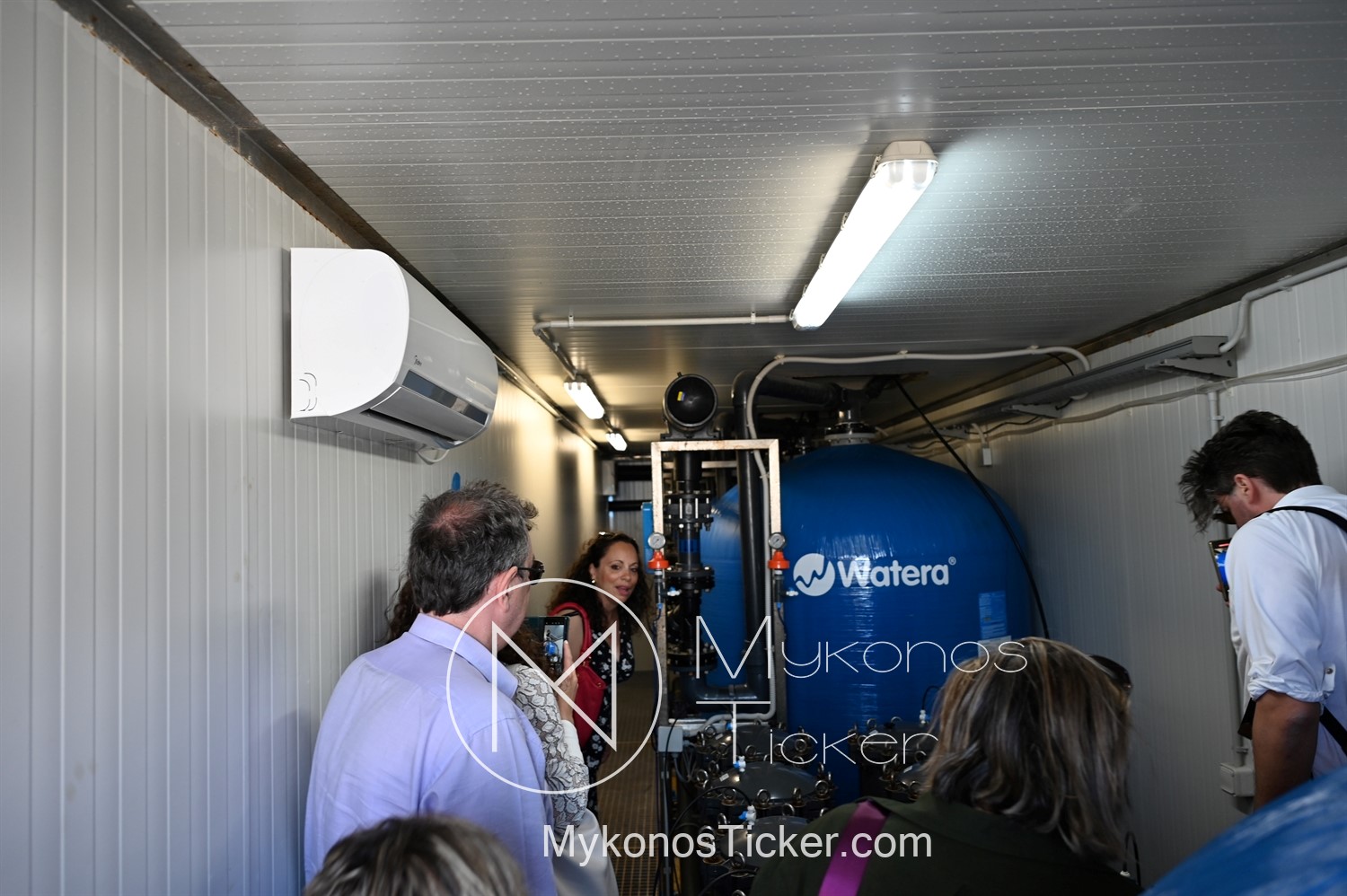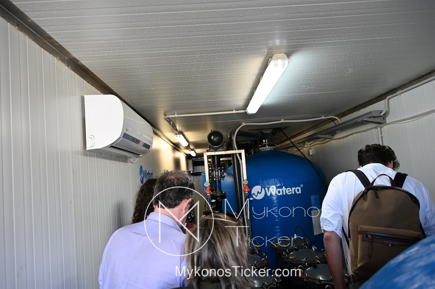 Στο πλαίσιο της ενημέρωσης των Μελών της Επιτροπής πραγματοποιήθηκε από την Τεχνική Διευθύντρια της ΔΕΥΑΜ Μυκόνου, μία ενδιαφέρουσα ξενάγηση στις μονάδες αφαλάτωσης και στο αντλιοστάσιο, καθώς και παρουσίαση σχετικά με την τεχνολογία και διαδικασία παραγωγής αφαλατωμένου νερού, πού αποτελούν την πλέον δόκιμη λύση για την αντιμετώπιση του προβλήματος της ποιότητας αλλά και της επάρκειας νερού.
