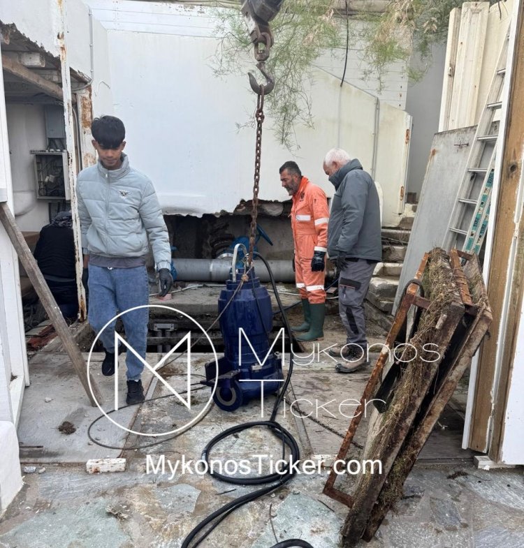 Πιο συγκεκριμένα, σήμερα, Πέμπτη 03 Απριλίου 2025, στο κεντρικό αντλιοστάσιο λυμάτων της Αλευκάνδρας, που διαδραματίζει σημαντικό ρόλο στη λειτουργία του αποχετευτικού δικτύου λυμάτων στον παραδοσιακό οικισμό Μυκόνου, συνεργείο της ΔΕΥΑ Μυκόνου, με την συνδρομή βυτιοφόρου οχήματος, προέβη στην άντληση των λυμάτων και την απομάκρυση φερτών υλικών, άμμου  ξύλων, πετρών και διάφορων υλικών, πού προήλθαν από την μεγάλη στερεοπαροχή που δημιούργησαν τα ορμητικά όμβρια νερά στην Χώρα Μυκόνου, και στην συνέχεια προχώρησε στο σχολαστικό πλύσιμο του αντλιοστασίου με τη χρήση αντλίας υψηλής πίεσης νερού.