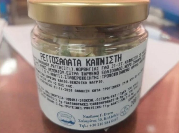 Συγκεκριμένα, πρόκειται για ρεγγοσαλάτα καπνιστή με την επωνυμία «GOURMET FOOD BOSRHOROUS», η οποία διακινείται στην Ελλάδα σε συσκευασίες των 200 γρ. από την επιχείρηση «Νικόλαος Γ. Evren» (Σαλαμίνος 50, Καλλιθέα Αττικής).