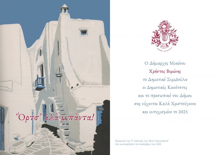 Ο Δήμαρχος  Μυκόνου, Χρήστος Βερώνης, προσκαλεί τους εκπροσώπους των τοπικών Αρχών και Φορέων, καθώς και τους δημότες σε μια εορταστική εκδήλωση για την υποδοχή του νέου έτους. Η εκδήλωση θα πραγματοποιηθεί την Τετάρτη 1 Ιανουαρίου 2025, στις 11:00 το πρωί, στην Κοινότητα της Άνω Μεράς ανήμερα και στο Δημαρχείο Μυκόνου στις 12.00μ.