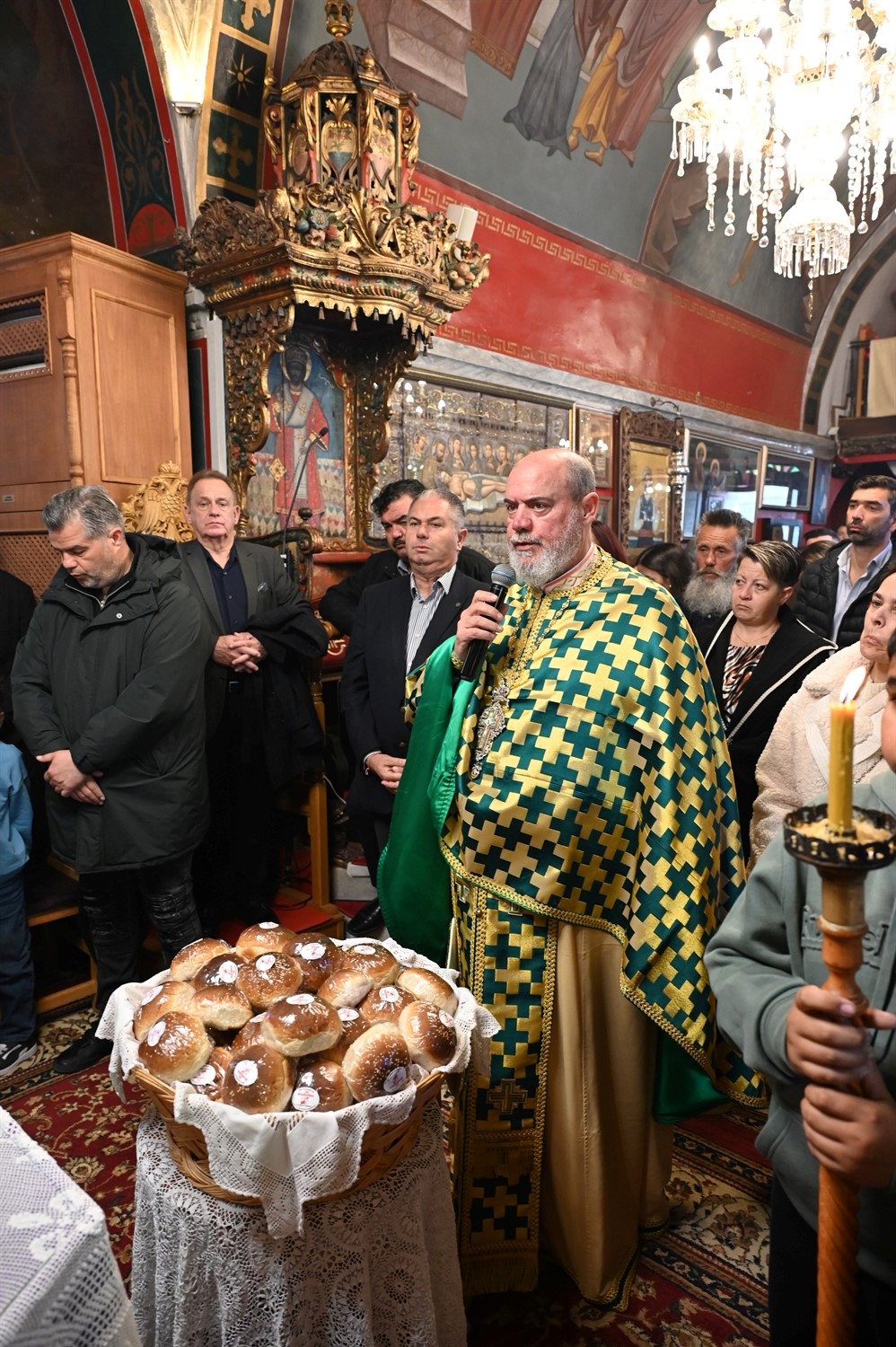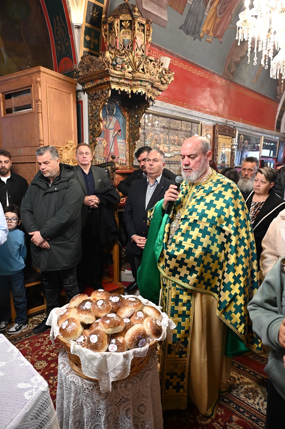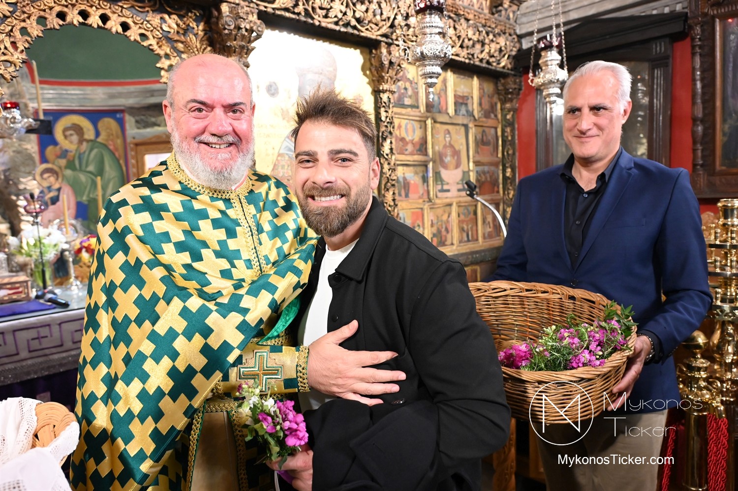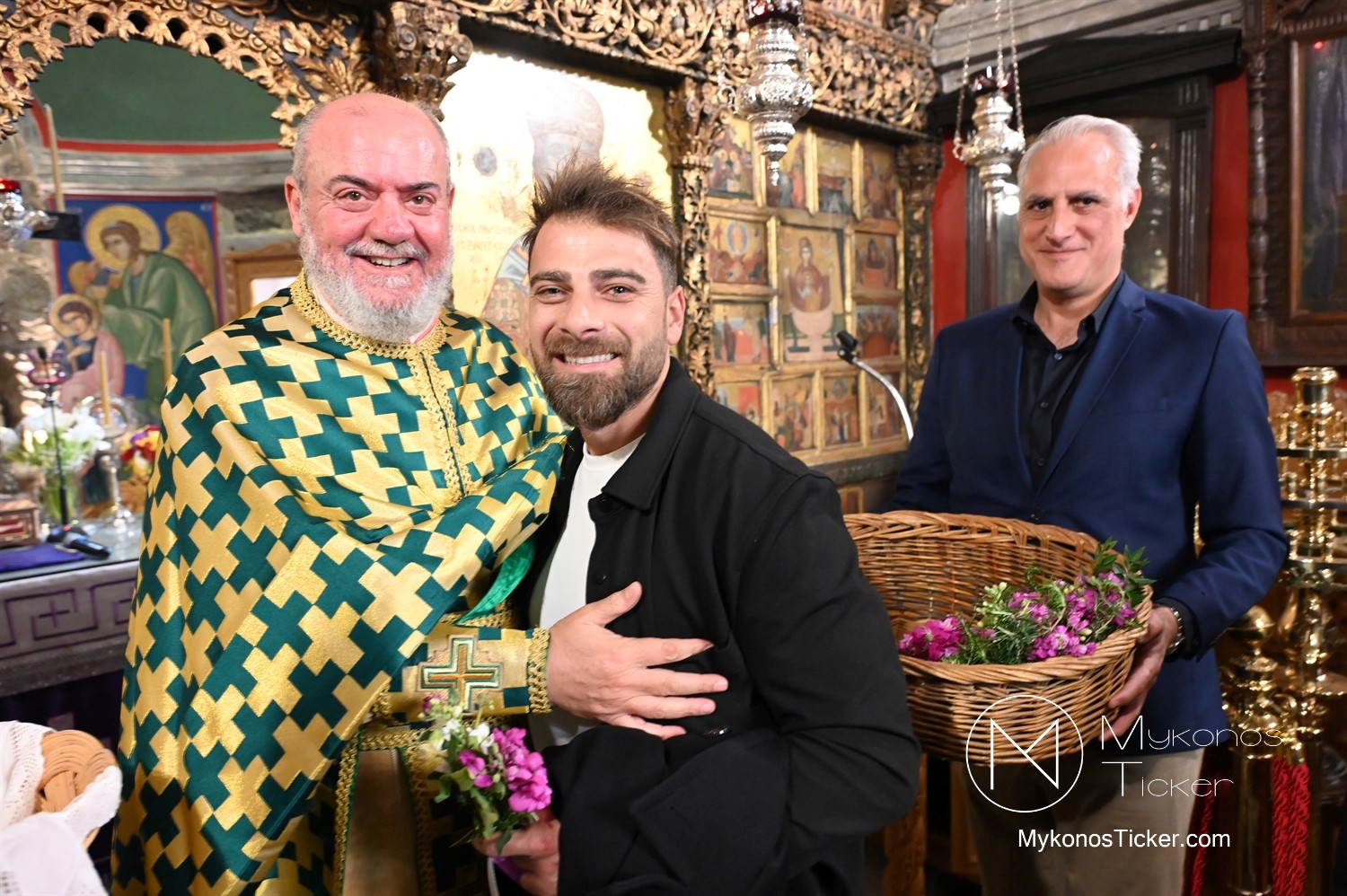 Η Θεία Λειτουργία κατεξοχήν σημαίνει «κοινό έργο» και πράξη κοινωνίας. Στο πλαίσιο αυτό, είναι ιδιαιτέρως βαρύνουσα και θεολογικά πλήρης η σύσσωμη παρουσία της τοπικής κοινότητας. Με αισθήματα βαθύτατης κατάνυξης και σεβασμού προς τα ιερά θέσμια, παρέστη συμπροσευχητικώς ο Δήμαρχος Μυκόνου Χρήστος Βερώνης. Η παρουσία του πρώτου πολίτη του νησιού, πλαισιωμένου από τον Περιφερειακό Σύμβουλο Στέλιο Μπρίγγο, καθώς και τους Δημοτικούς Συμβούλους . Βασίλη Θεοχάρη, Φραντζέσκο Βιγλιάρη, Νικόλαο Γκέλο και Αντώνη Κουσαθανά, αναδεικνύει την άρρηκτη ενότητα άρχουσας τάξης και λαού του Θεού. Όλοι ομού, συντεταγμένοι ως μία λειτουργική κοινότητα, έκλιναν τον αυχένα ενώπιον του κοινού Συμβόλου της Σωτηρίας.
