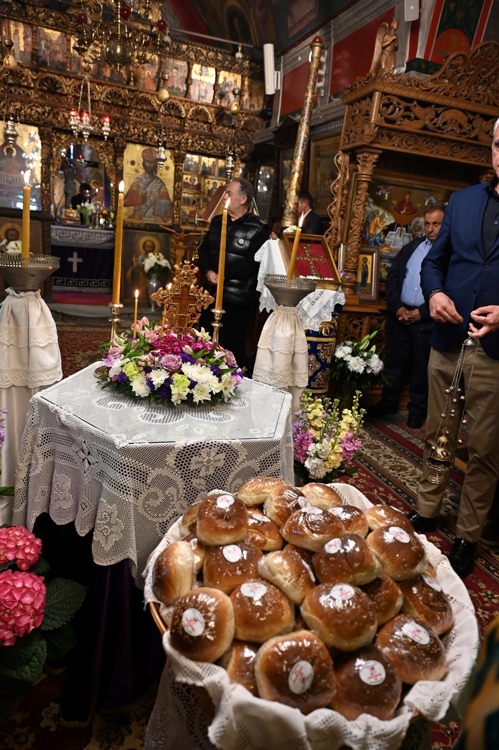 Ως επισφράγισμα της λειτουργικής αυτής συνάξεως, ο π. Πέτρος διένειμε στους πιστούς ως ευλογία τα «σταυρολούλουδα» με τον πλεκτό σταυρό. Αυτά τα αγιασμένα άνθη, μεταφέρονται πλέον ως φυλακτό στις οικίες των πιστών, λειτουργώντας ως συνεχής υπόμνηση της νίκης της Ζωής και ως πηγή αγιασμού, μέχρι να αξιωθούμε να προσκυνήσουμε τα Άγια Πάθη και την Λαμπροφόρο Ανάσταση του Κυρίου.