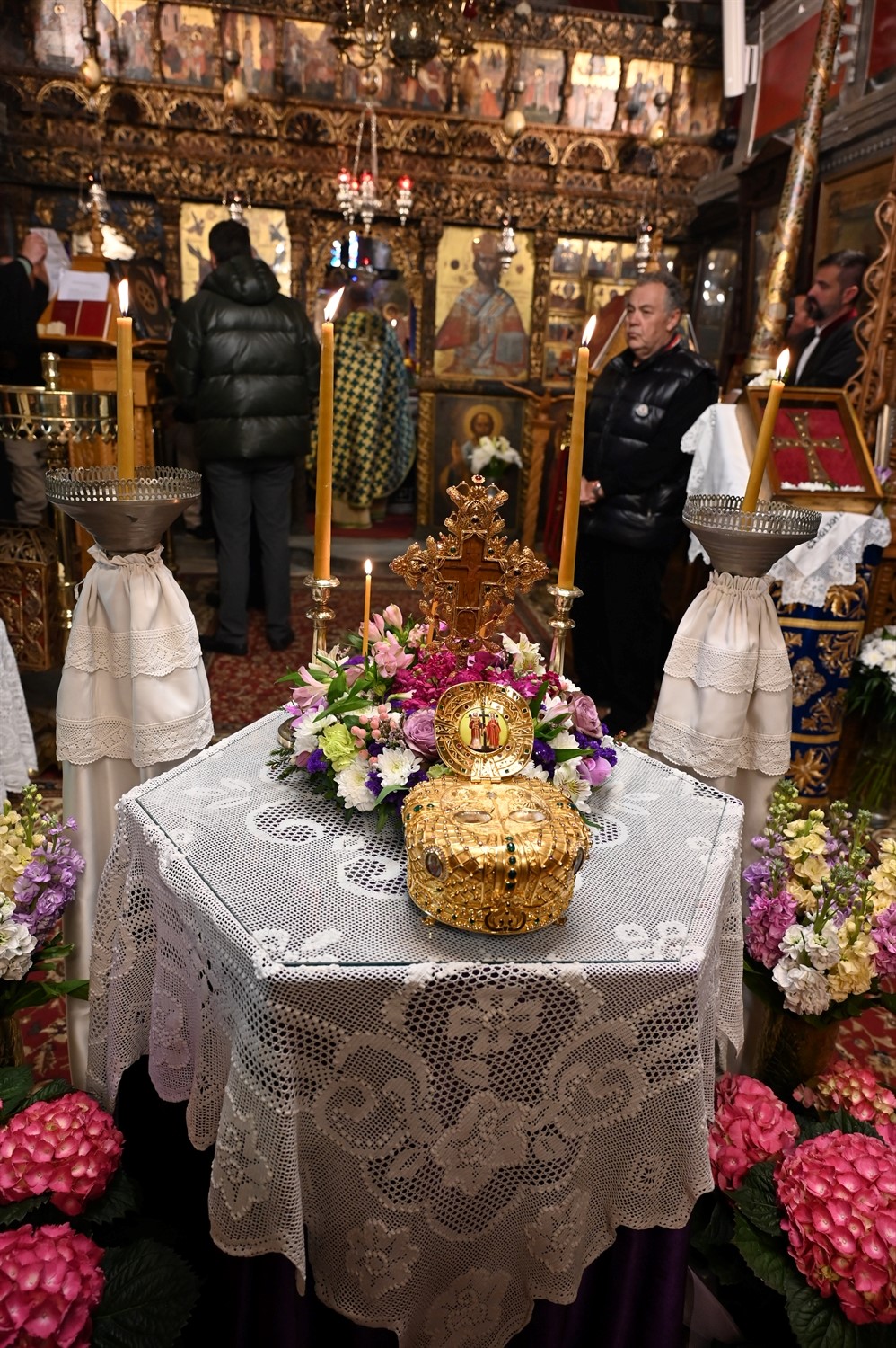 Προ της Απολύσεως της Θείας Λειτουργίας, η εκκλησιαστική κοινότητα βίωσε την κορύφωση της ημέρας. Κατά την απόλυτη τήρηση του παλαιφάτου λειτουργικού Τυπικού, πραγματοποιήθηκε η λιτάνευση του Τιμίου Σταυρού στο κέντρο του Ναού.