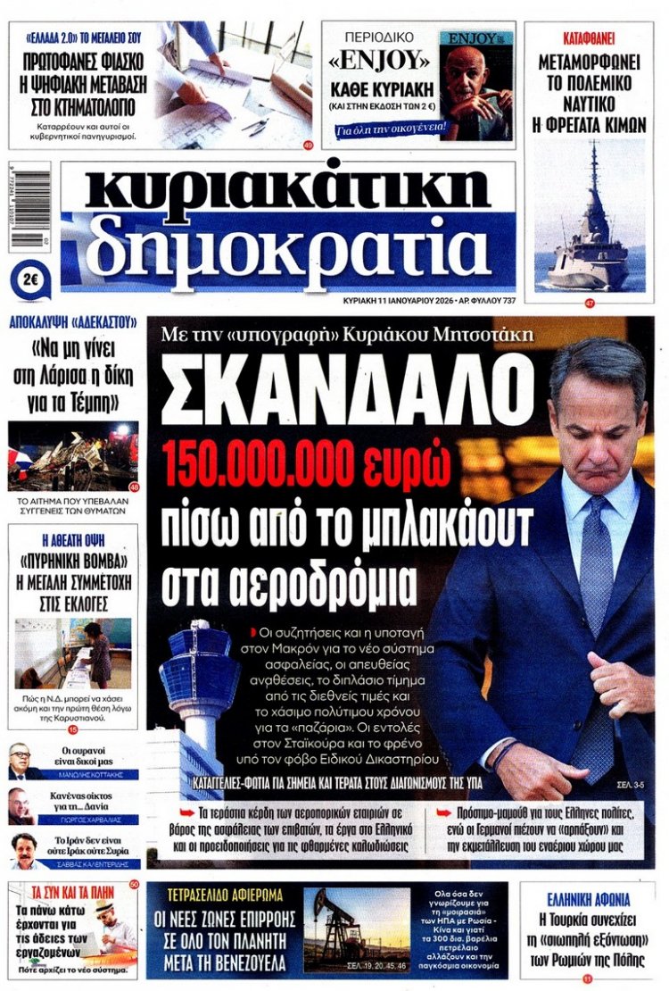 Βασικά Θέματα: Τα μέτωπα του «Δόγματος Donroe» (sic) σε Νότια Αμερική και Γροιλανδία • Η αλυσίδα των λαθών στην αγροτική πολιτική • Το μπλακάουτ στο FIR Αθηνών.