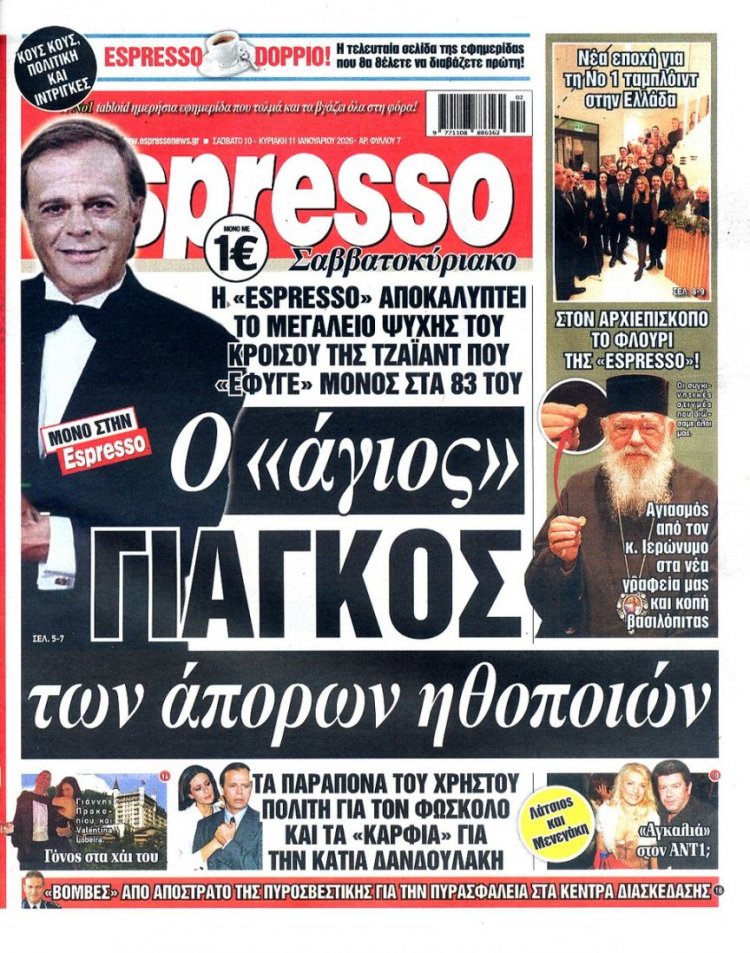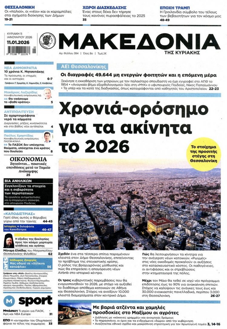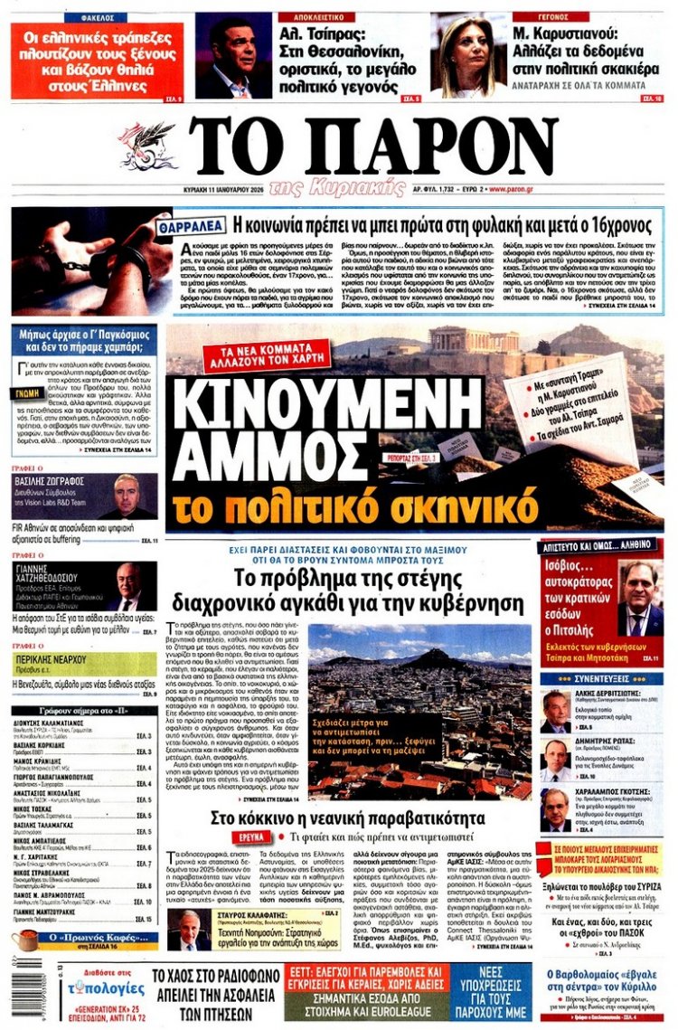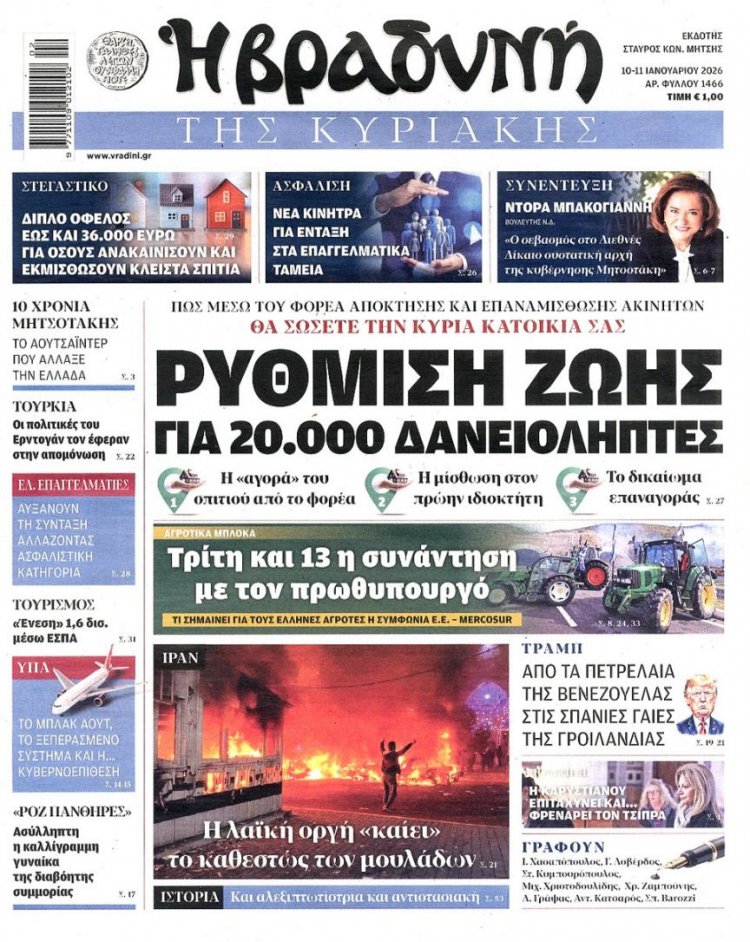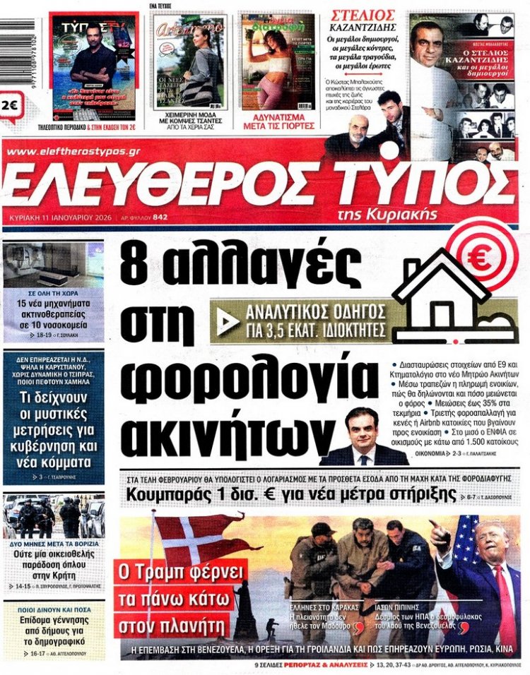 Βασικά Θέματα: Αναλυτικός οδηγός για 3,5 εκατ. ιδιοκτήτες • Ο Τραμπ φέρνει τα πάνω κάτω στον πλανήτη με επεμβάσεις σε Βενεζουέλα και Γροιλανδία • Μυστικές μετρήσεις για την κυβέρνηση και τα νέα κόμματα.