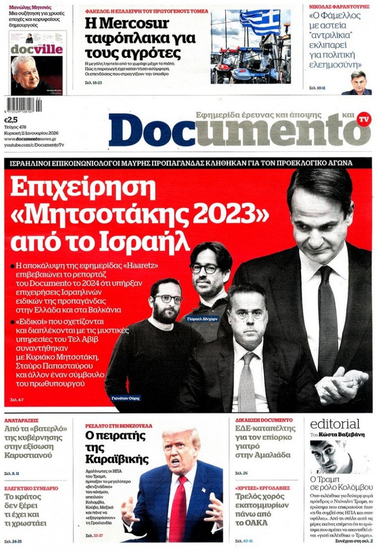 Βασικά Θέματα: Αποκαλύψεις για μαύρη προπαγάνδα και εμπλοκή Ισραηλινών ειδικών στην Ελλάδα • Η συμφωνία Mercosur ως ταφόπλακα για τους αγρότες • Ο «Πειρατής της Καραϊβικής» Τραμπ στη Βενεζουέλα.
