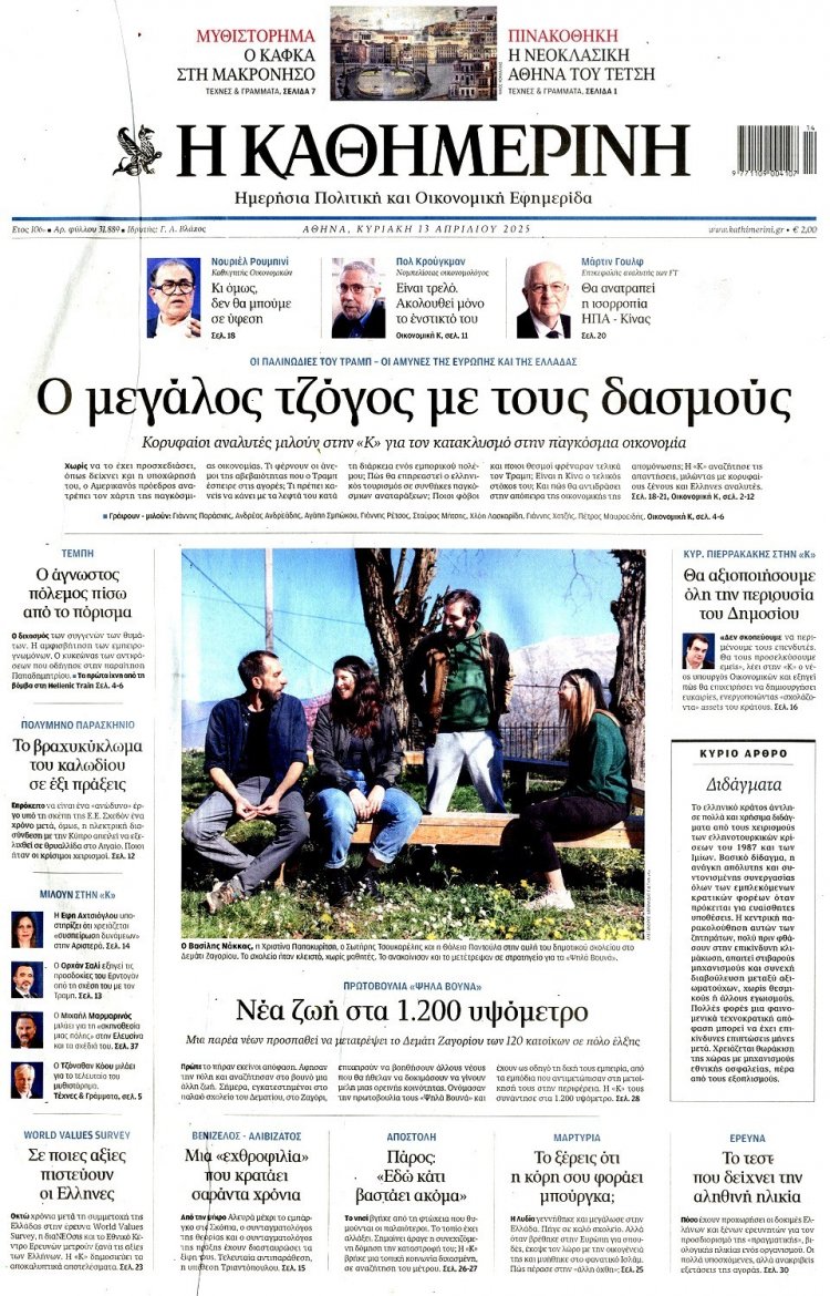 Διαβάστε τα 15 πρώτα Πρωτοσέλιδα και τα Οπισθόφυλλα των Κυριακάτικων Εφημερίδων της Κυριακής 13 Απριλίου 2025 - Η ανάρτηση ανανεώνεται συνεχώς!!