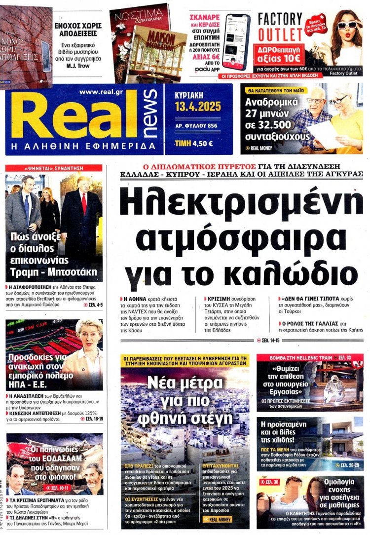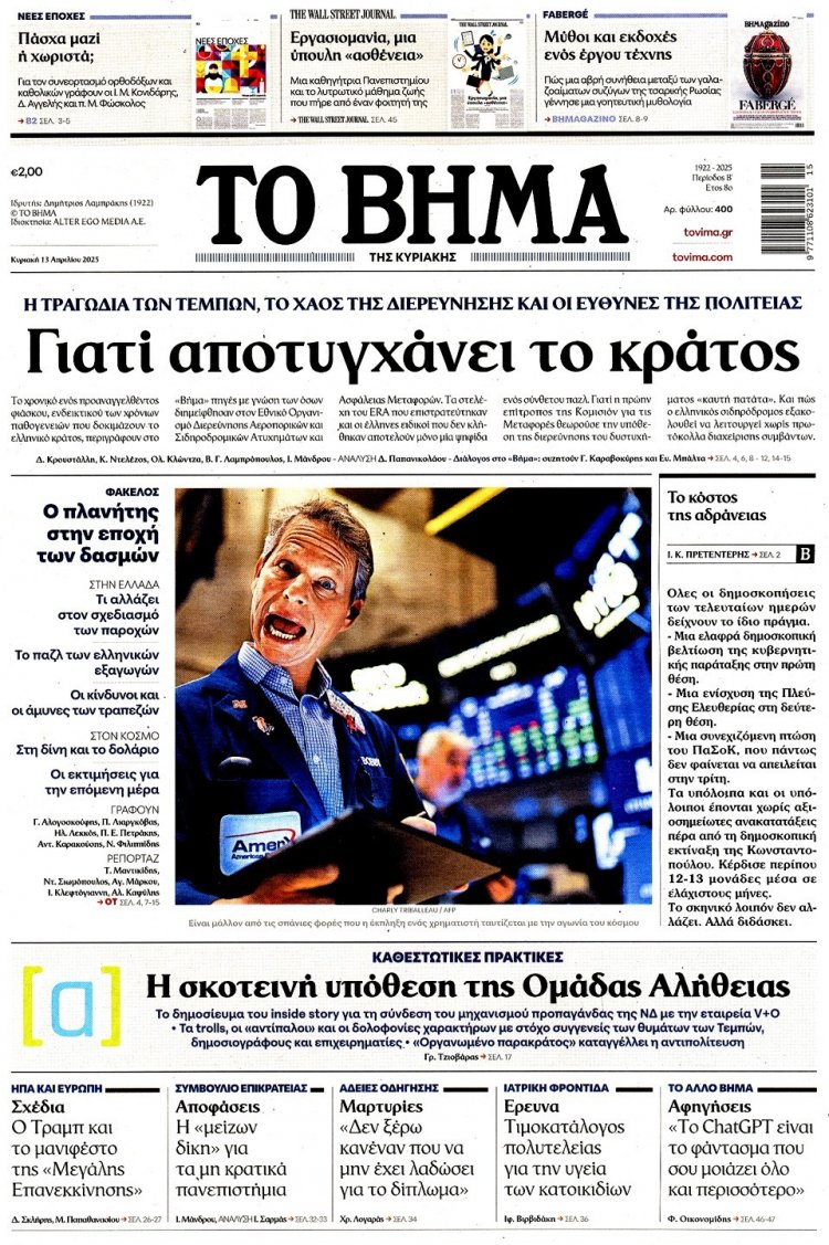 Τι γράφει ο Κυριακάτικος Τύπος - Διαβάστε τα 15 πρώτα Πρωτοσέλιδα και τα Οπισθόφυλλα των Κυριακάτικων Εφημερίδων της Κυριακής 13 Απριλίου 2025 - Η ανάρτηση ανανεώνεται συνεχώς!!
