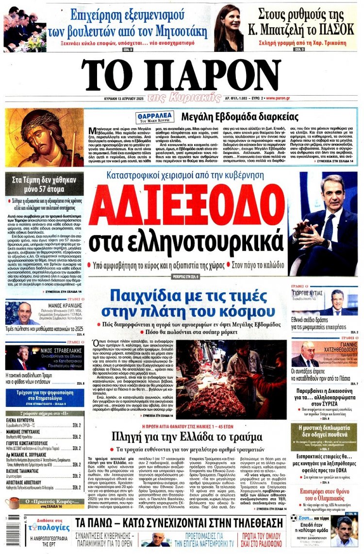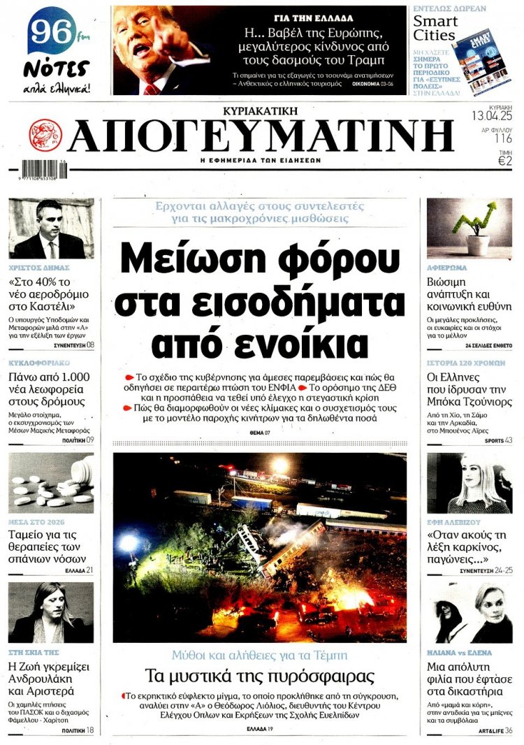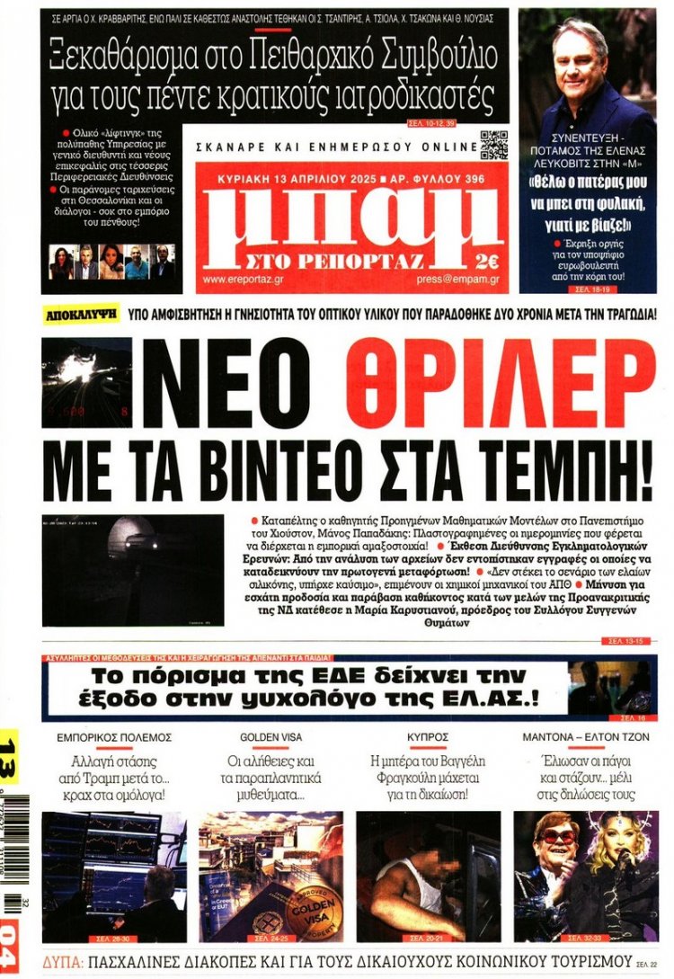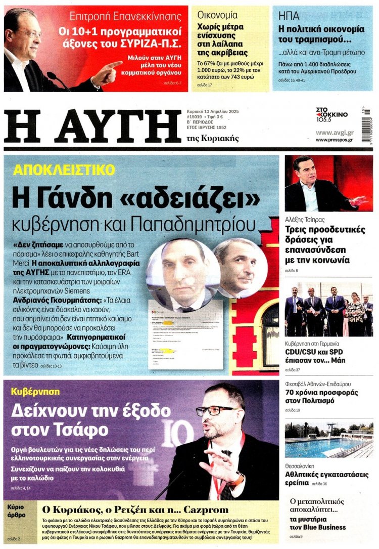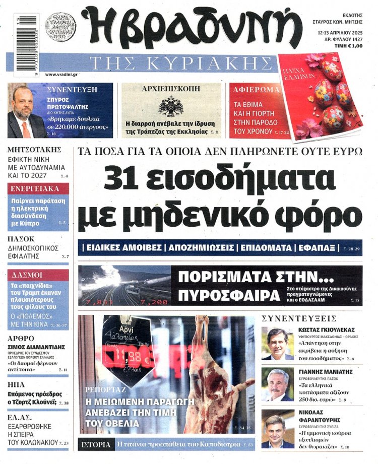 Sunday's front pages: Τα Πρωτοσέλιδα και τα Οπισθόφυλλα των εφημερίδων της Κυριακής 13 Απριλίου 2025