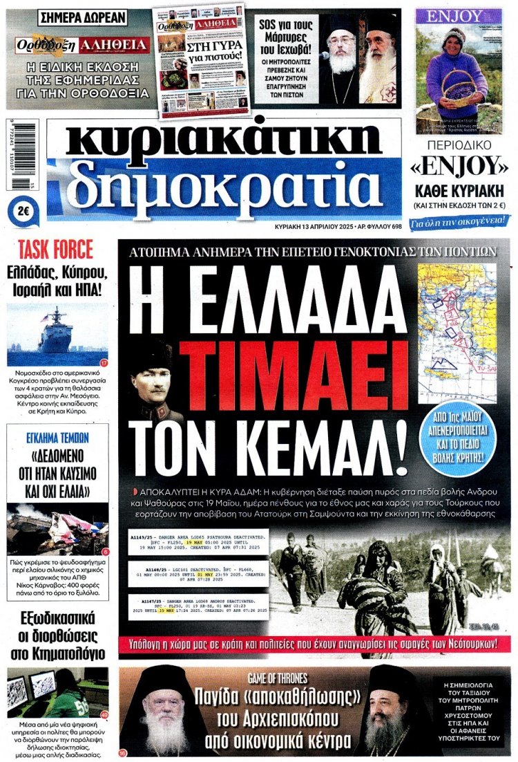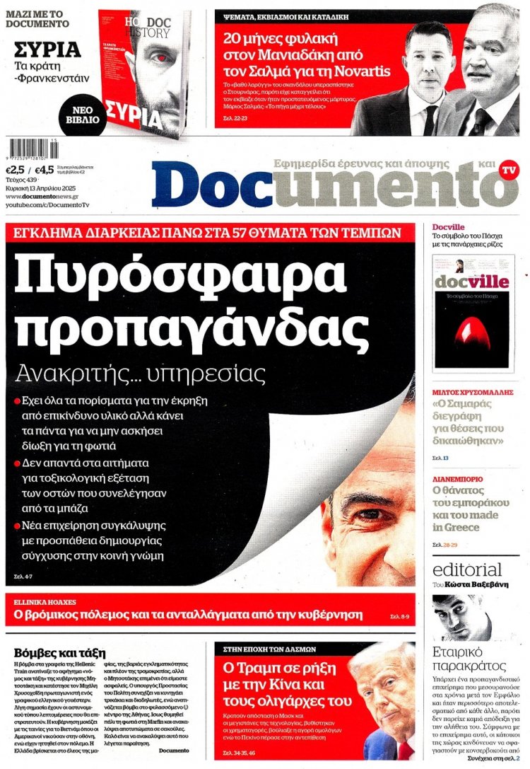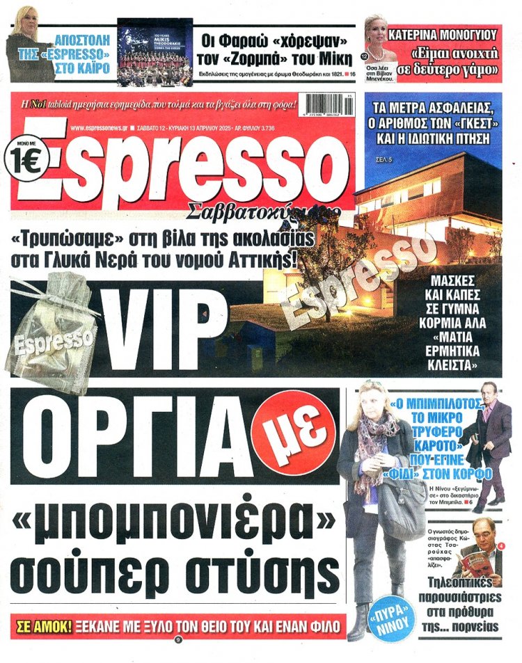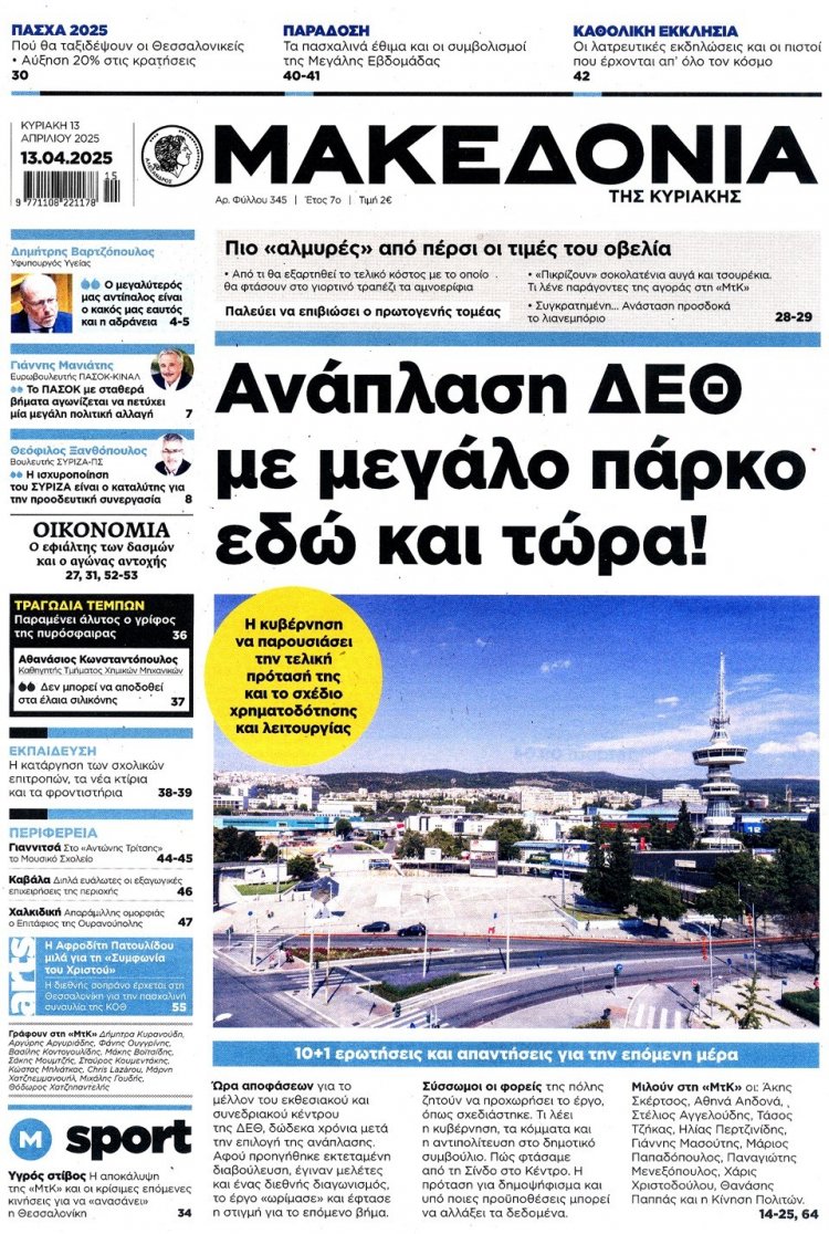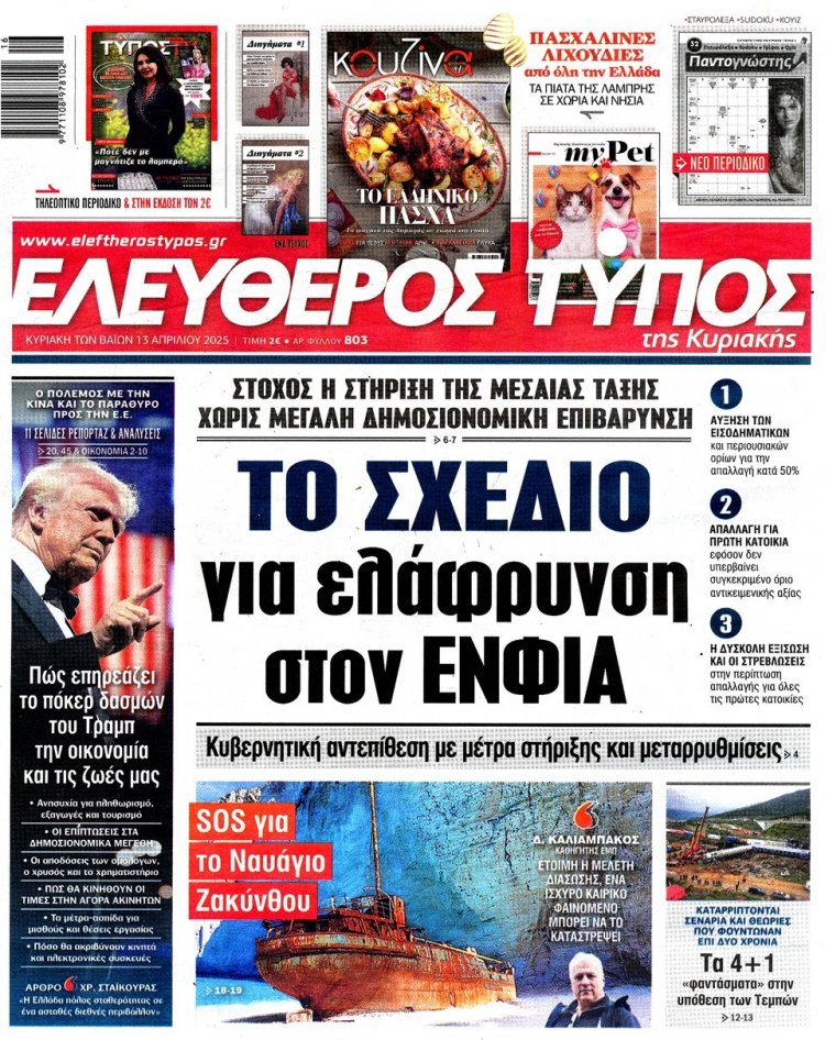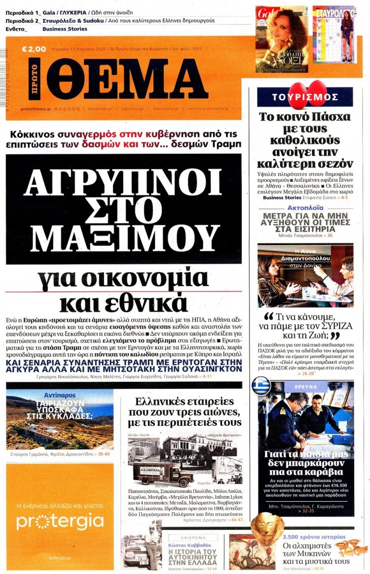 Sunday's front pages: Τα Πρωτοσέλιδα και τα Οπισθόφυλλα των εφημερίδων της Κυριακής 13 Απριλίου 2025