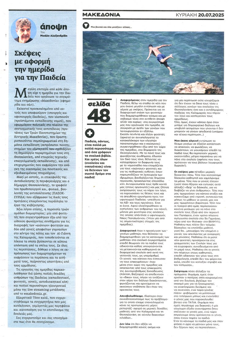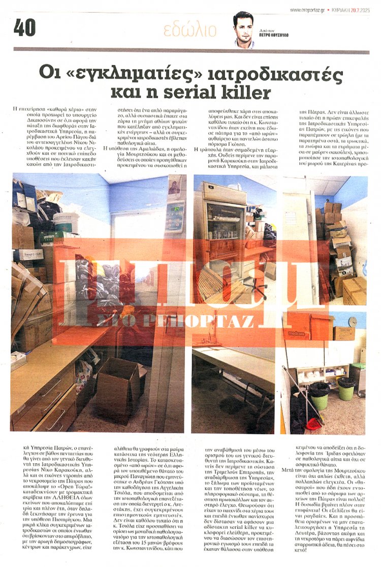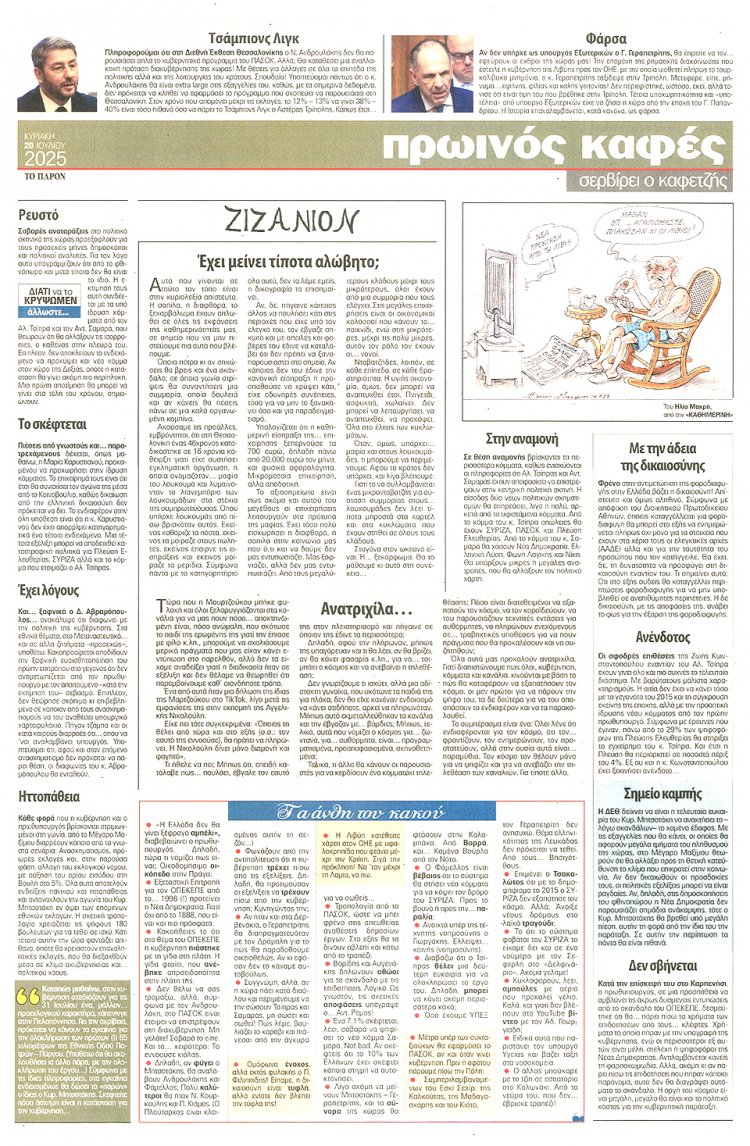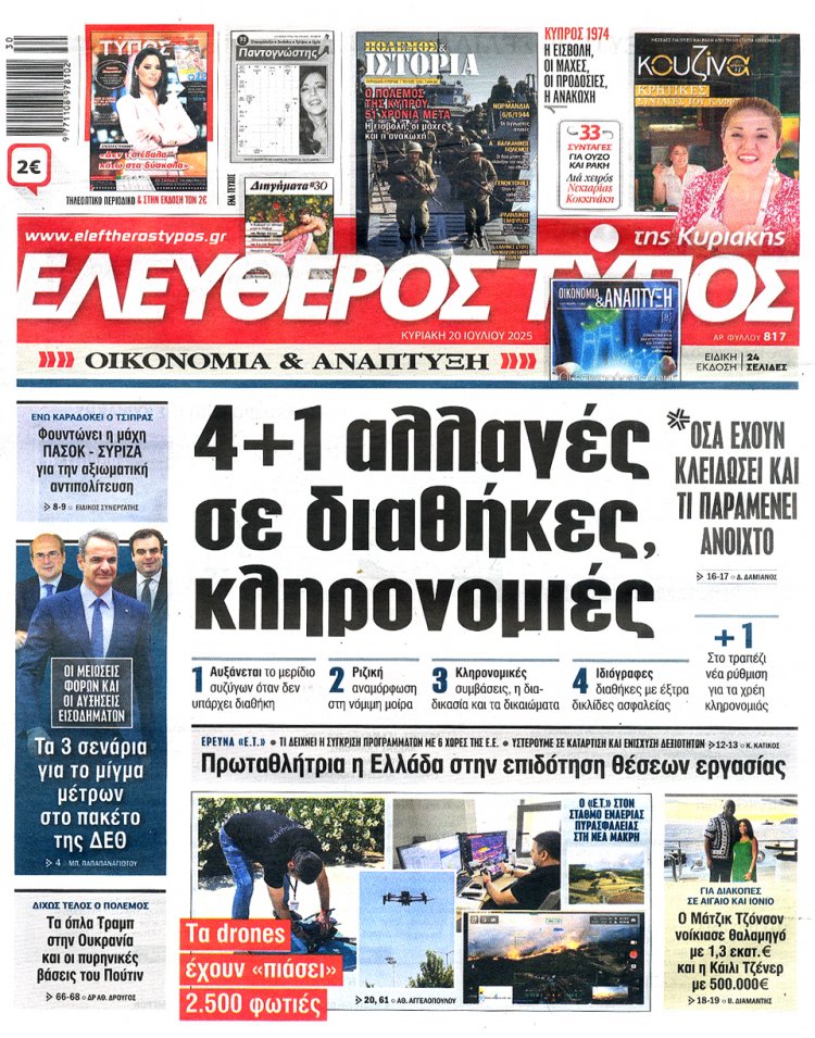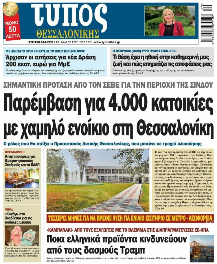 Sunday's front pages: Τα Πρωτοσέλιδα και τα Οπισθόφυλλα των εφημερίδων της Κυριακής 20 Ιουλίου 2025