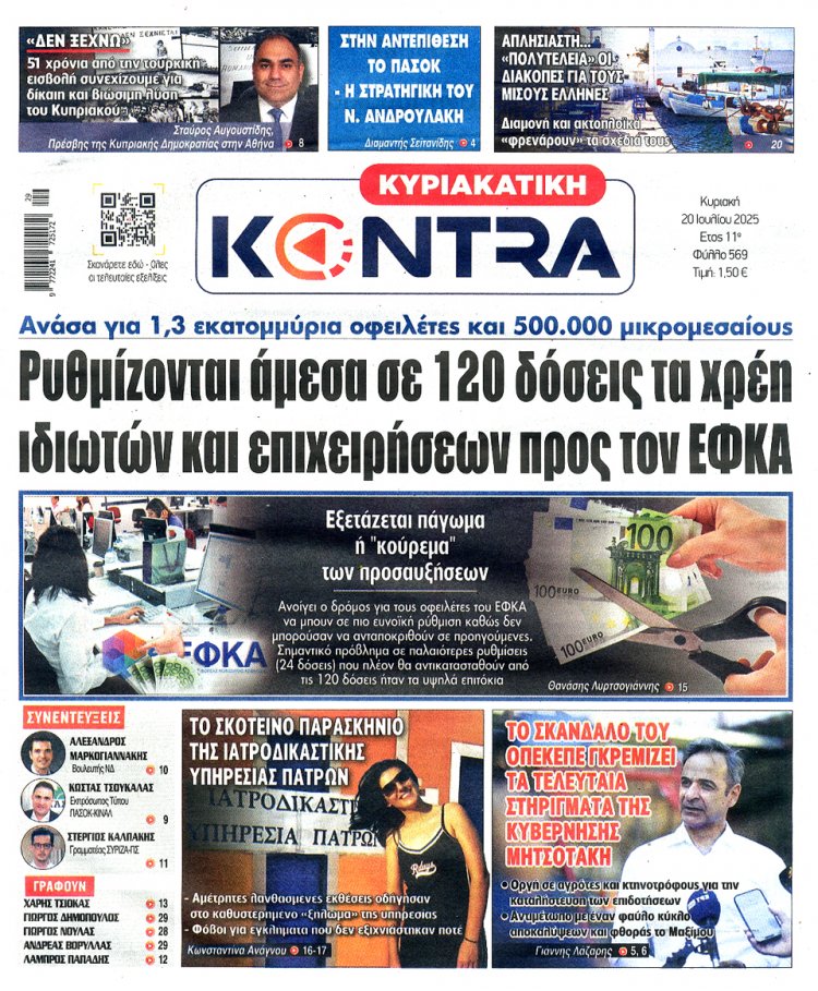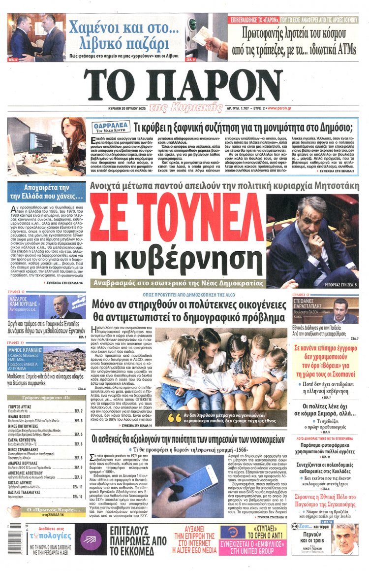 Τι γράφει ο Κυριακάτικος Τύπος - Διαβάστε τα 15 πρώτα Πρωτοσέλιδα και τα Οπισθόφυλλα των Κυριακάτικων Εφημερίδων της Κυριακής 20 Ιουλίου 2025 - Η ανάρτηση ανανεώνεται συνεχώς!!
