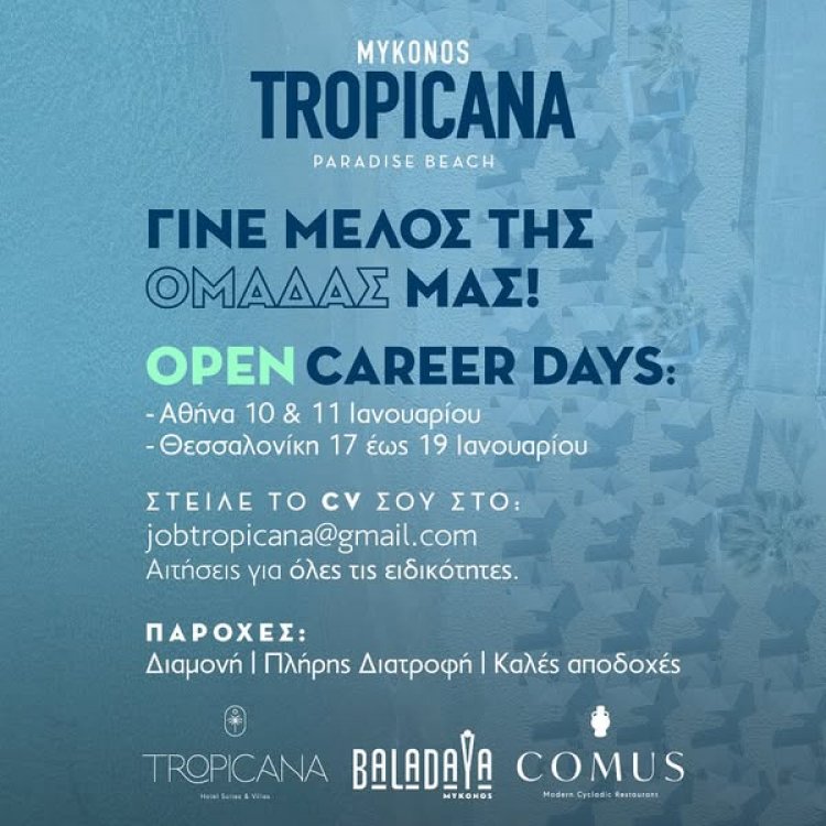Tropicana Mykonos / Ο όμιλος Tropicana ξεκινά την αναζήτηση προσωπικού για την σεζόν 2025!!