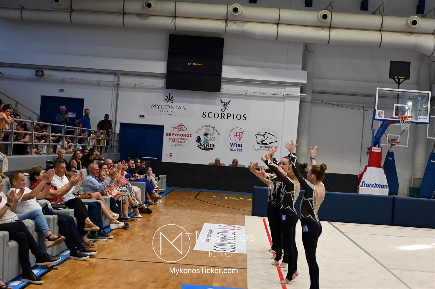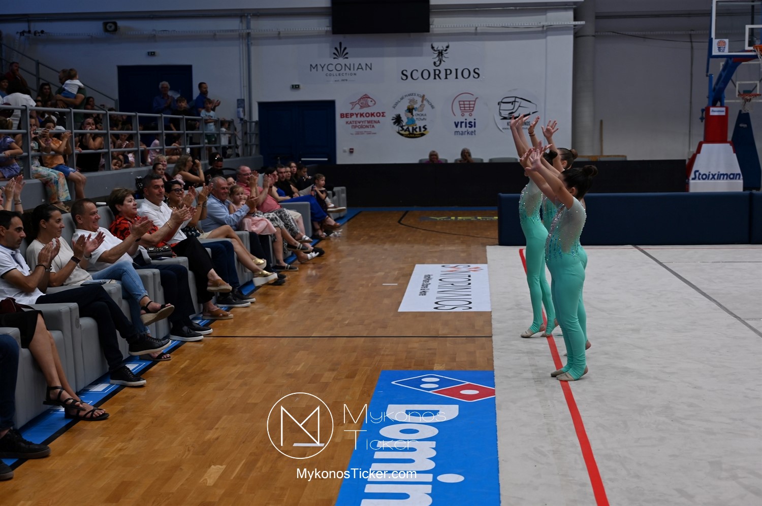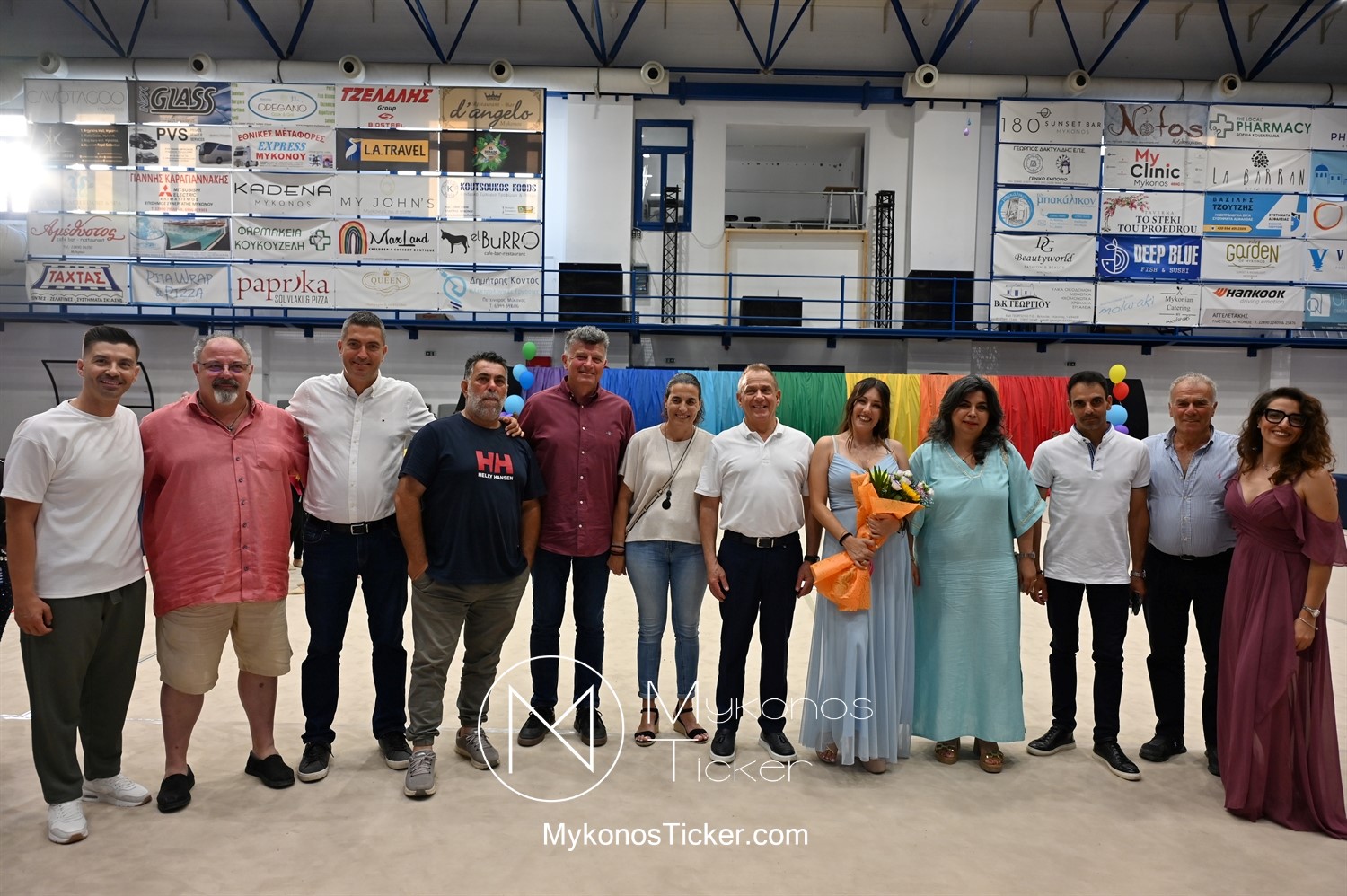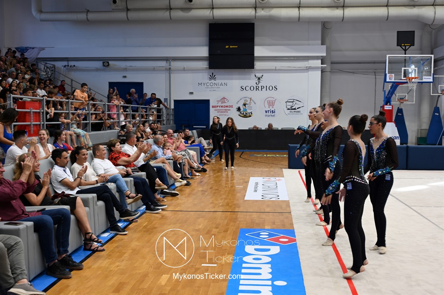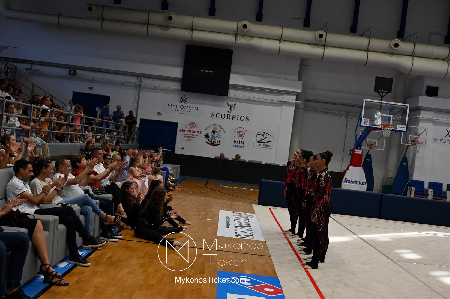 Ο Δήμος Μυκόνου τίμησε τις αθλήτριες και τους προπονητές της Αισθητικής Ομαδικής Γυμναστικής της Α.Ε. Μυκόνου, με παγκόσμιες, διεθνείς και πανελλήνιες διακρίσεις, απονέμοντάς τους συμβολικά τιμητική πλακέτα, σε μία ειδική τελετή στο πλαίσιο της εντυπωσιακής, ετήσιας επίδειξης ρυθμικής γυμναστικής με θέμα «Ταξίδι στον κόσμο των παραμυθιών», στο κλειστό Γήπεδο Μπάσκετ «Π. Χανιώτης» που κατακλύσθηκε με ρυθμό, μουσική, χρώματα και μια σειρά από υπέροχες και πρωτότυπες χορογραφίες ρυθμικής γυμναστικής με μπάλες, στεφάνια, σχοινάκια και κορδέλες, αναδεικνύοντας τη σημασία της χορευτικής παιδείας και της καλλιτεχνικής έκφρασης.