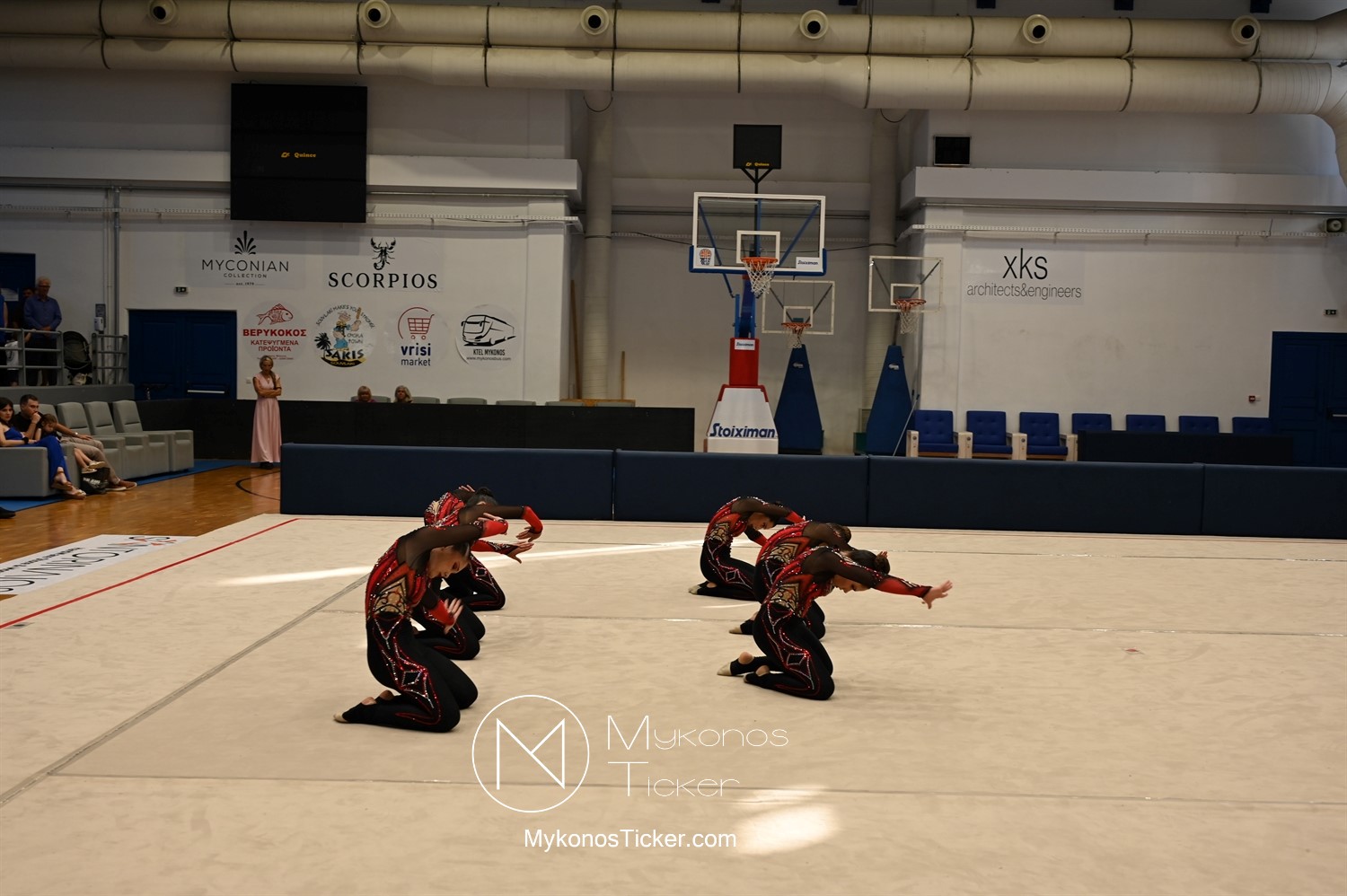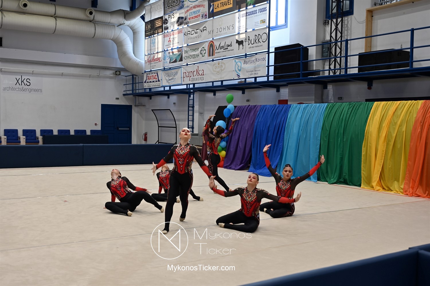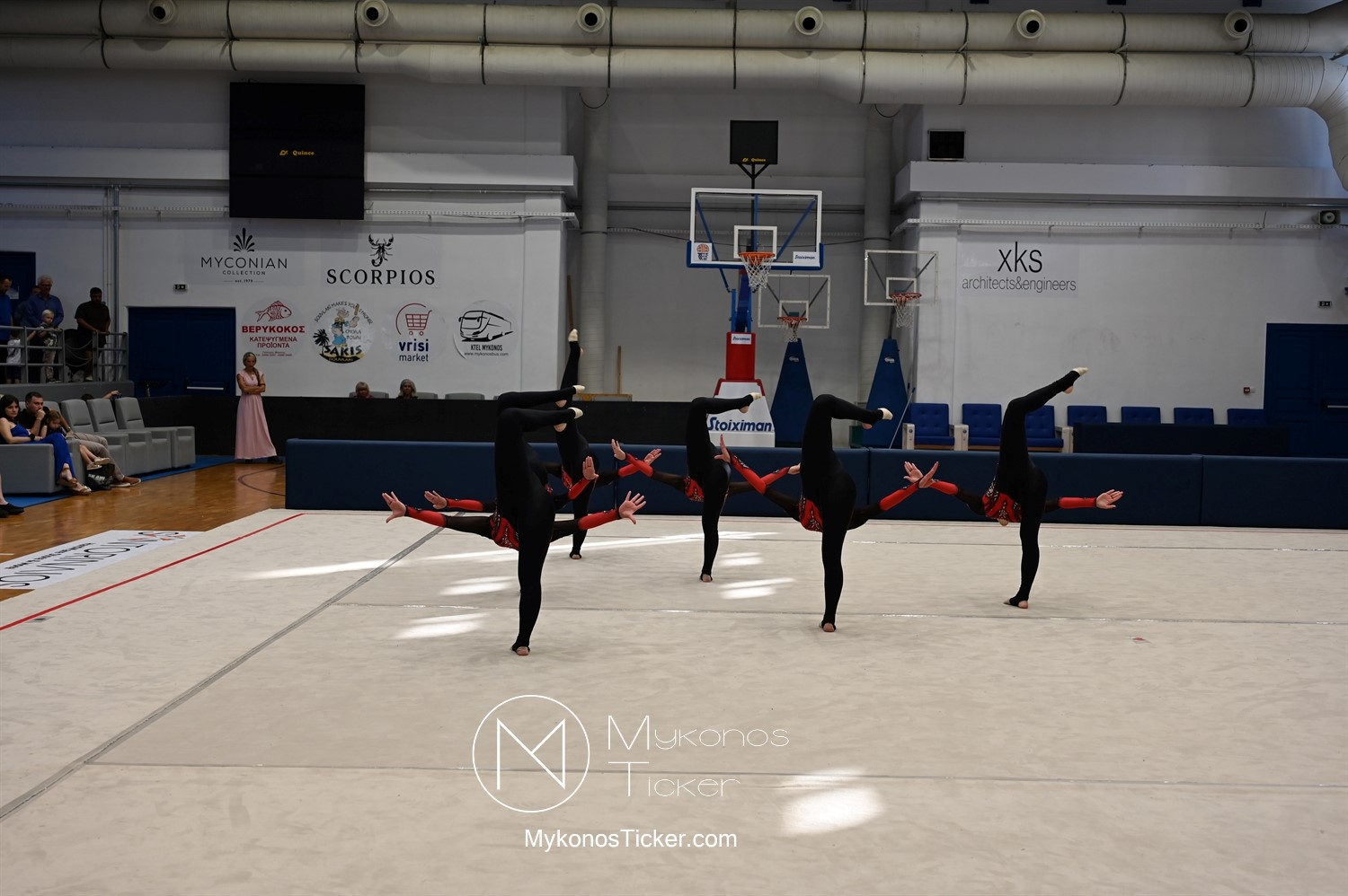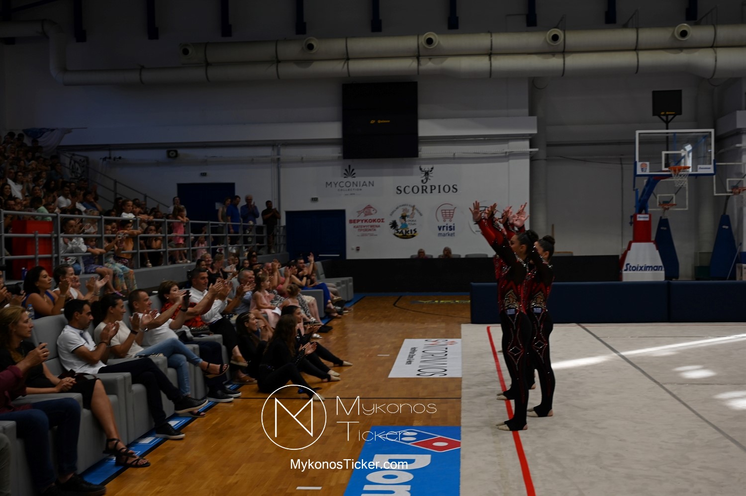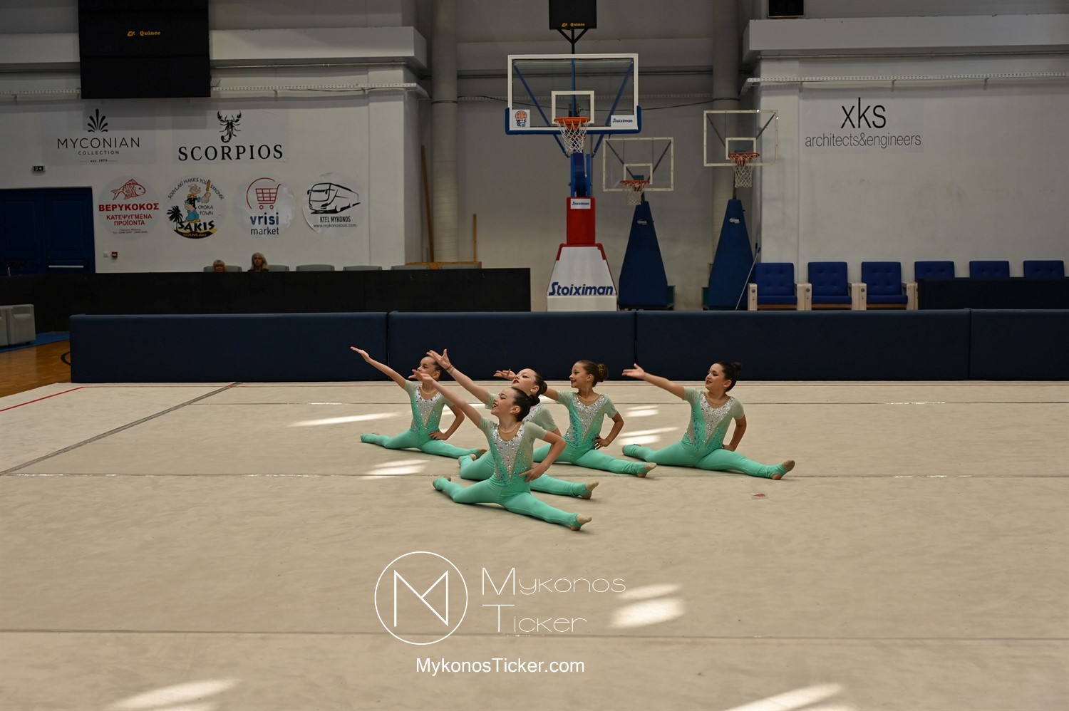 Ο Δήμος Μυκόνου τίμησε τις αθλήτριες και τους προπονητές της Αισθητικής Ομαδικής Γυμναστικής της Α.Ε. Μυκόνου, με παγκόσμιες, διεθνείς και πανελλήνιες διακρίσεις, απονέμοντάς τους συμβολικά τιμητική πλακέτα, σε μία ειδική τελετή στο πλαίσιο της εντυπωσιακής, ετήσιας επίδειξης ρυθμικής γυμναστικής με θέμα «Ταξίδι στον κόσμο των παραμυθιών», στο κλειστό Γήπεδο Μπάσκετ «Π. Χανιώτης» που κατακλύσθηκε με ρυθμό, μουσική, χρώματα και μια σειρά από υπέροχες και πρωτότυπες χορογραφίες ρυθμικής γυμναστικής με μπάλες, στεφάνια, σχοινάκια και κορδέλες, αναδεικνύοντας τη σημασία της χορευτικής παιδείας και της καλλιτεχνικής έκφρασης.