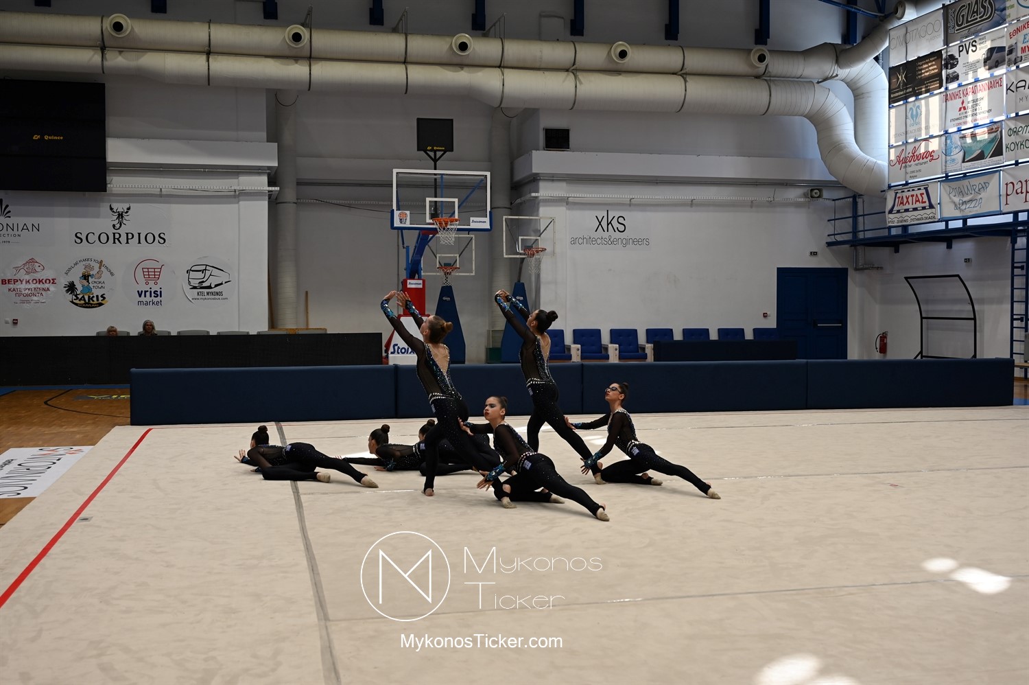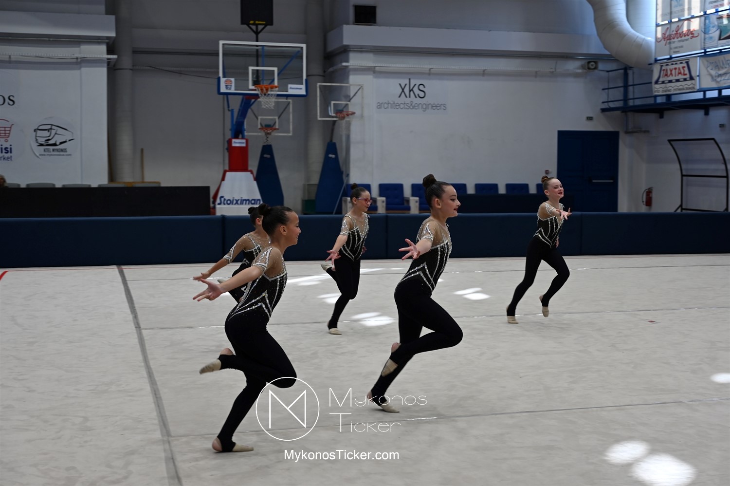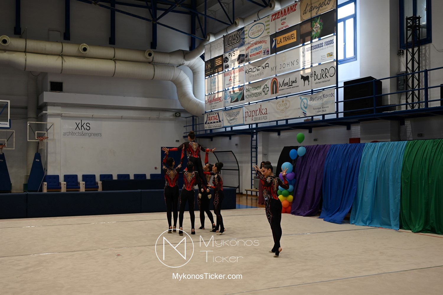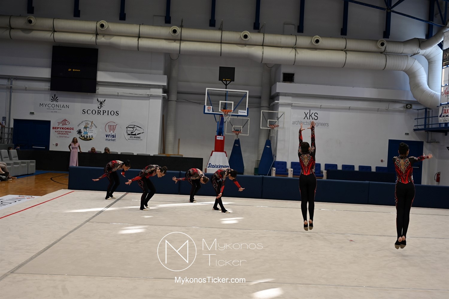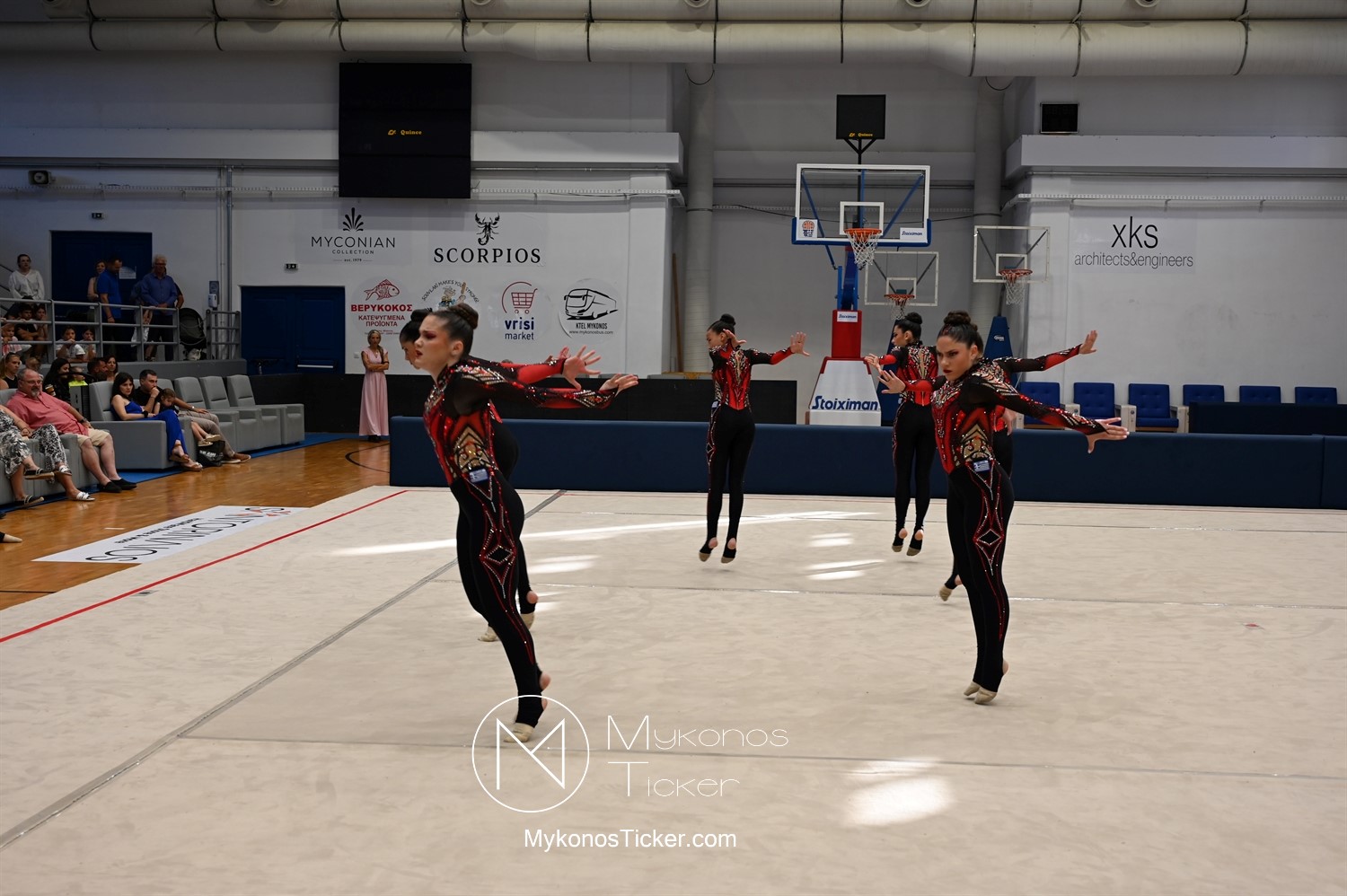 Ο Δήμος Μυκόνου τίμησε τις αθλήτριες και τους προπονητές της Αισθητικής Ομαδικής Γυμναστικής της Α.Ε. Μυκόνου, με παγκόσμιες, διεθνείς και πανελλήνιες διακρίσεις, απονέμοντάς τους συμβολικά τιμητική πλακέτα, σε μία ειδική τελετή στο πλαίσιο της εντυπωσιακής, ετήσιας επίδειξης ρυθμικής γυμναστικής με θέμα «Ταξίδι στον κόσμο των παραμυθιών», στο κλειστό Γήπεδο Μπάσκετ «Π. Χανιώτης» που κατακλύσθηκε με ρυθμό, μουσική, χρώματα και μια σειρά από υπέροχες και πρωτότυπες χορογραφίες ρυθμικής γυμναστικής με μπάλες, στεφάνια, σχοινάκια και κορδέλες, αναδεικνύοντας τη σημασία της χορευτικής παιδείας και της καλλιτεχνικής έκφρασης.