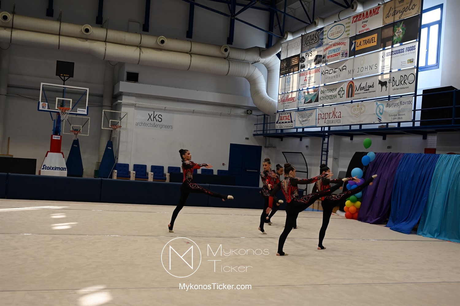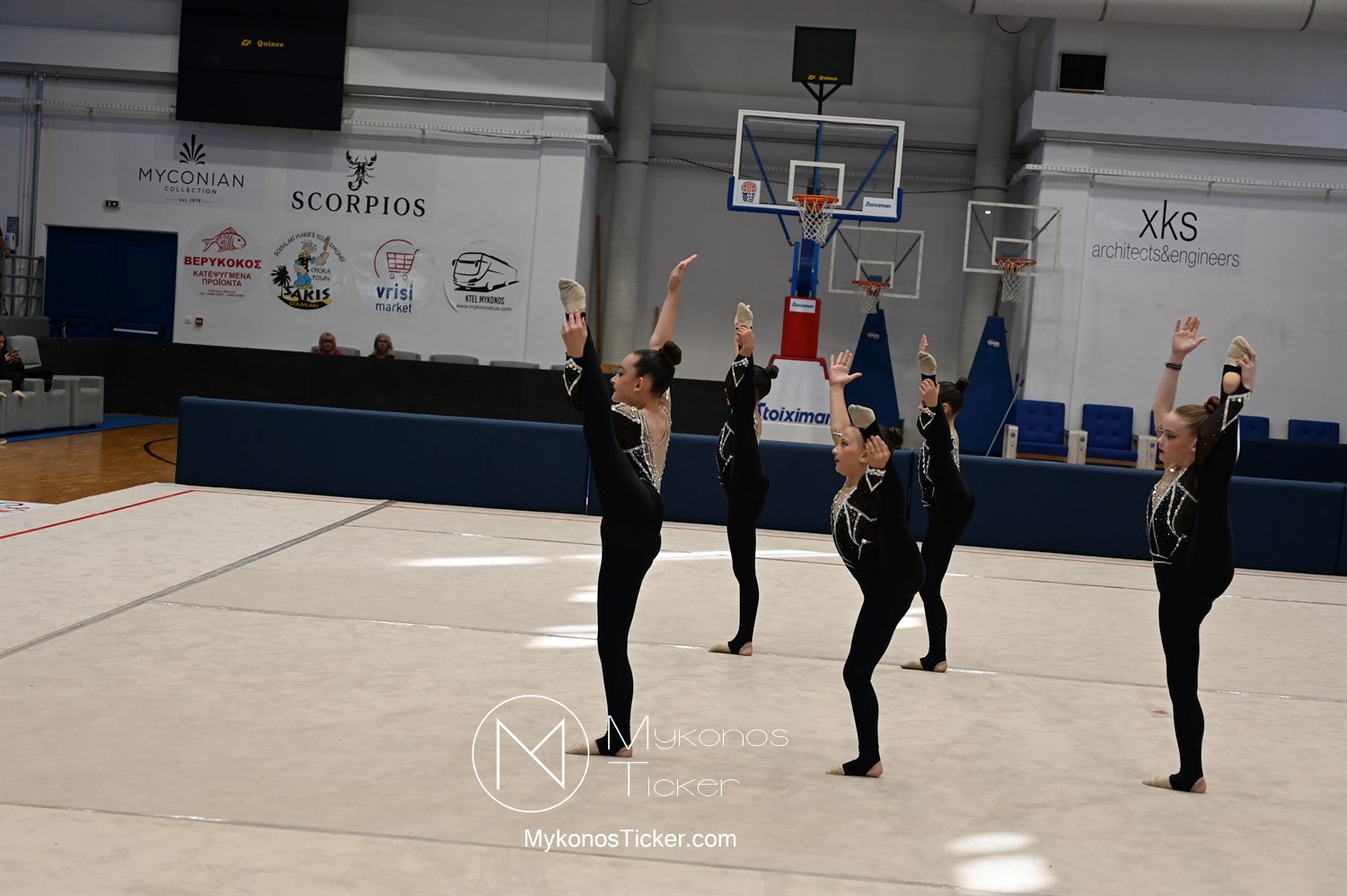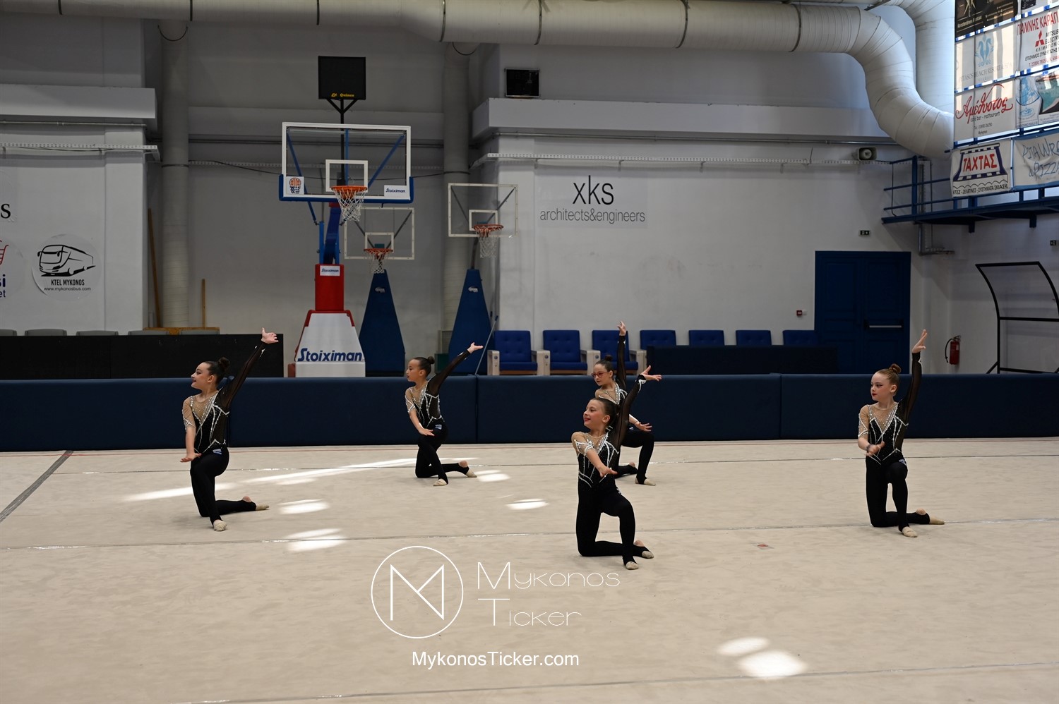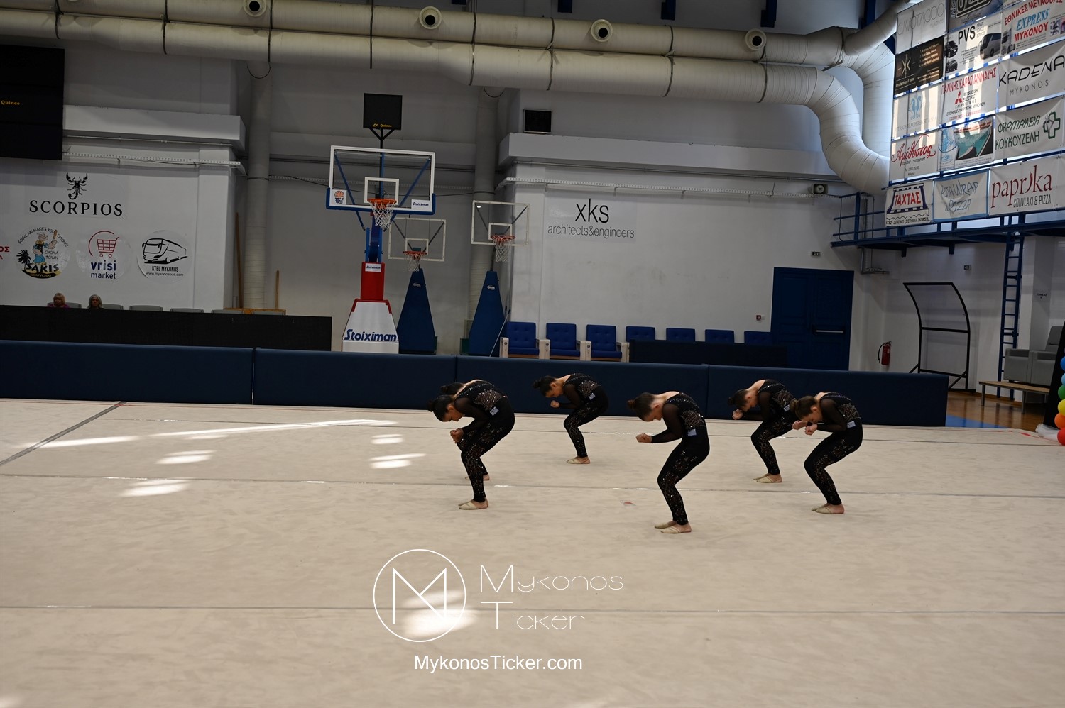 Ο Δήμος Μυκόνου τίμησε τις αθλήτριες και τους προπονητές της Αισθητικής Ομαδικής Γυμναστικής της Α.Ε. Μυκόνου, με παγκόσμιες, διεθνείς και πανελλήνιες διακρίσεις, απονέμοντάς τους συμβολικά τιμητική πλακέτα, σε μία ειδική τελετή στο πλαίσιο της εντυπωσιακής, ετήσιας επίδειξης ρυθμικής γυμναστικής με θέμα «Ταξίδι στον κόσμο των παραμυθιών», στο κλειστό Γήπεδο Μπάσκετ «Π. Χανιώτης» που κατακλύσθηκε με ρυθμό, μουσική, χρώματα και μια σειρά από υπέροχες και πρωτότυπες χορογραφίες ρυθμικής γυμναστικής με μπάλες, στεφάνια, σχοινάκια και κορδέλες, αναδεικνύοντας τη σημασία της χορευτικής παιδείας και της καλλιτεχνικής έκφρασης.