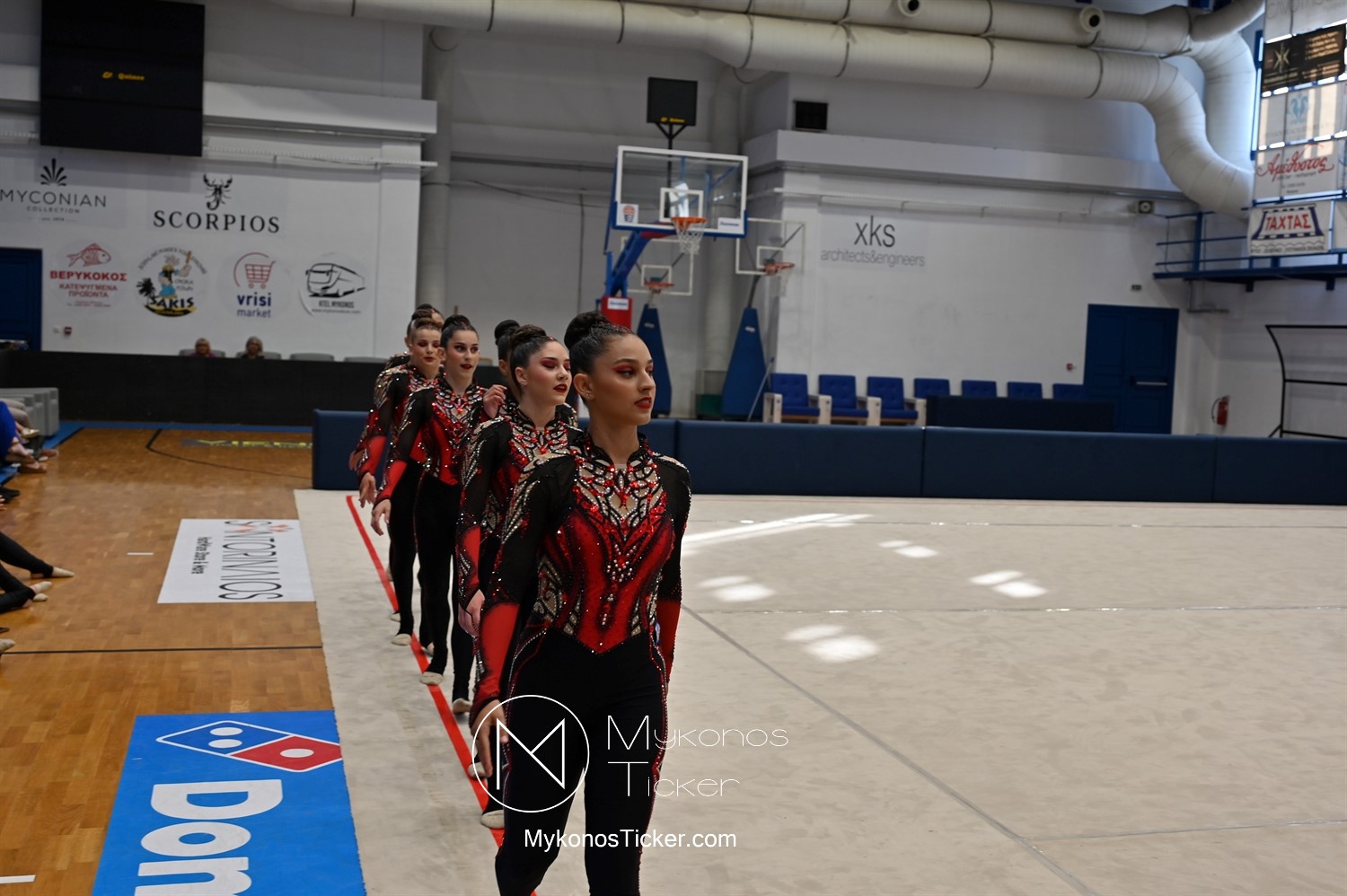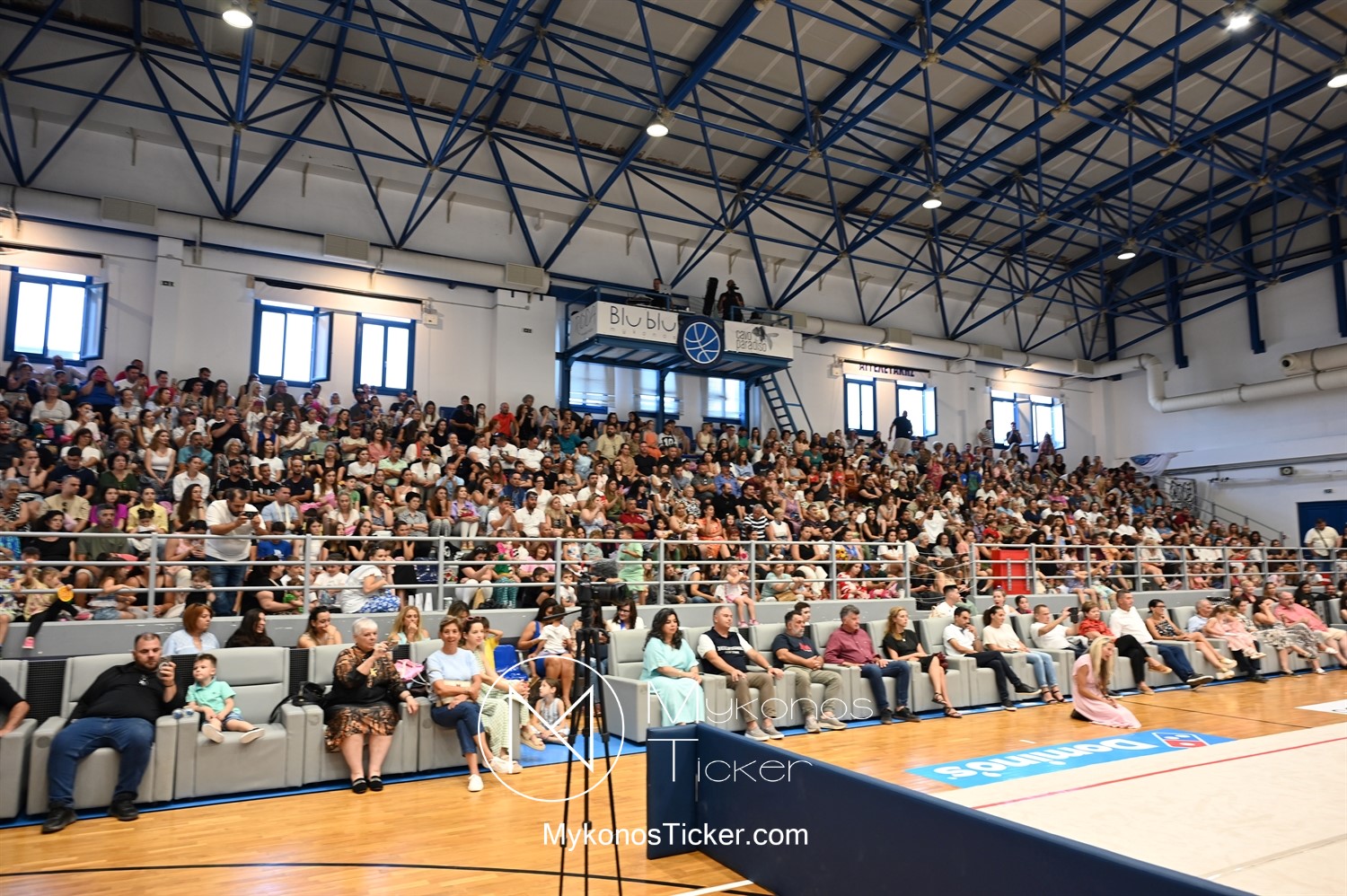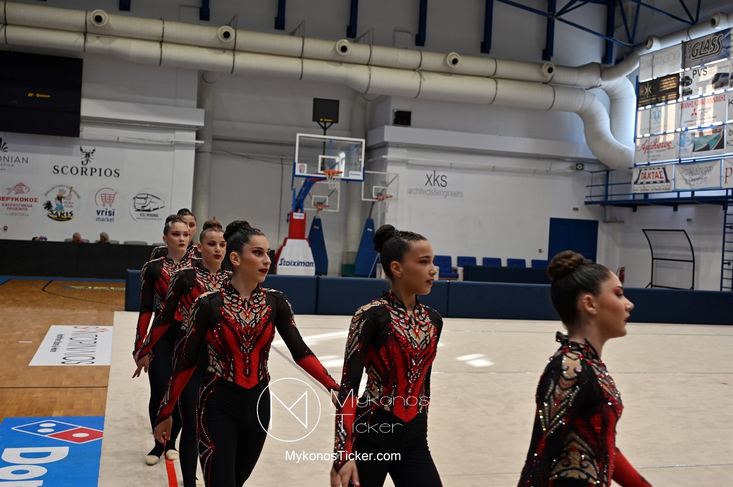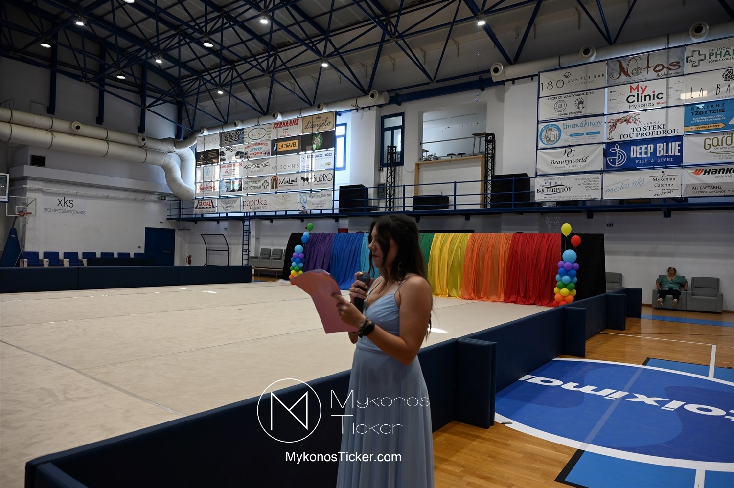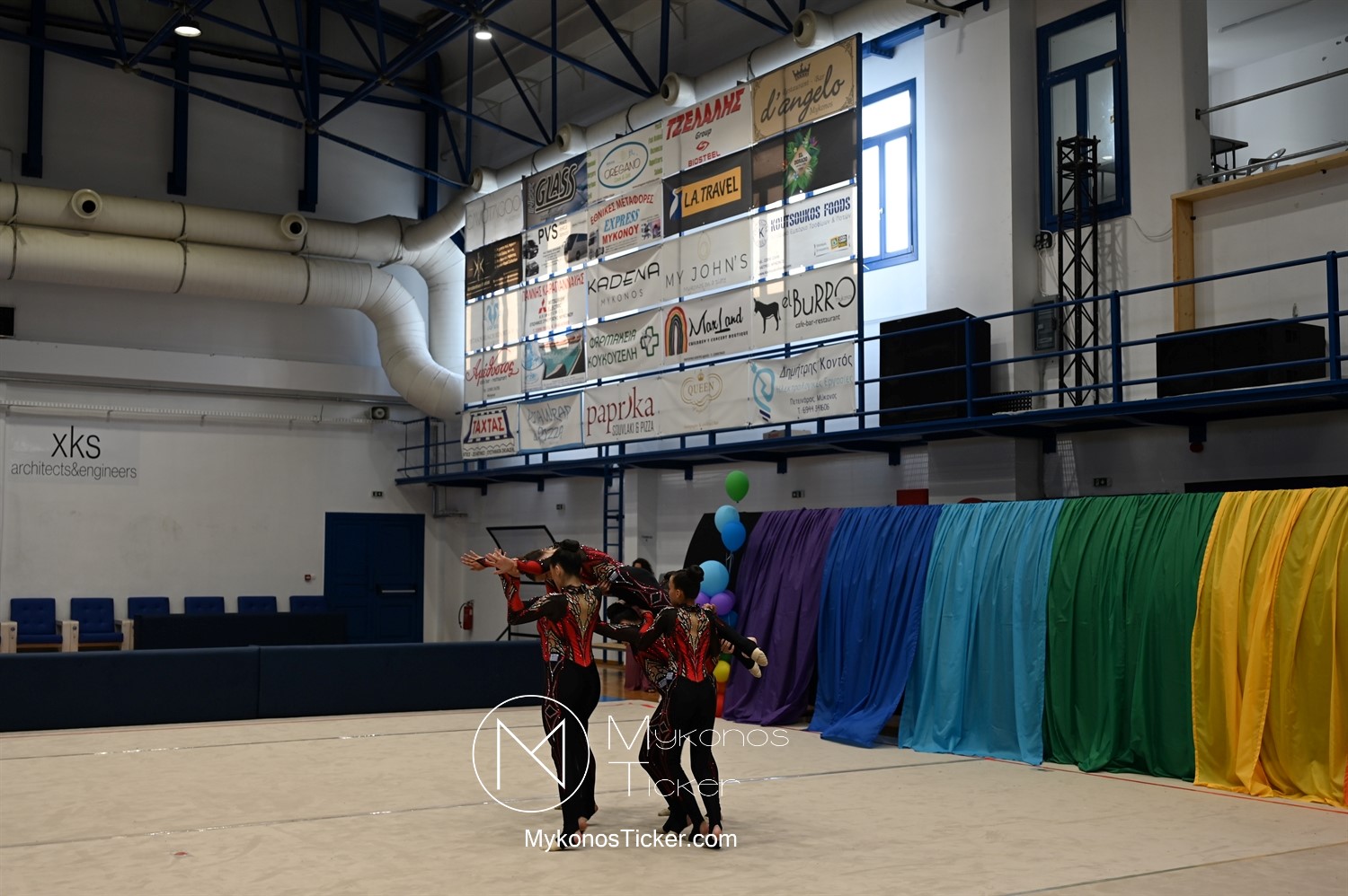 Ο Δήμος Μυκόνου τίμησε τις αθλήτριες και τους προπονητές της Αισθητικής Ομαδικής Γυμναστικής της Α.Ε. Μυκόνου, με παγκόσμιες, διεθνείς και πανελλήνιες διακρίσεις, απονέμοντάς τους συμβολικά τιμητική πλακέτα, σε μία ειδική τελετή στο πλαίσιο της εντυπωσιακής, ετήσιας επίδειξης ρυθμικής γυμναστικής με θέμα «Ταξίδι στον κόσμο των παραμυθιών», στο κλειστό Γήπεδο Μπάσκετ «Π. Χανιώτης» που κατακλύσθηκε με ρυθμό, μουσική, χρώματα και μια σειρά από υπέροχες και πρωτότυπες χορογραφίες ρυθμικής γυμναστικής με μπάλες, στεφάνια, σχοινάκια και κορδέλες, αναδεικνύοντας τη σημασία της χορευτικής παιδείας και της καλλιτεχνικής έκφρασης.