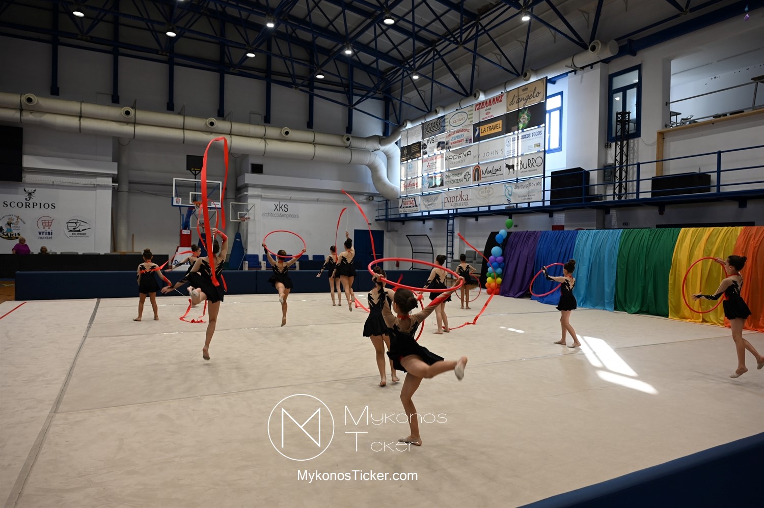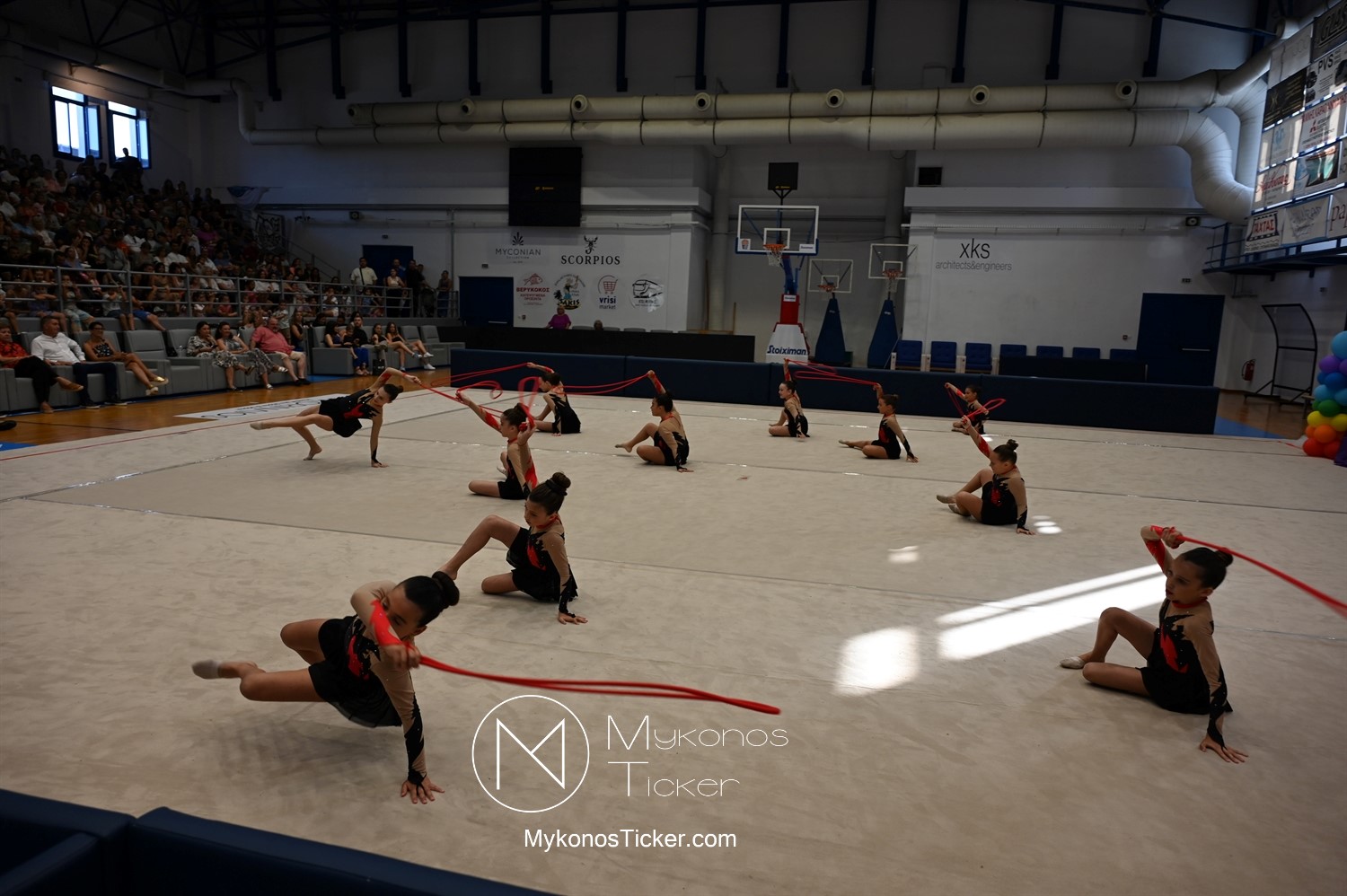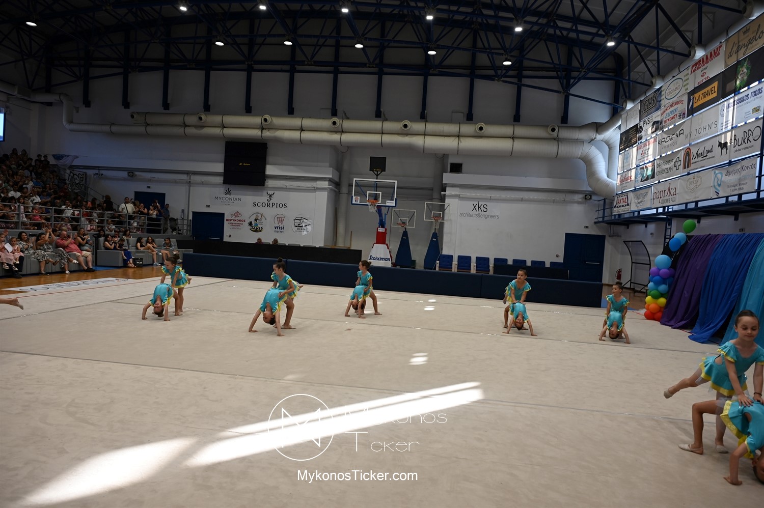 "Ταξίδι στον κόσμο των παραμυθιών από τις αθλήτριες της Αισθητικής Ομαδικής Γυμναστικής της Α.Ε. Μυκόνου: Μια μαγική καλοκαιρινή στο κλειστό της Άνω Μεράς γεμάτη χρώμα, χάρη, συγκίνηση και ομαδικό πνεύμα!