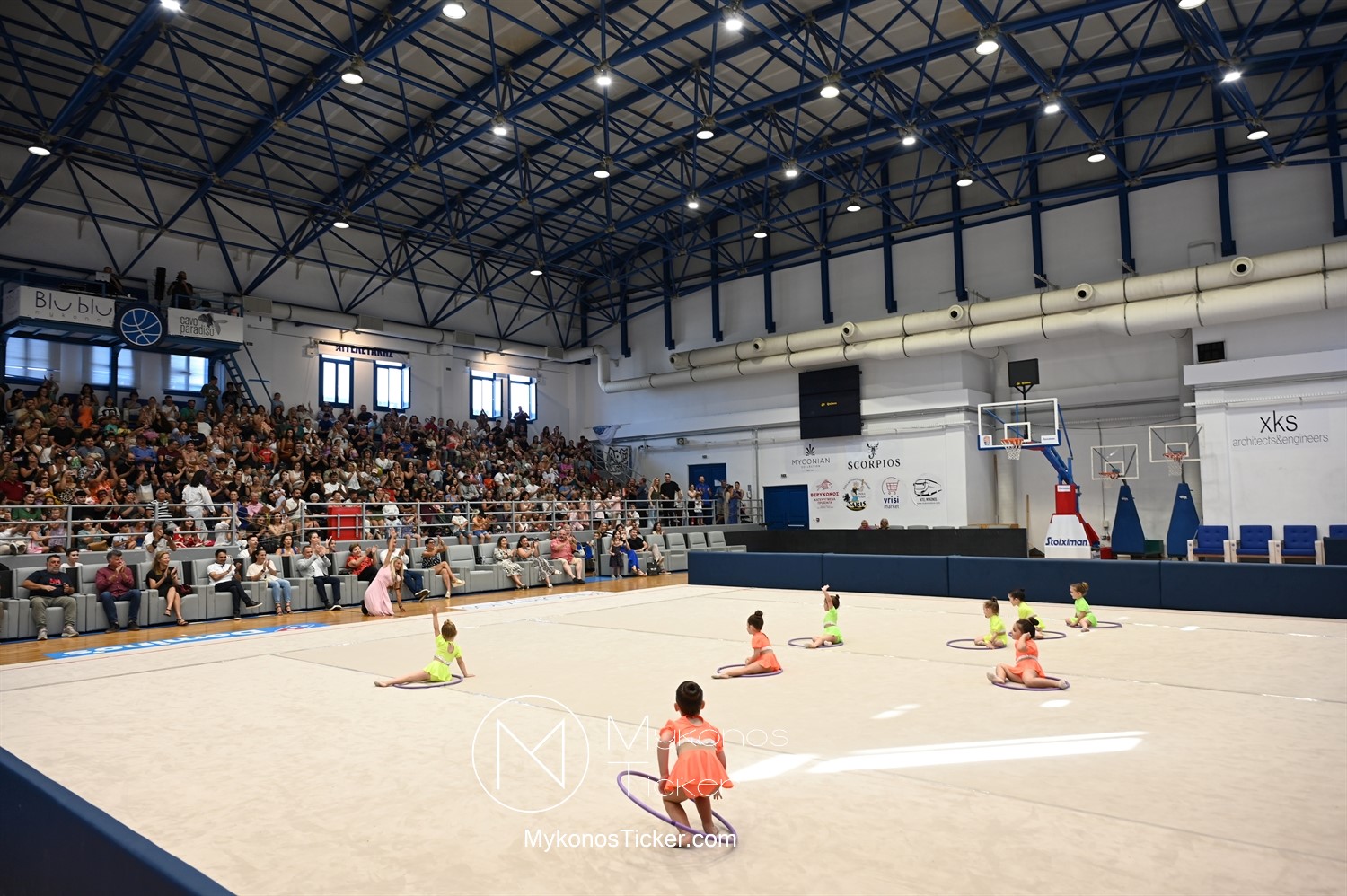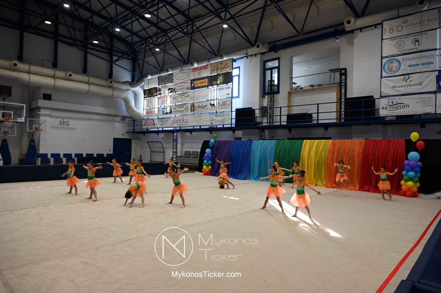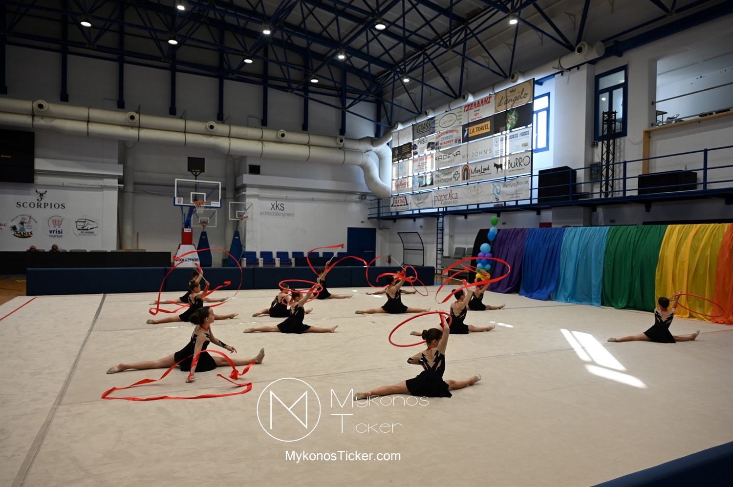 "Ταξίδι στον κόσμο των παραμυθιών από τις αθλήτριες της Αισθητικής Ομαδικής Γυμναστικής της Α.Ε. Μυκόνου: Μια μαγική καλοκαιρινή στο κλειστό της Άνω Μεράς γεμάτη χρώμα, χάρη, συγκίνηση και ομαδικό πνεύμα!