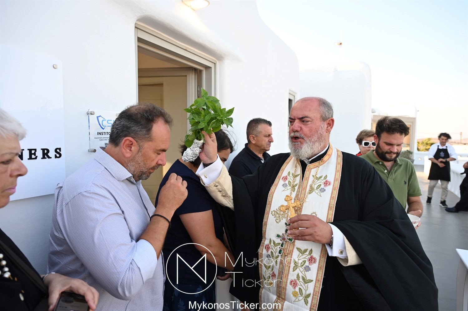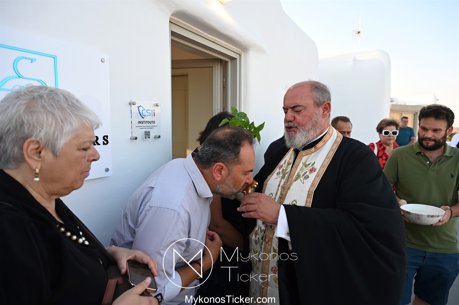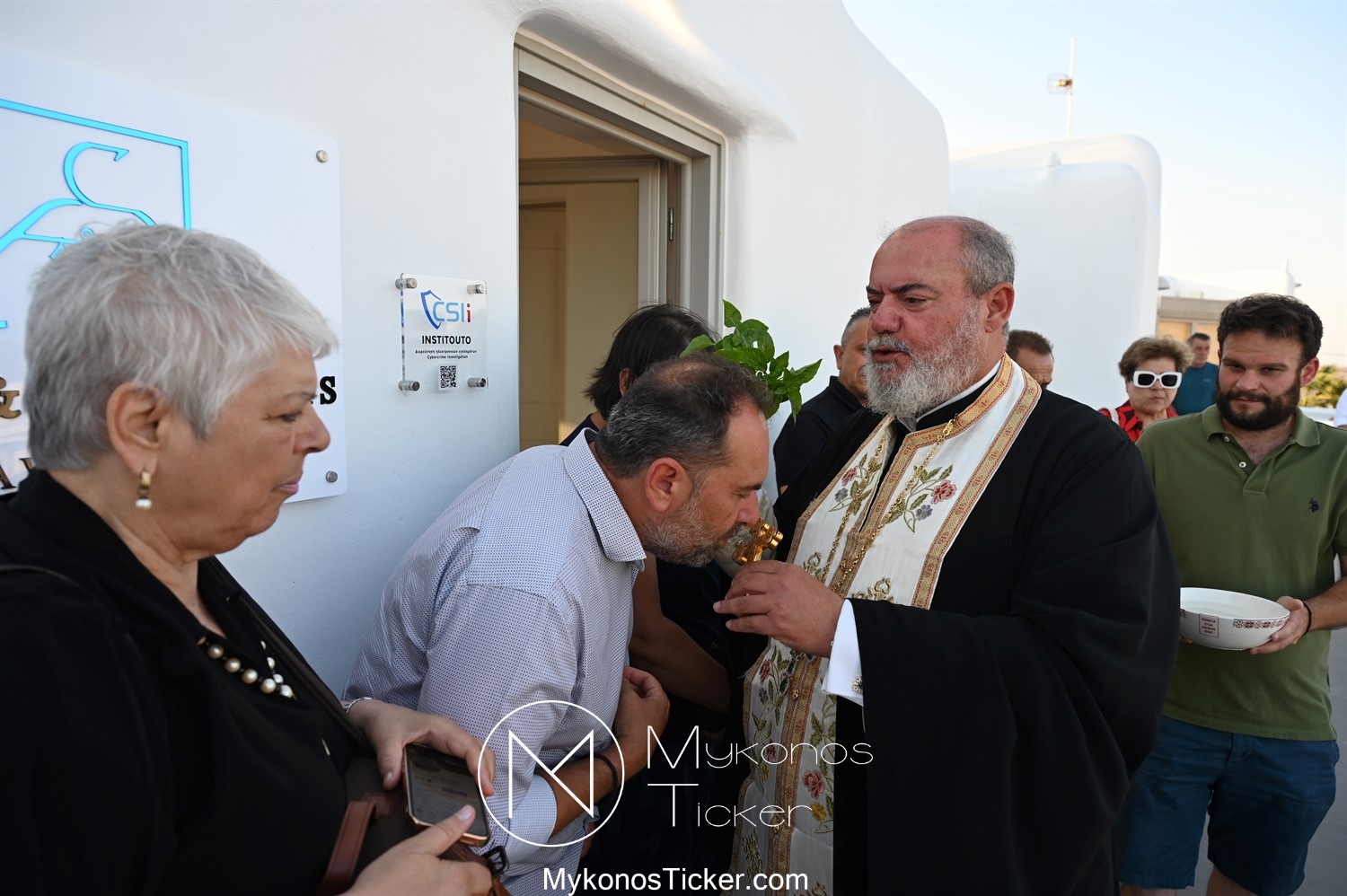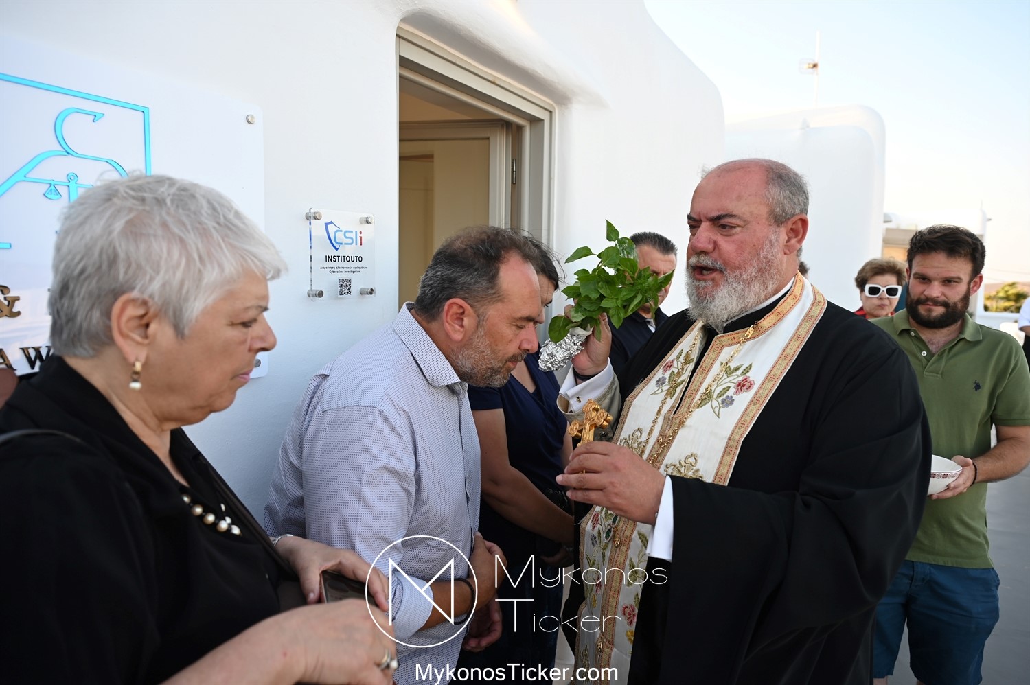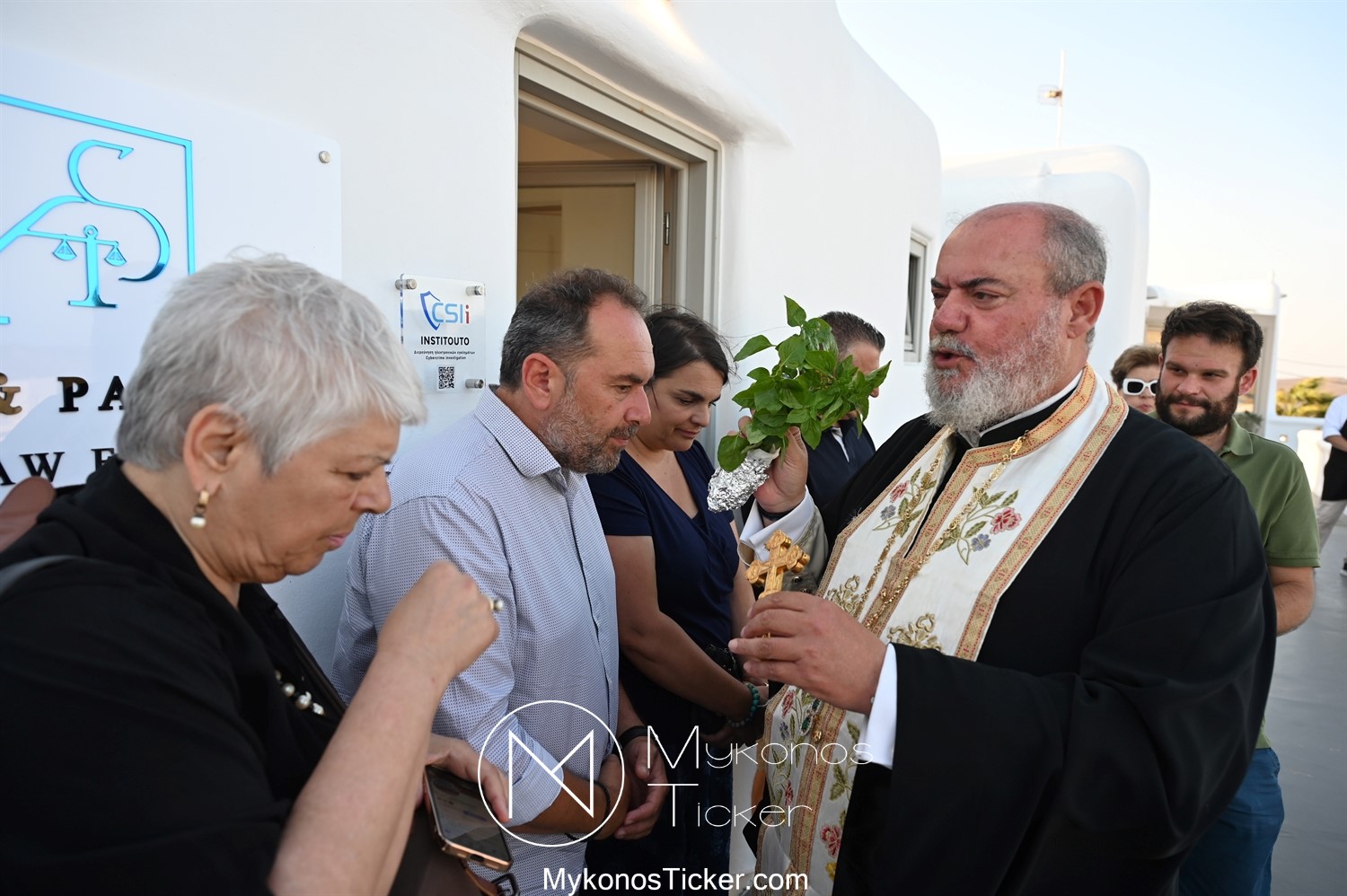 Στο πλαίσιο των εγκαινίων τελέσθηκε Αγιασμός από τον  Αρχιερατικό Επίτροπο Δήλου και Μυκόνου, Αιδεσιμολογιώτατο, π. Πέτρο Μαραγκό, ο οποίος ευχήθηκε στον αντιστράτηγο ε. α, Μανώλη Σφακιανάκη και στους συνεργάτες του, ενώ παράλληλα μετέφερε προς όλους τις ευχές και την αγάπη του Σεβασμιωτάτου Μητροπολίτου Σύρου και Μυκόνου κ.κ. Δωροθέου Β’.