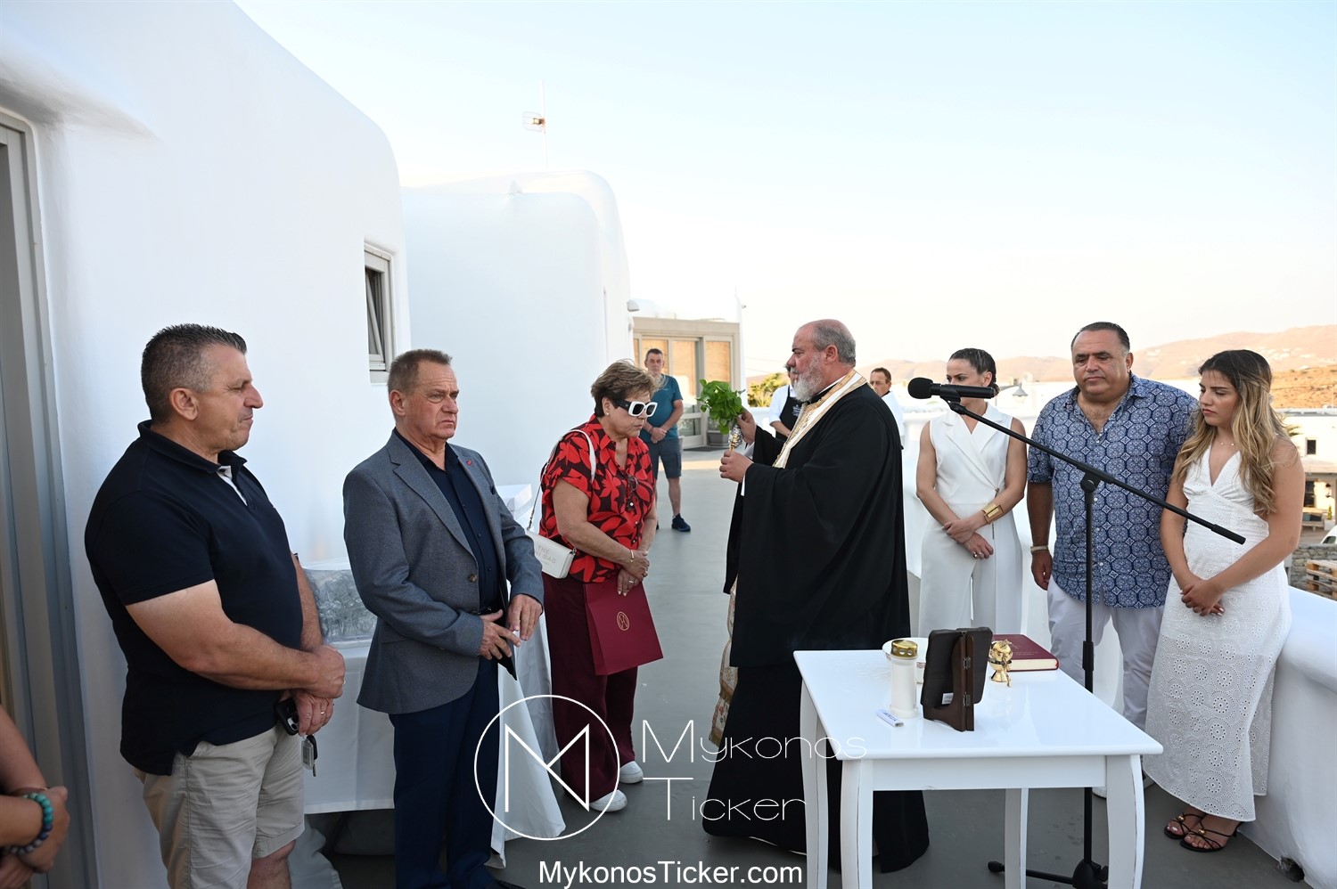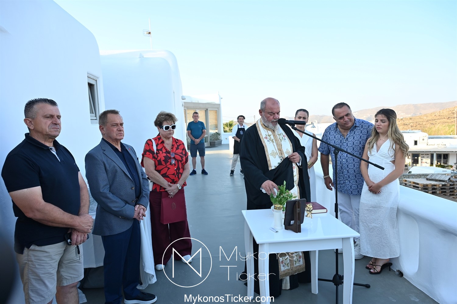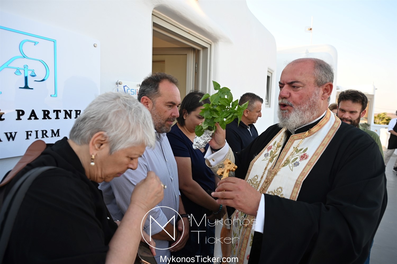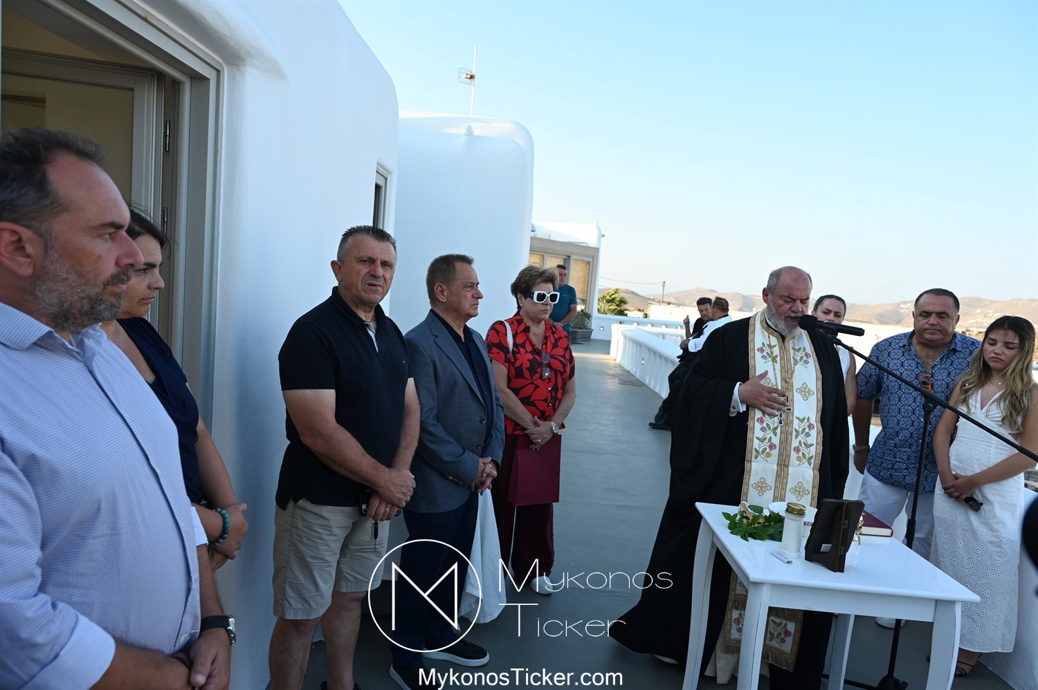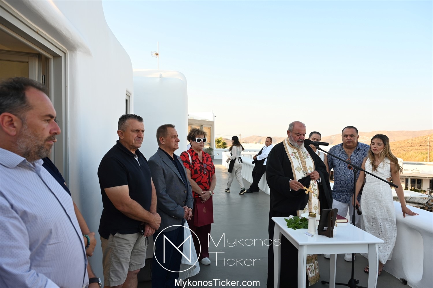 Στο πλαίσιο των εγκαινίων τελέσθηκε Αγιασμός από τον  Αρχιερατικό Επίτροπο Δήλου και Μυκόνου, Αιδεσιμολογιώτατο, π. Πέτρο Μαραγκό, ο οποίος ευχήθηκε στον αντιστράτηγο ε. α, Μανώλη Σφακιανάκη και στους συνεργάτες του, ενώ παράλληλα μετέφερε προς όλους τις ευχές και την αγάπη του Σεβασμιωτάτου Μητροπολίτου Σύρου και Μυκόνου κ.κ. Δωροθέου Β’.