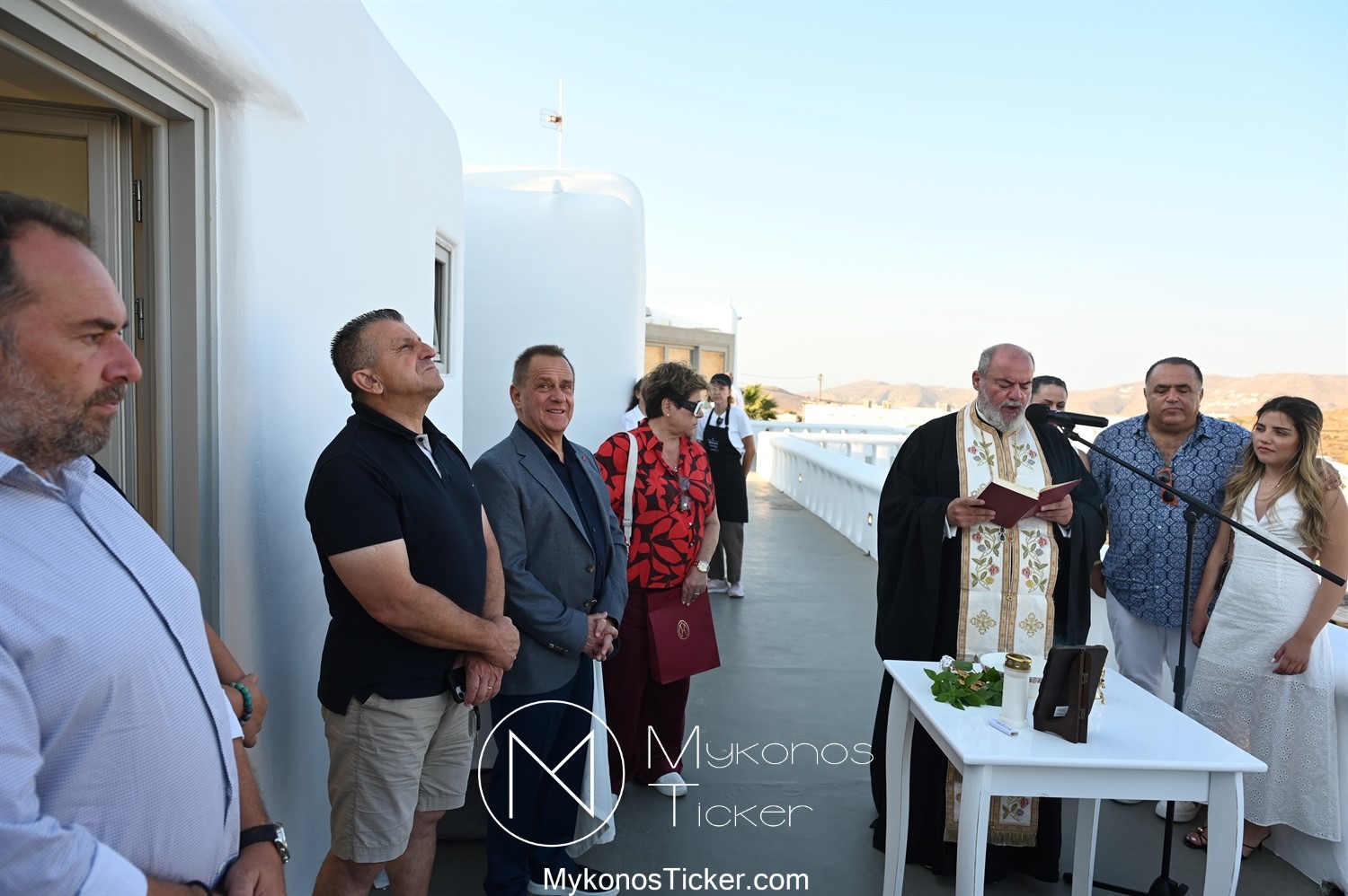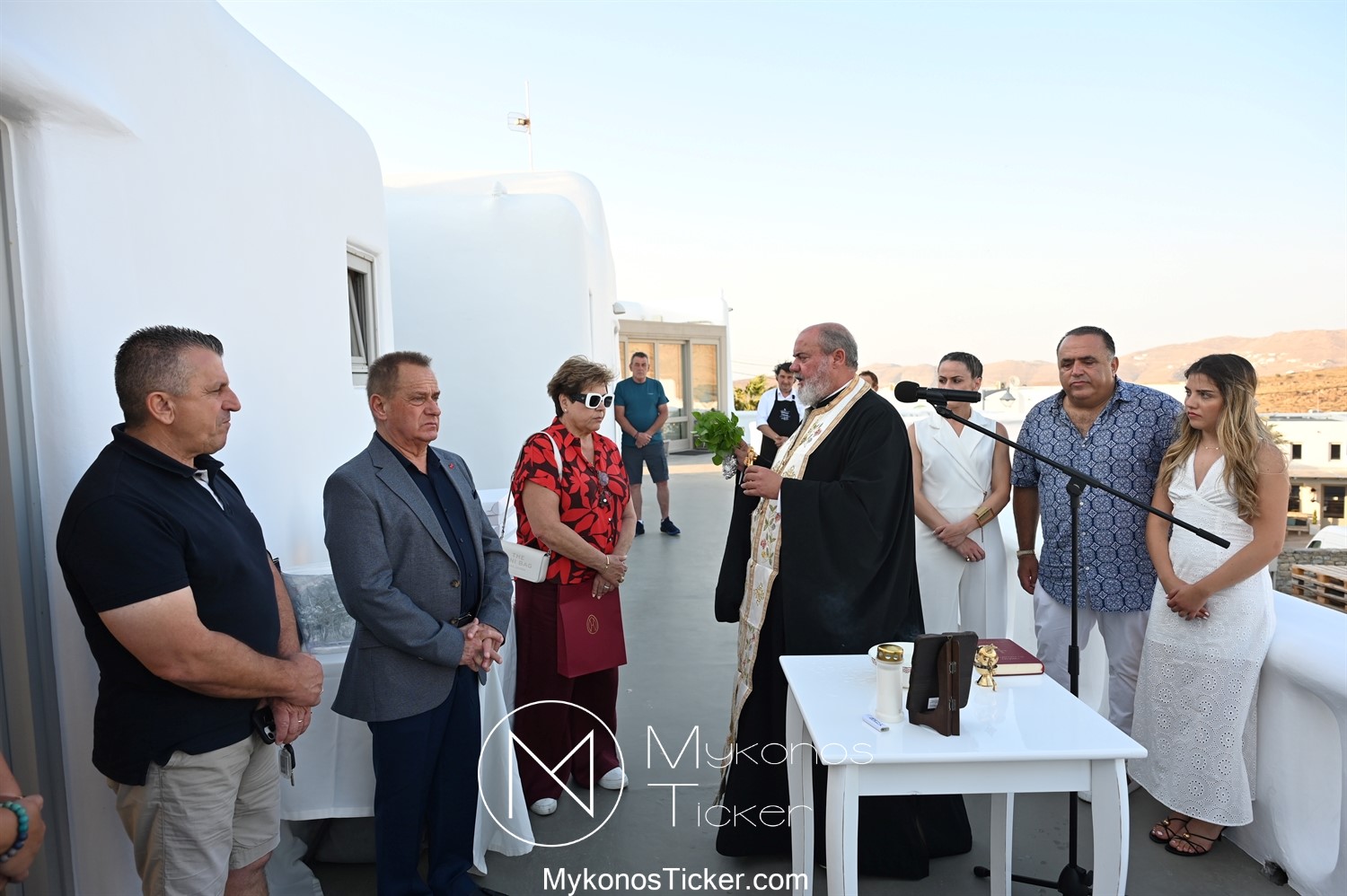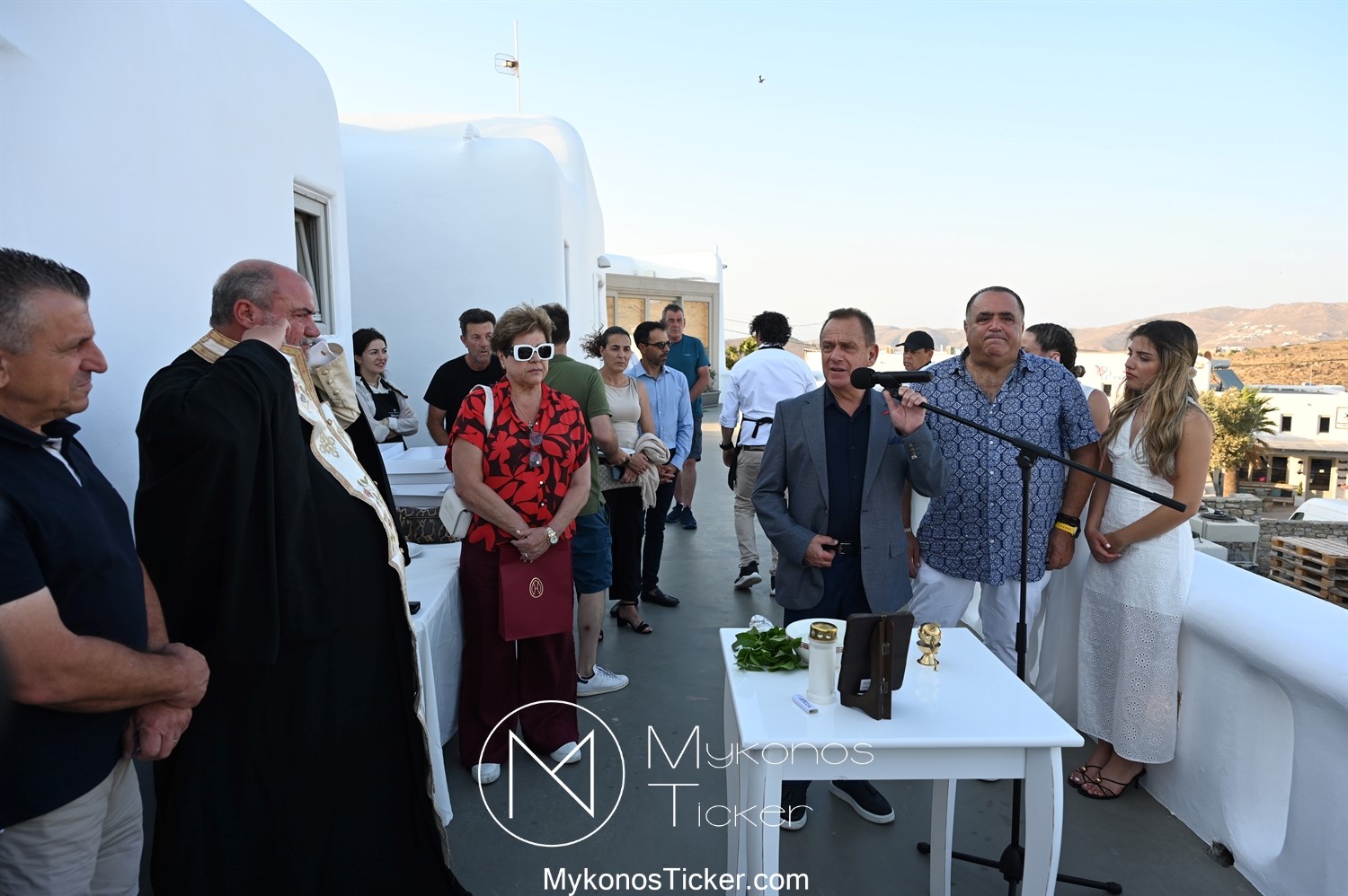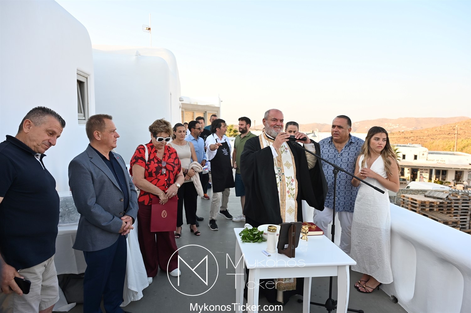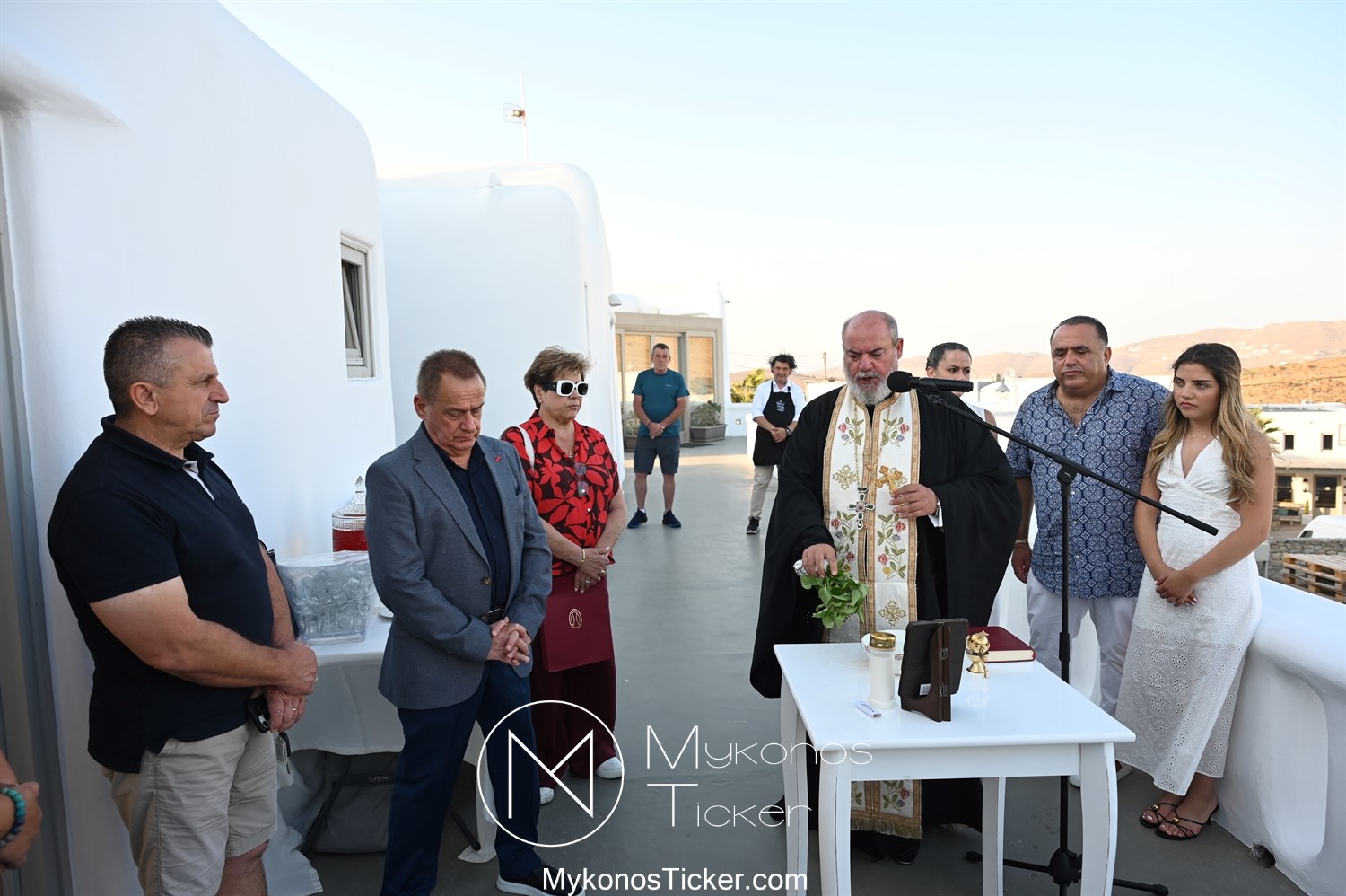 Στο πλαίσιο των εγκαινίων τελέσθηκε Αγιασμός από τον  Αρχιερατικό Επίτροπο Δήλου και Μυκόνου, Αιδεσιμολογιώτατο, π. Πέτρο Μαραγκό, ο οποίος ευχήθηκε στον αντιστράτηγο ε. α, Μανώλη Σφακιανάκη και στους συνεργάτες του, ενώ παράλληλα μετέφερε προς όλους τις ευχές και την αγάπη του Σεβασμιωτάτου Μητροπολίτου Σύρου και Μυκόνου κ.κ. Δωροθέου Β’.