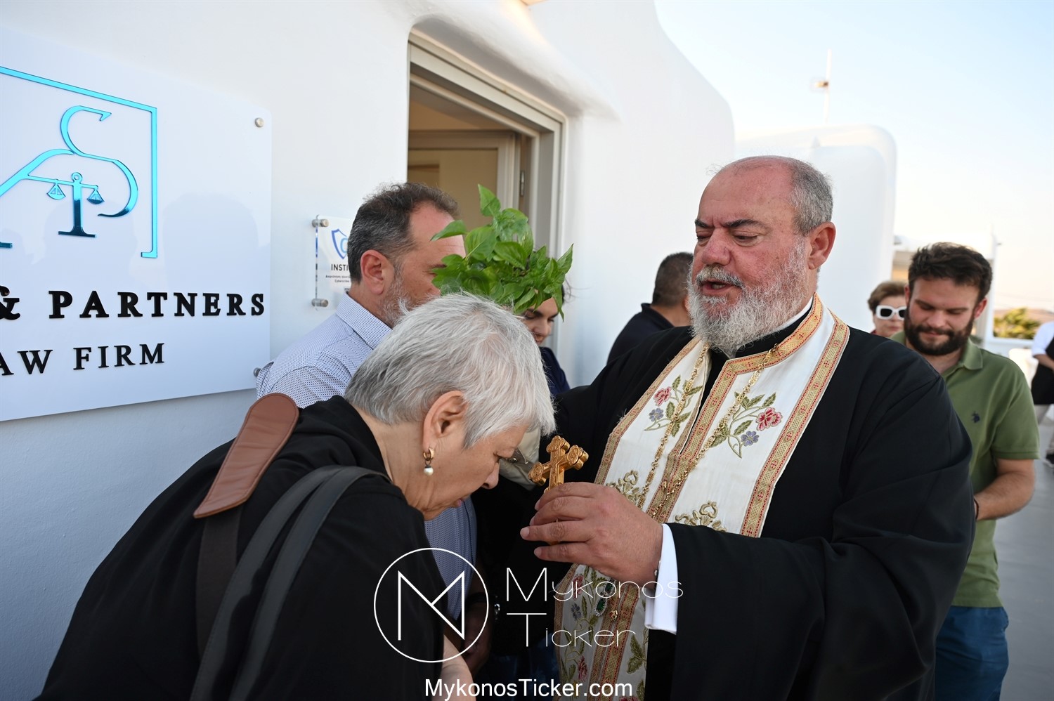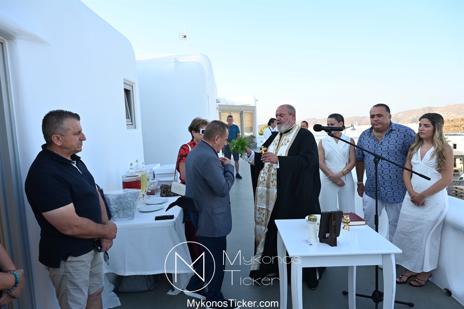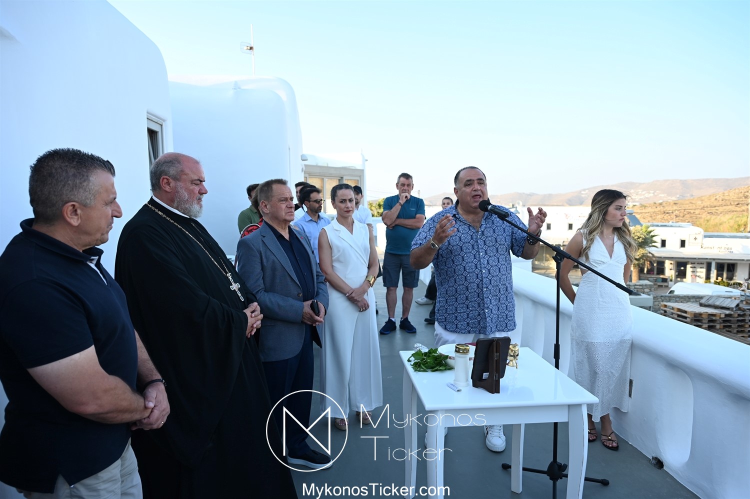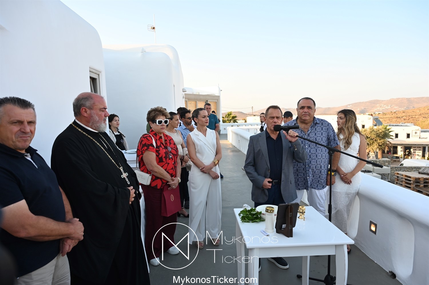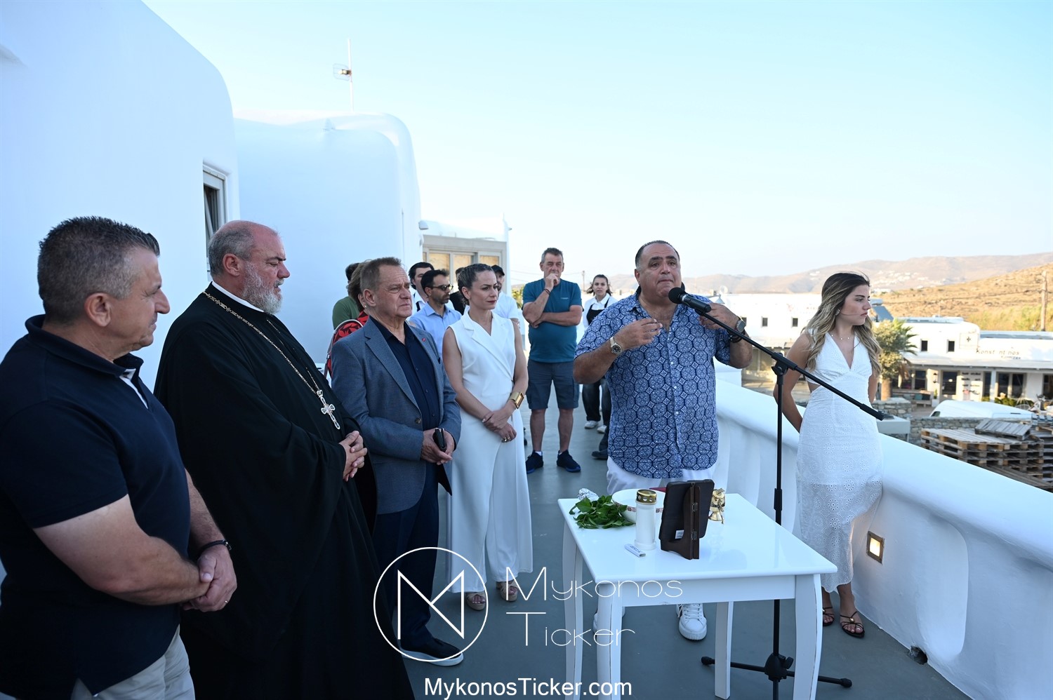 Στο πλαίσιο των εγκαινίων τελέσθηκε Αγιασμός από τον  Αρχιερατικό Επίτροπο Δήλου και Μυκόνου, Αιδεσιμολογιώτατο, π. Πέτρο Μαραγκό, ο οποίος ευχήθηκε στον αντιστράτηγο ε. α, Μανώλη Σφακιανάκη και στους συνεργάτες του, ενώ παράλληλα μετέφερε προς όλους τις ευχές και την αγάπη του Σεβασμιωτάτου Μητροπολίτου Σύρου και Μυκόνου κ.κ. Δωροθέου Β’.