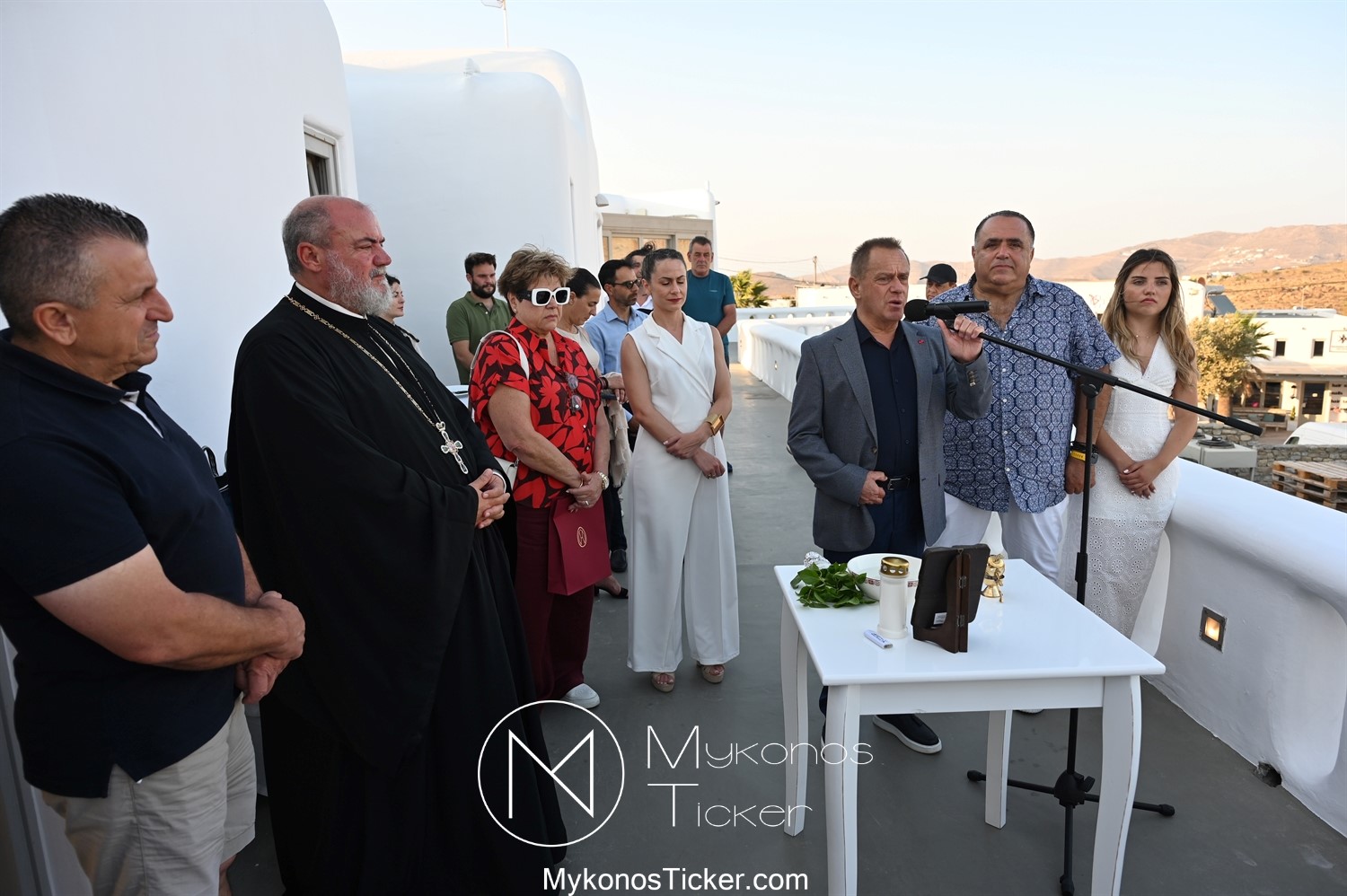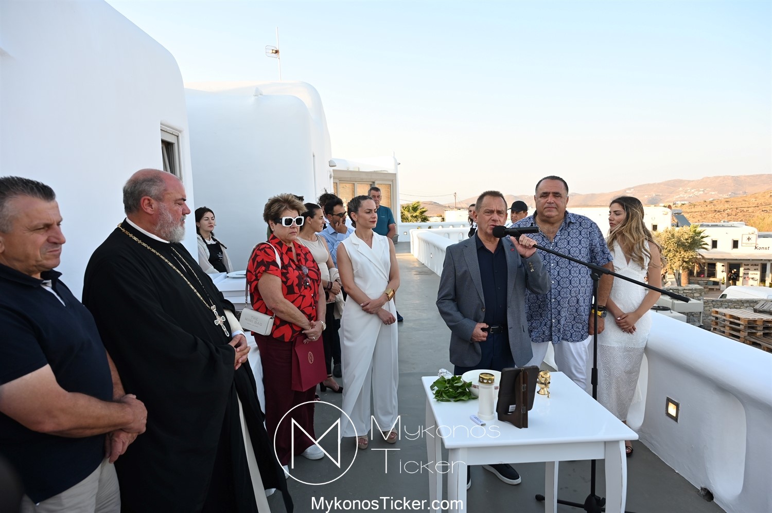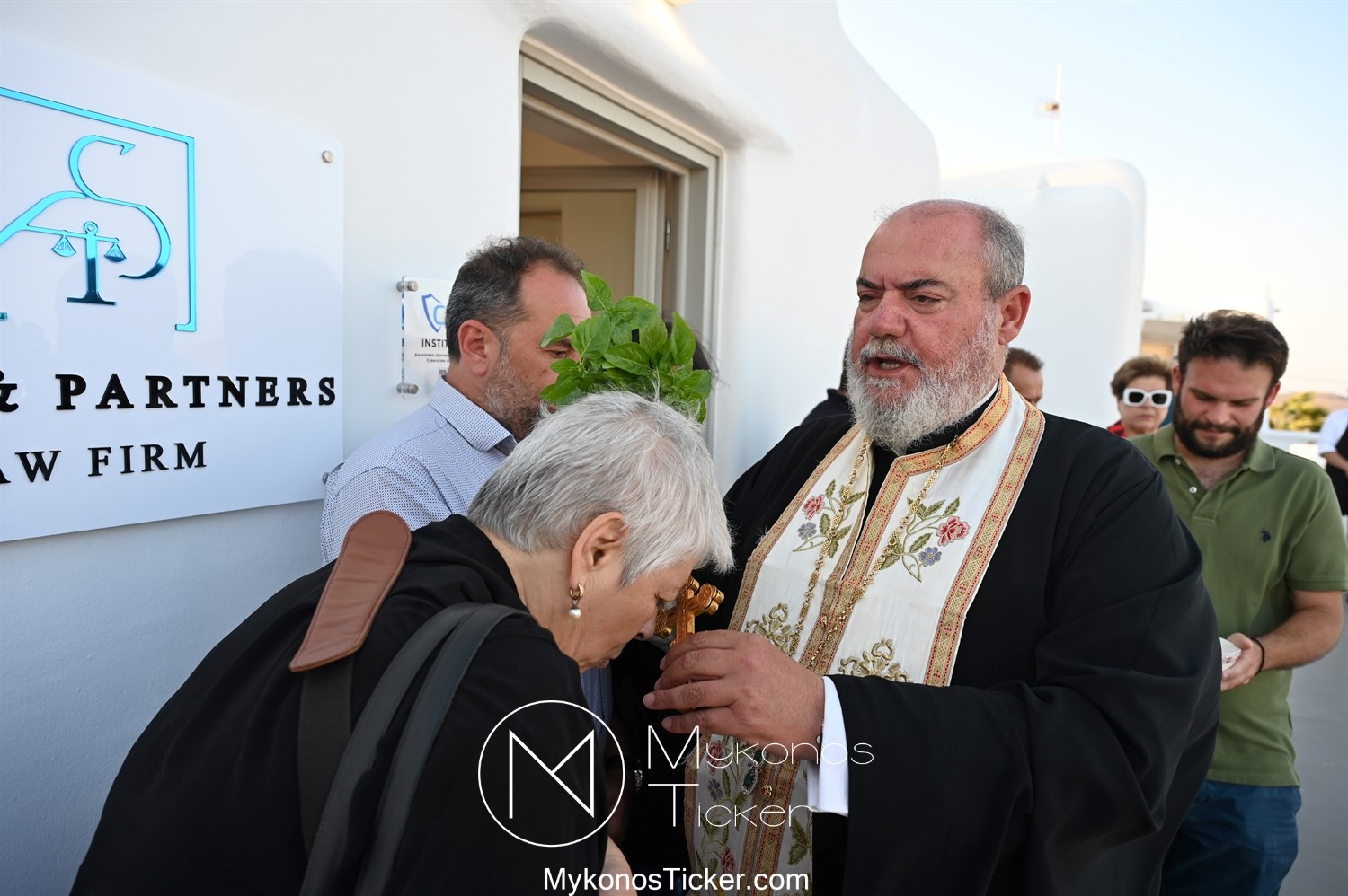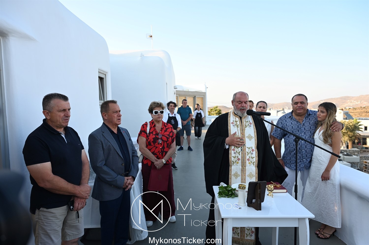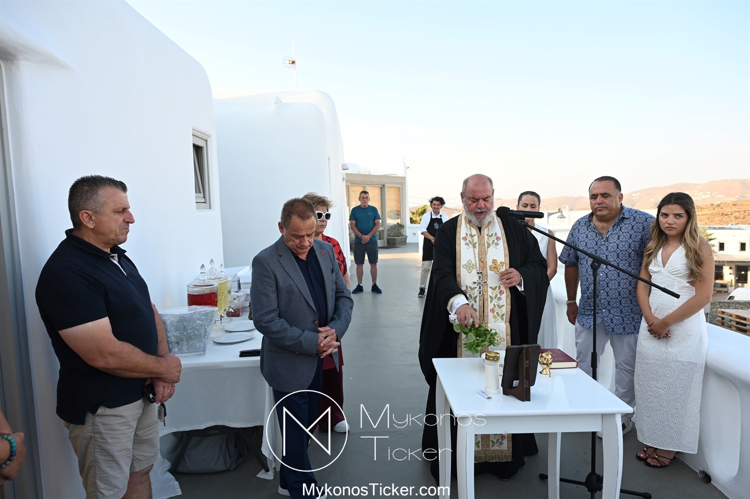 Στο πλαίσιο των εγκαινίων τελέσθηκε Αγιασμός από τον  Αρχιερατικό Επίτροπο Δήλου και Μυκόνου, Αιδεσιμολογιώτατο, π. Πέτρο Μαραγκό, ο οποίος ευχήθηκε στον αντιστράτηγο ε. α, Μανώλη Σφακιανάκη και στους συνεργάτες του, ενώ παράλληλα μετέφερε προς όλους τις ευχές και την αγάπη του Σεβασμιωτάτου Μητροπολίτου Σύρου και Μυκόνου κ.κ. Δωροθέου Β’.