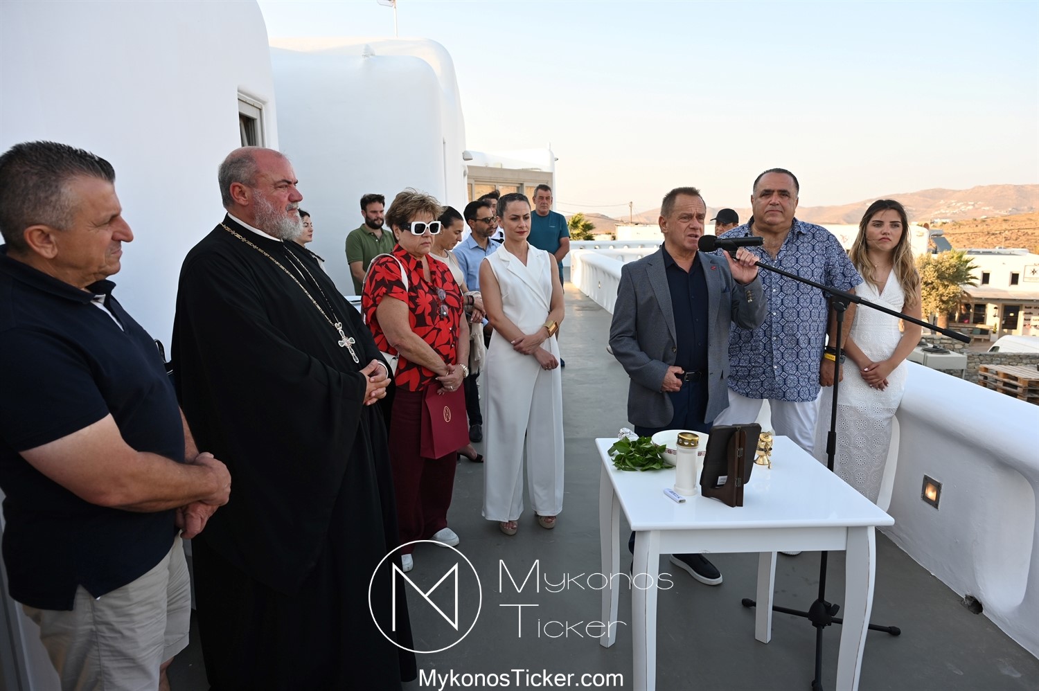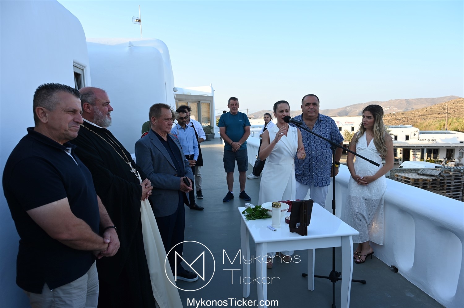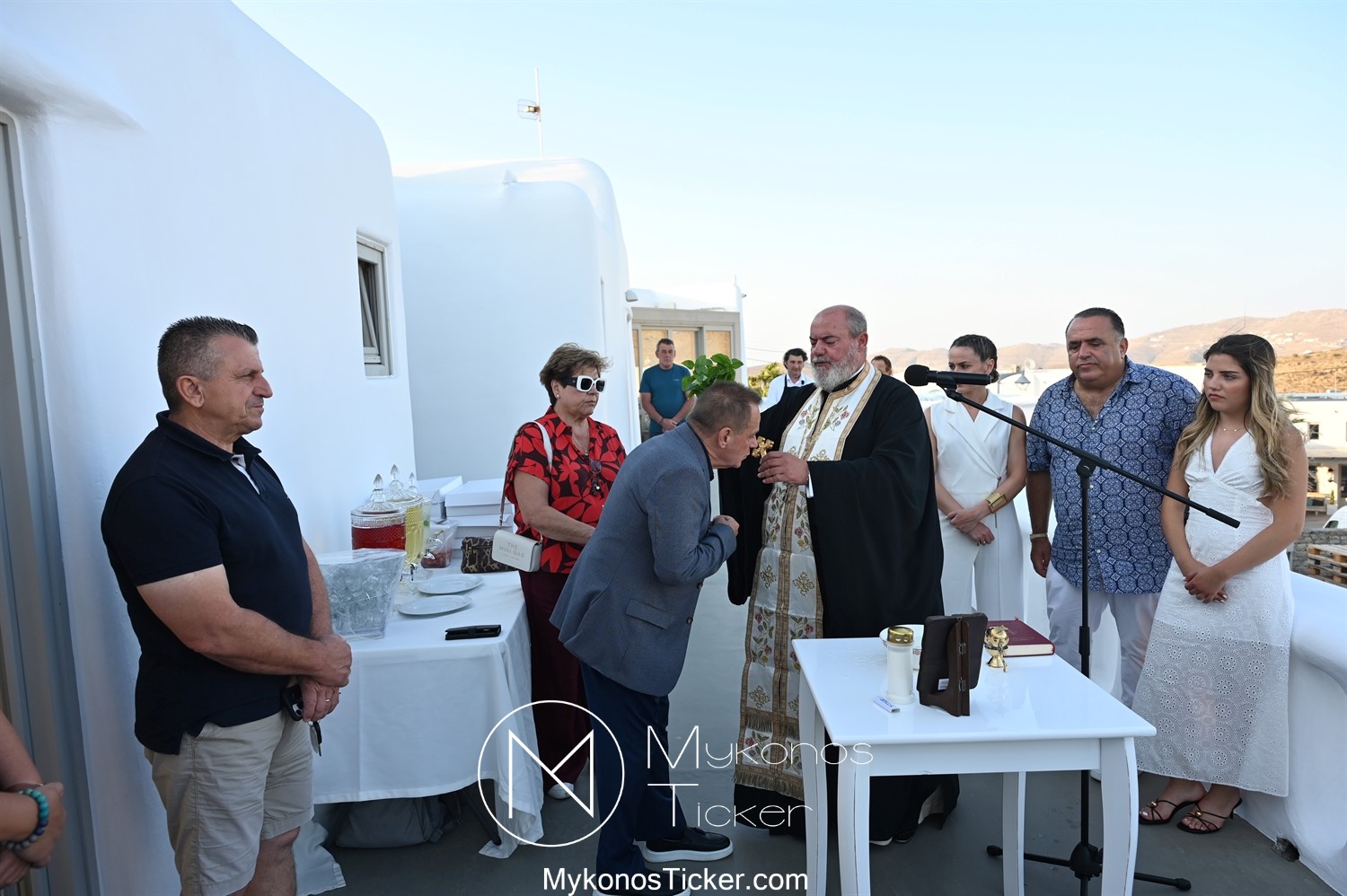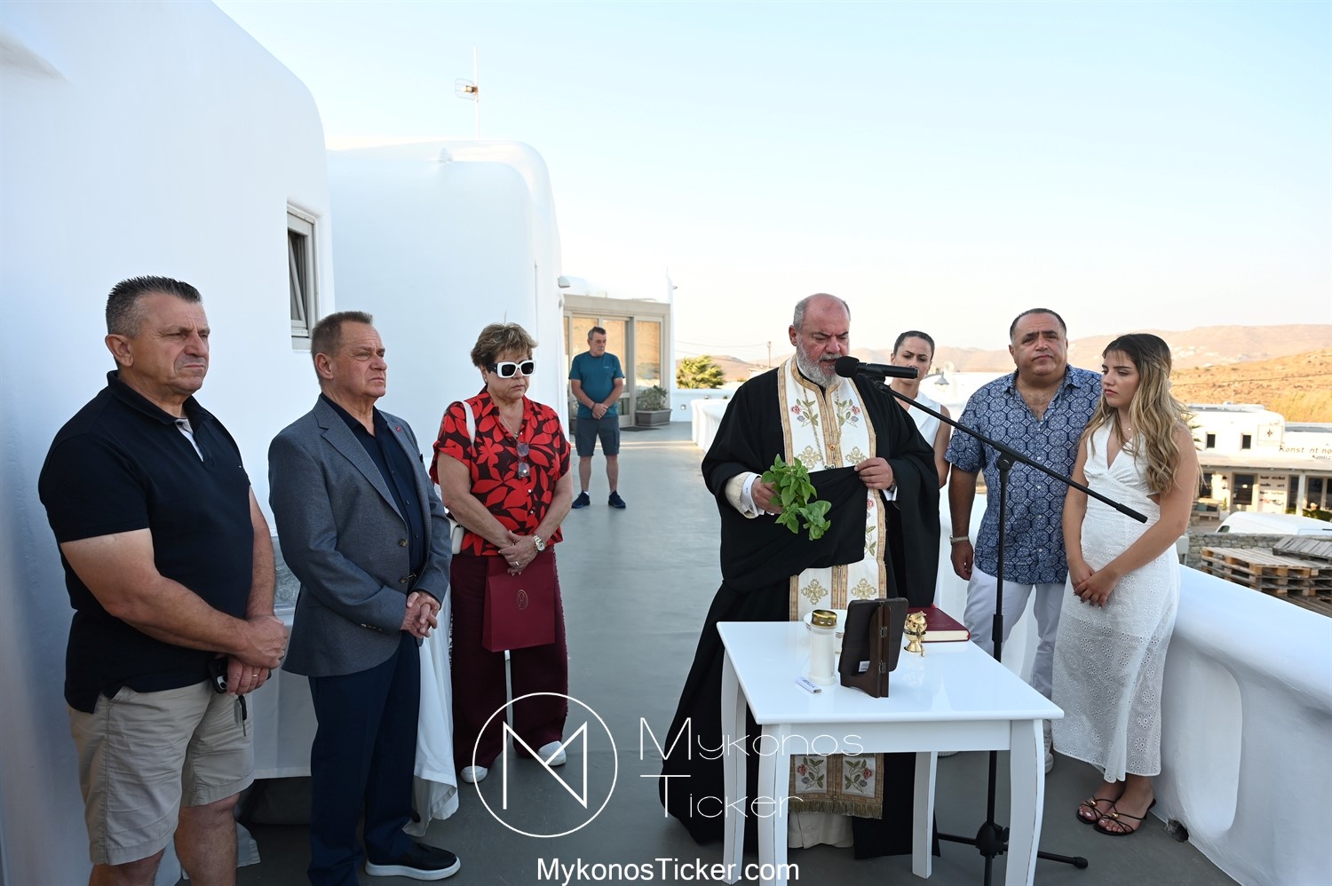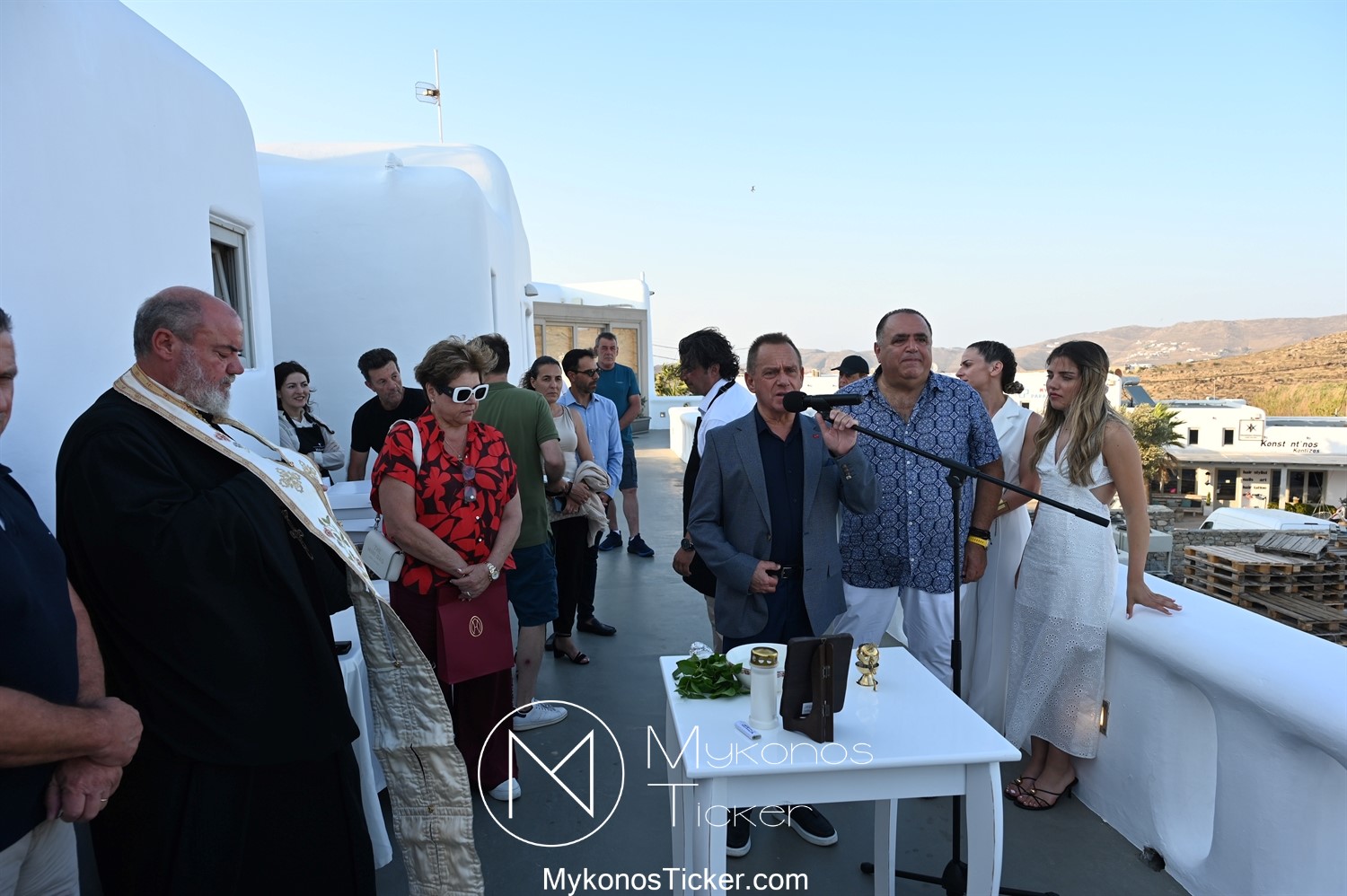 Στο πλαίσιο των εγκαινίων τελέσθηκε Αγιασμός από τον  Αρχιερατικό Επίτροπο Δήλου και Μυκόνου, Αιδεσιμολογιώτατο, π. Πέτρο Μαραγκό, ο οποίος ευχήθηκε στον αντιστράτηγο ε. α, Μανώλη Σφακιανάκη και στους συνεργάτες του, ενώ παράλληλα μετέφερε προς όλους τις ευχές και την αγάπη του Σεβασμιωτάτου Μητροπολίτου Σύρου και Μυκόνου κ.κ. Δωροθέου Β’.