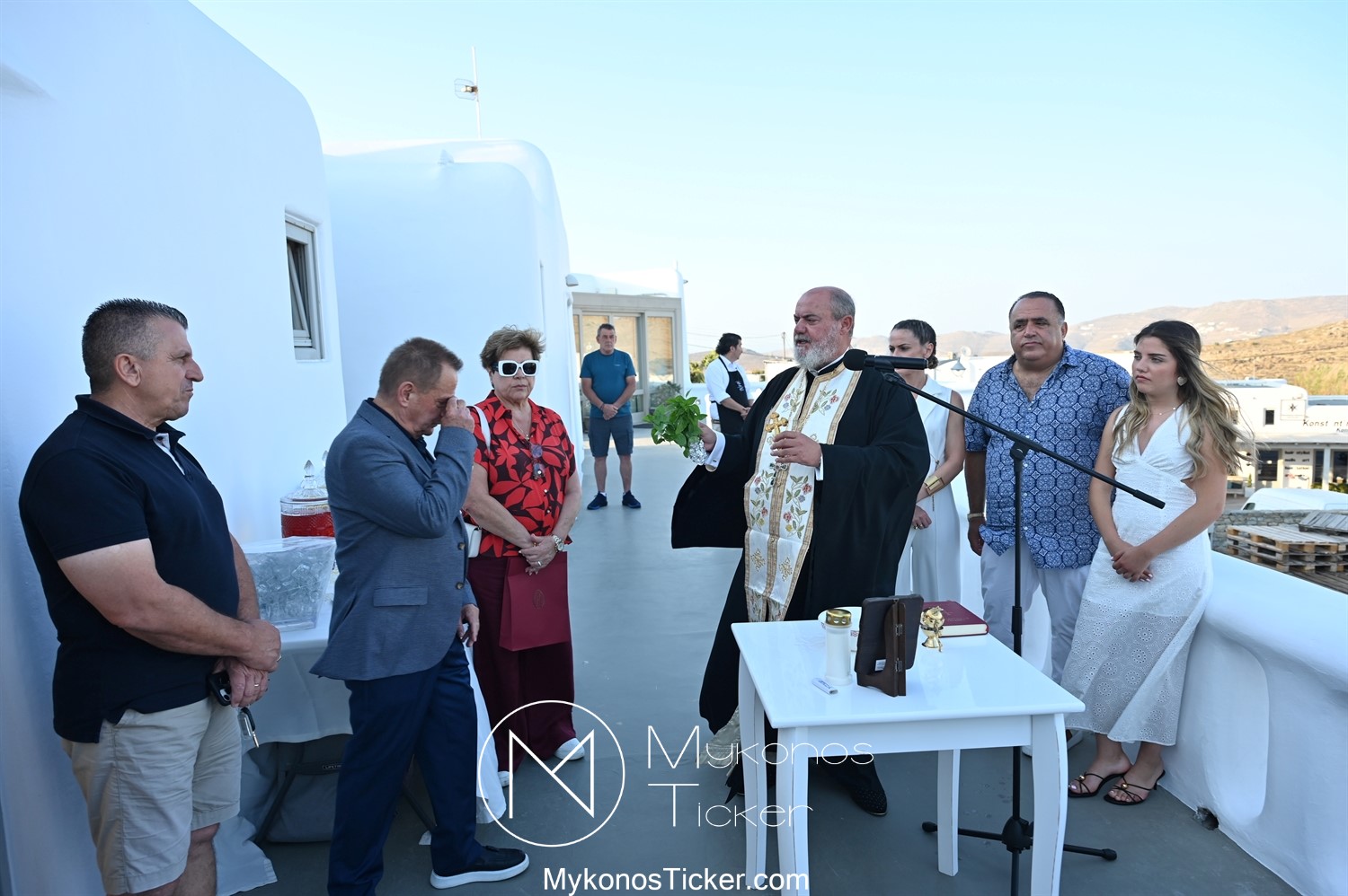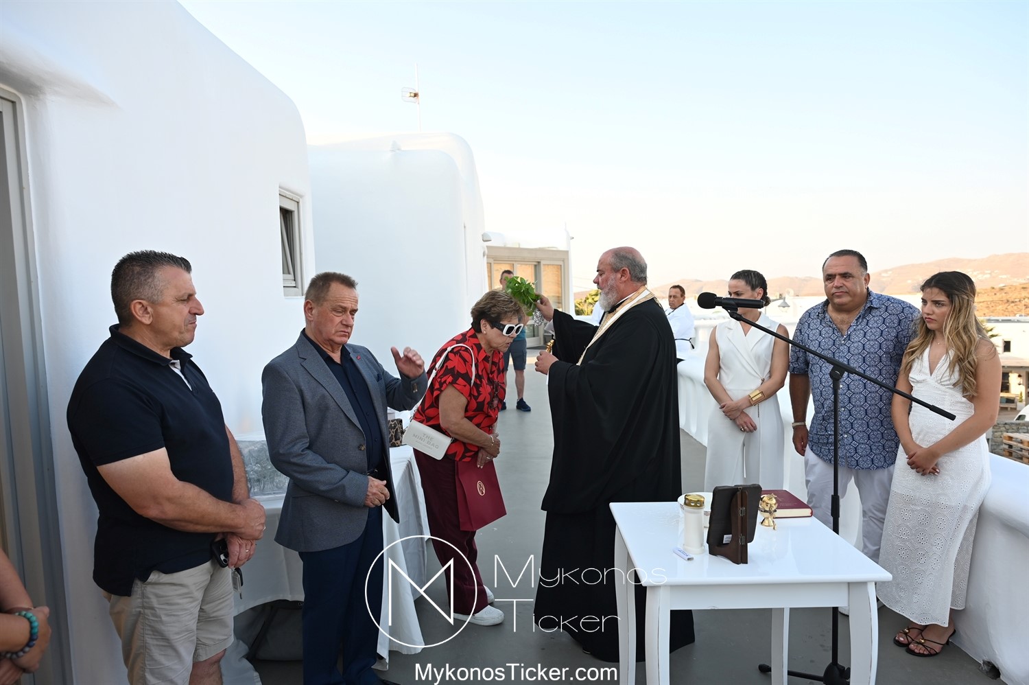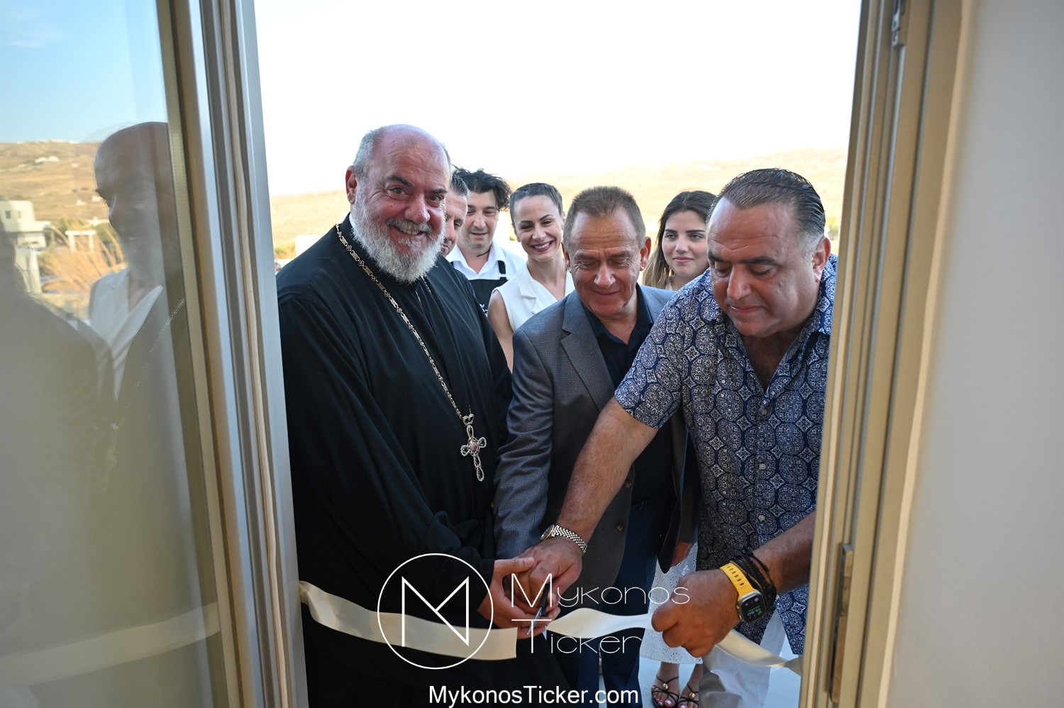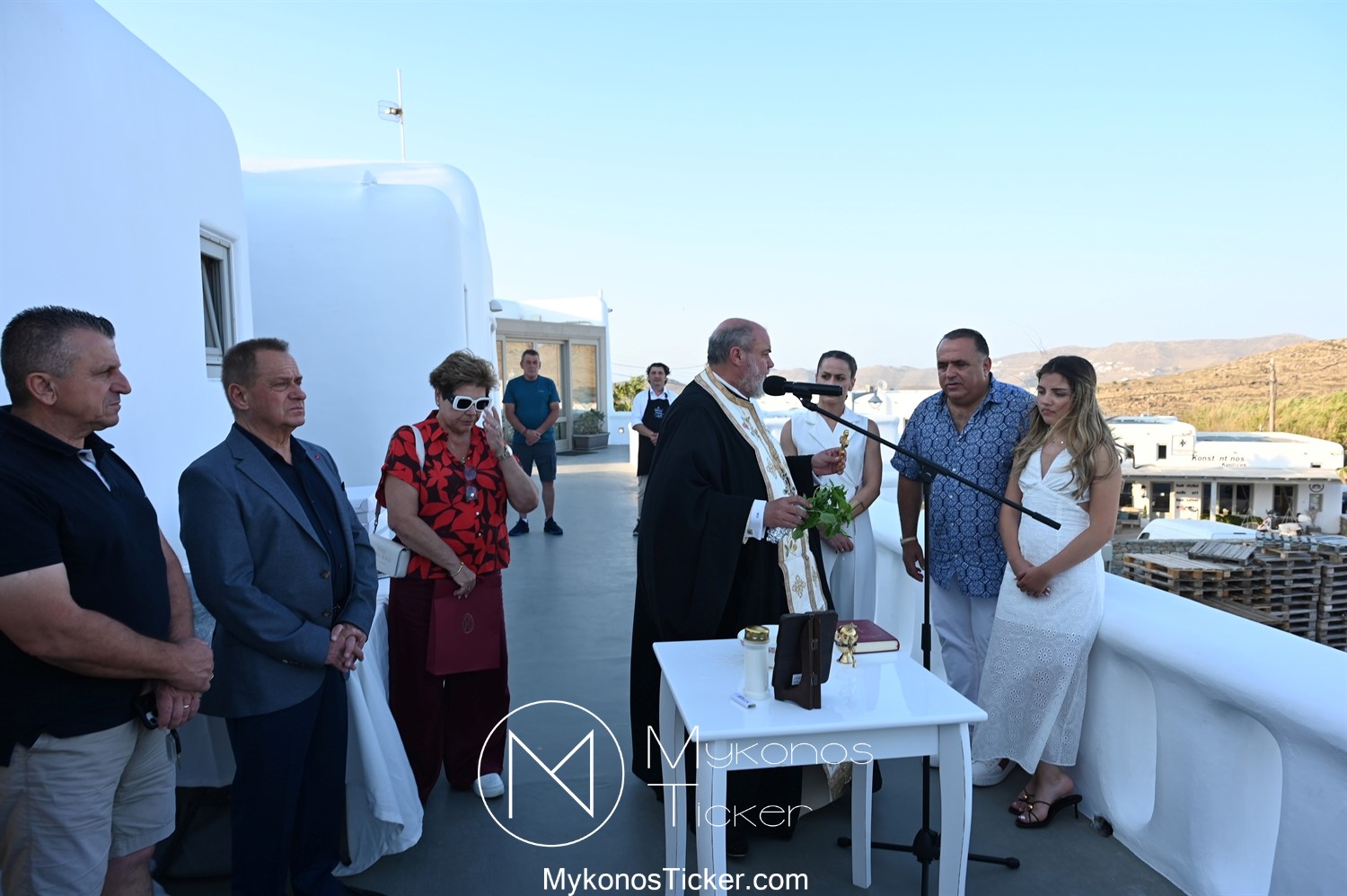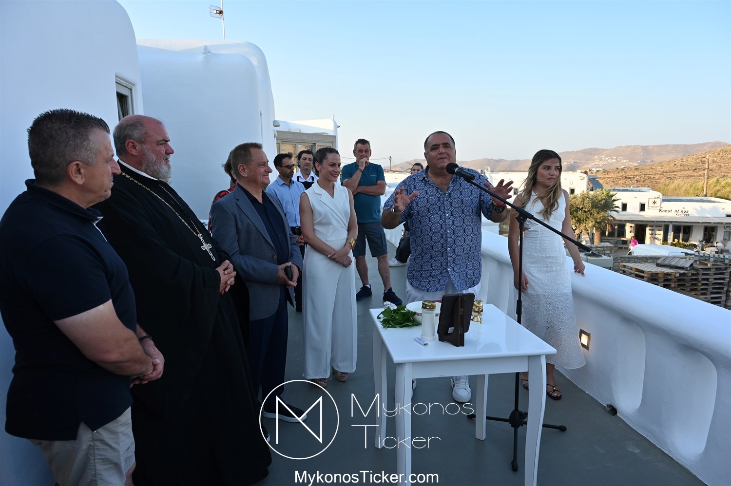 Στο πλαίσιο των εγκαινίων τελέσθηκε Αγιασμός από τον  Αρχιερατικό Επίτροπο Δήλου και Μυκόνου, Αιδεσιμολογιώτατο, π. Πέτρο Μαραγκό, ο οποίος ευχήθηκε στον αντιστράτηγο ε. α, Μανώλη Σφακιανάκη και στους συνεργάτες του, ενώ παράλληλα μετέφερε προς όλους τις ευχές και την αγάπη του Σεβασμιωτάτου Μητροπολίτου Σύρου και Μυκόνου κ.κ. Δωροθέου Β’.