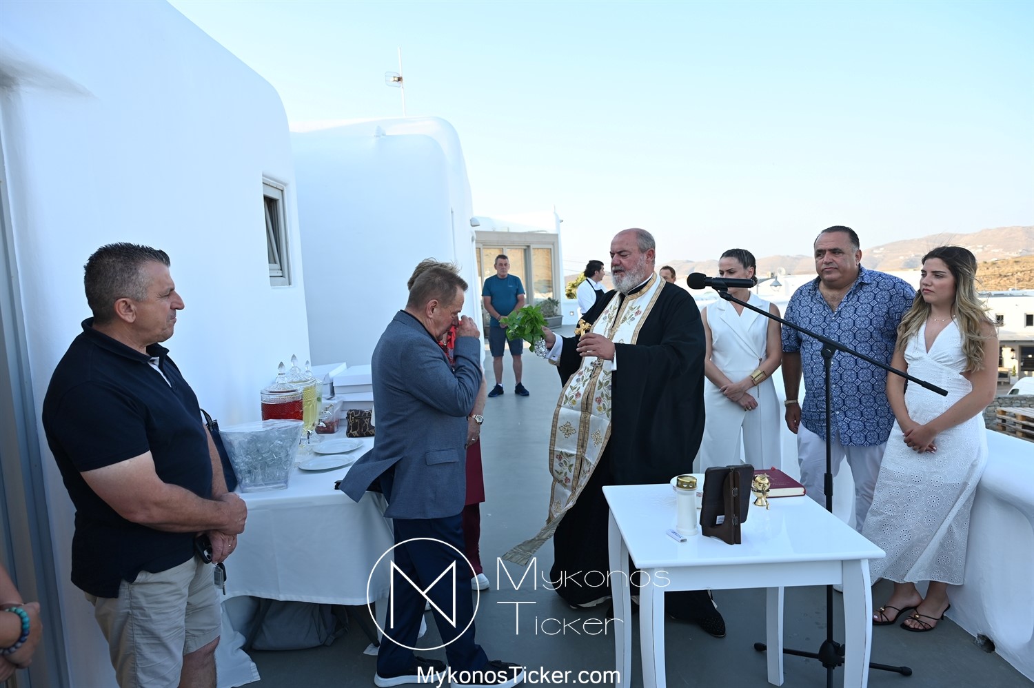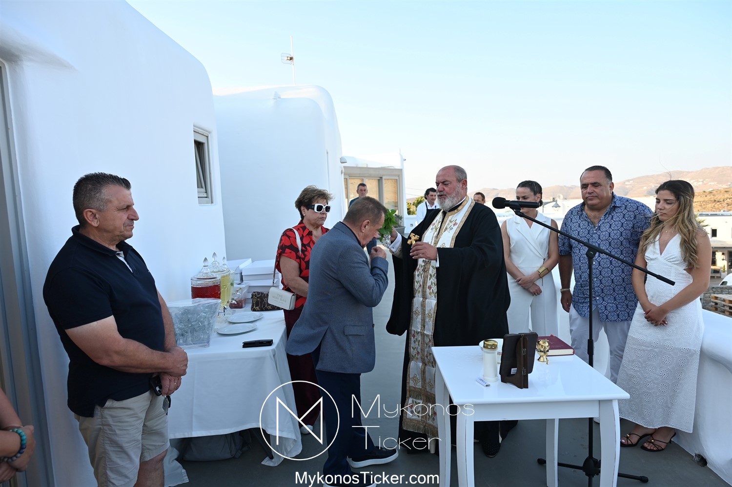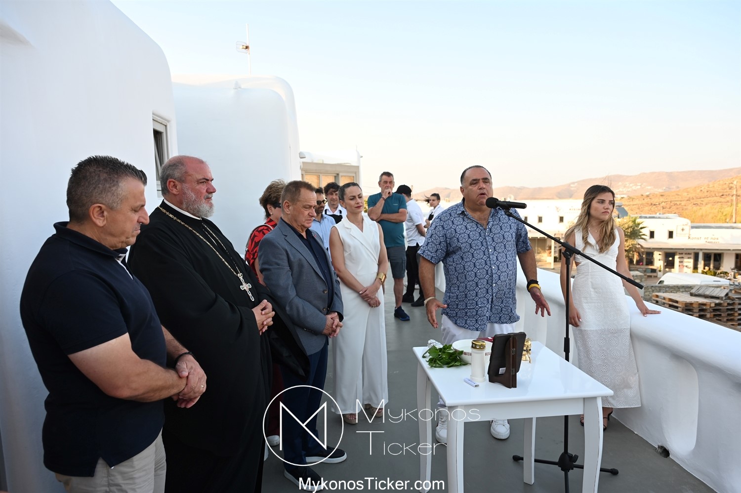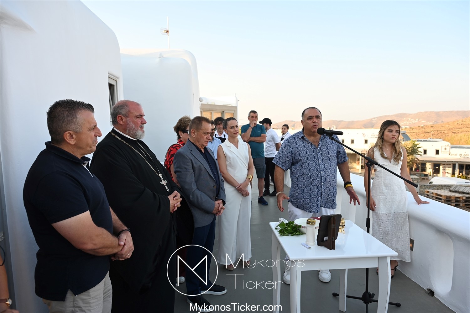 Στο πλαίσιο των εγκαινίων τελέσθηκε Αγιασμός από τον  Αρχιερατικό Επίτροπο Δήλου και Μυκόνου, Αιδεσιμολογιώτατο, π. Πέτρο Μαραγκό, ο οποίος ευχήθηκε στον αντιστράτηγο ε. α, Μανώλη Σφακιανάκη και στους συνεργάτες του, ενώ παράλληλα μετέφερε προς όλους τις ευχές και την αγάπη του Σεβασμιωτάτου Μητροπολίτου Σύρου και Μυκόνου κ.κ. Δωροθέου Β’.