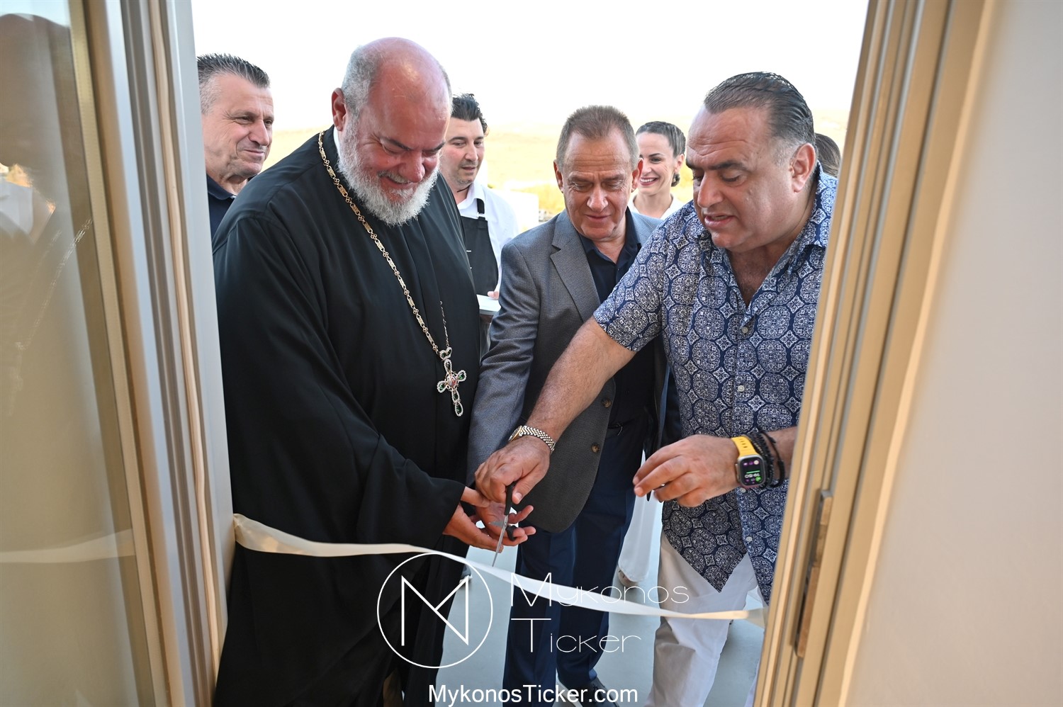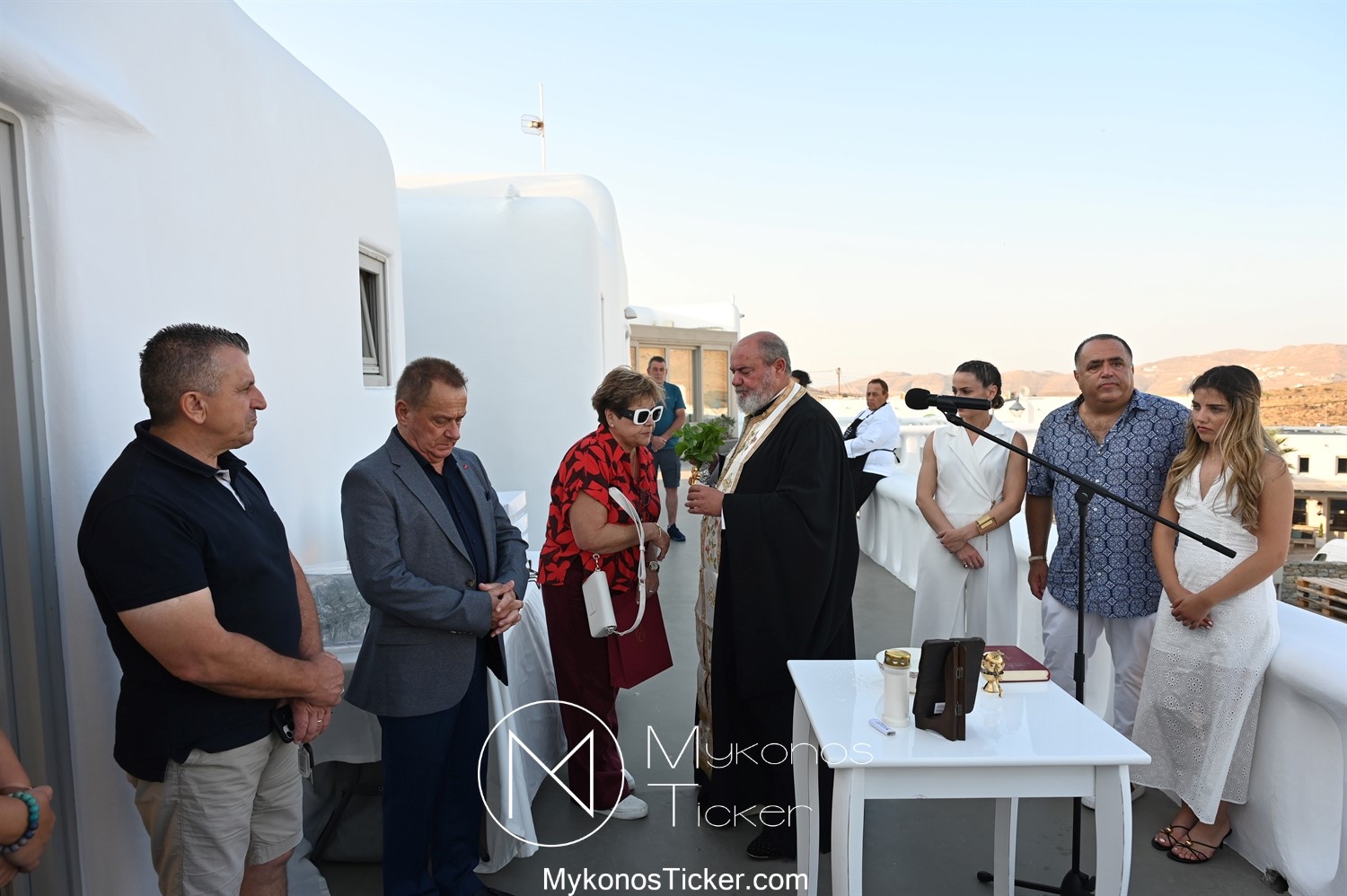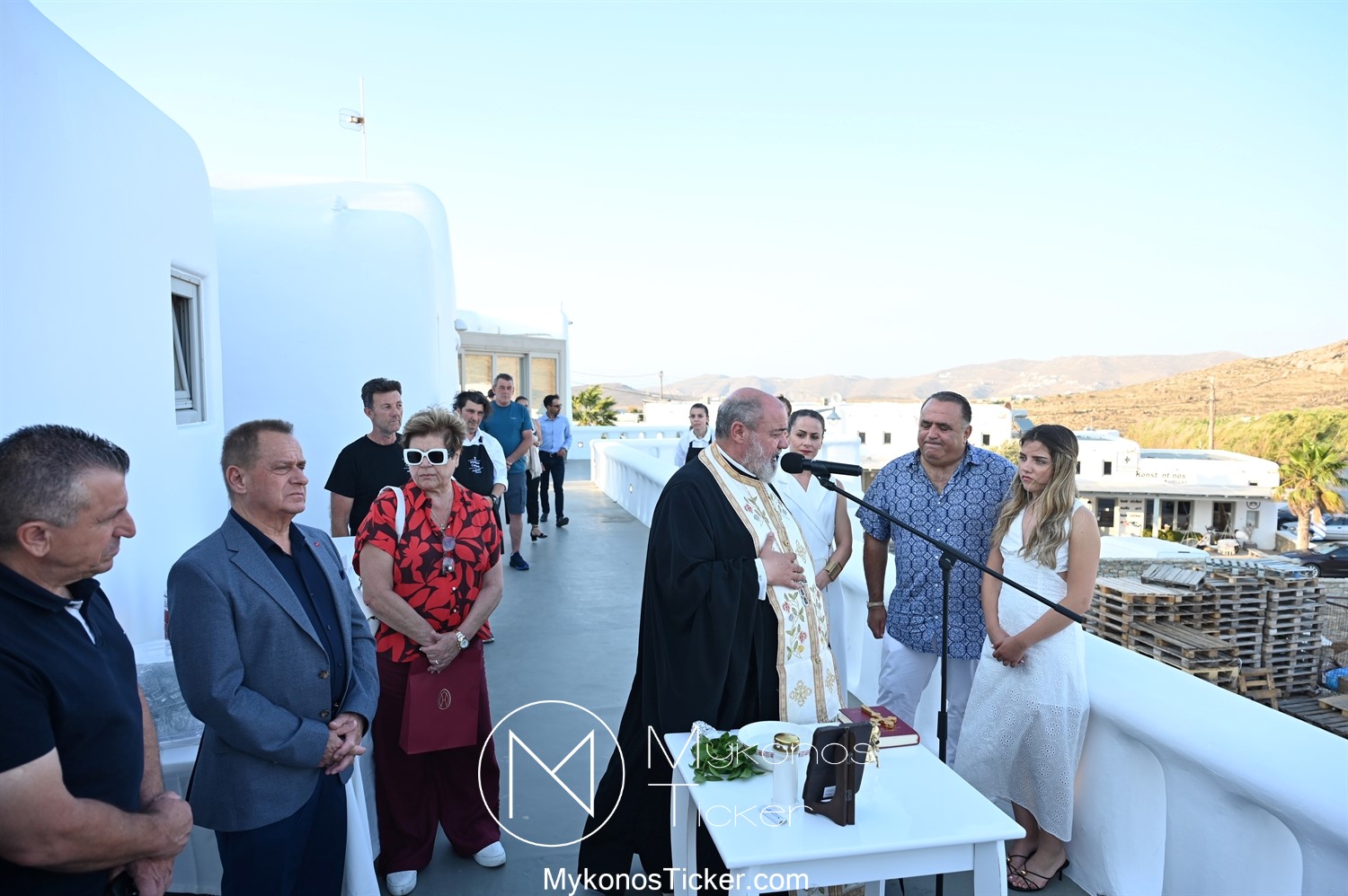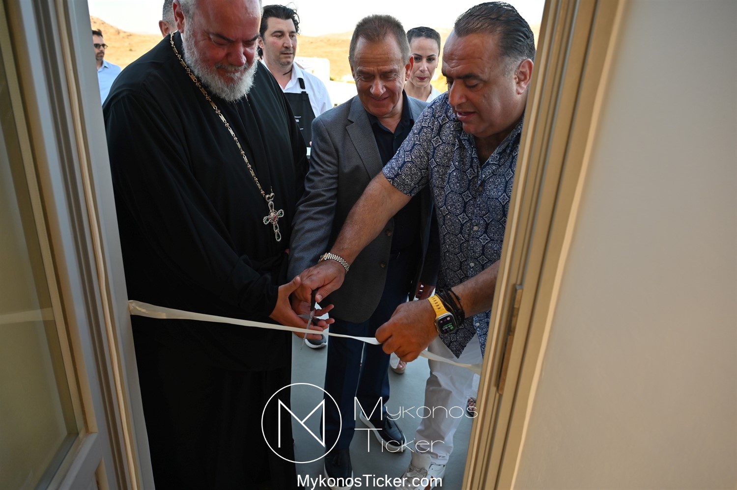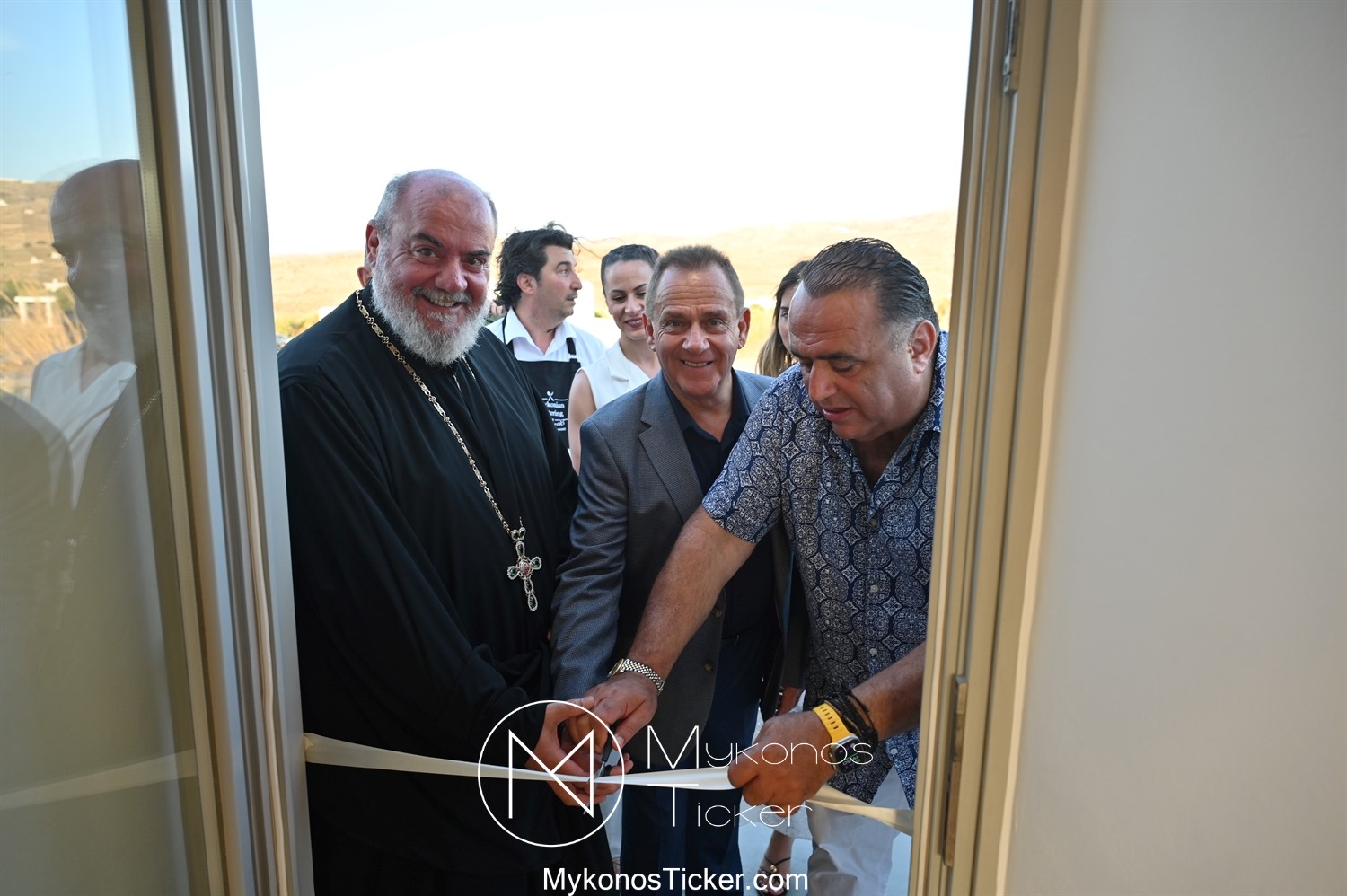 Στο πλαίσιο των εγκαινίων τελέσθηκε Αγιασμός από τον  Αρχιερατικό Επίτροπο Δήλου και Μυκόνου, Αιδεσιμολογιώτατο, π. Πέτρο Μαραγκό, ο οποίος ευχήθηκε στον αντιστράτηγο ε. α, Μανώλη Σφακιανάκη και στους συνεργάτες του, ενώ παράλληλα μετέφερε προς όλους τις ευχές και την αγάπη του Σεβασμιωτάτου Μητροπολίτου Σύρου και Μυκόνου κ.κ. Δωροθέου Β’.