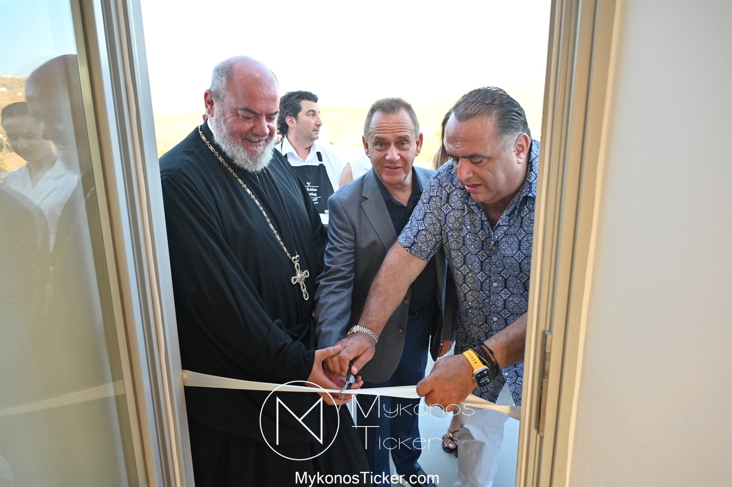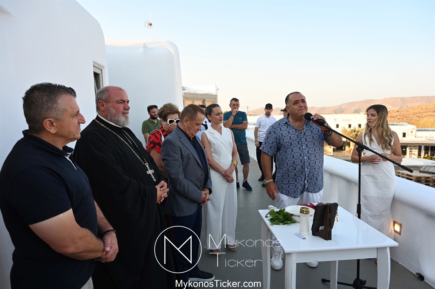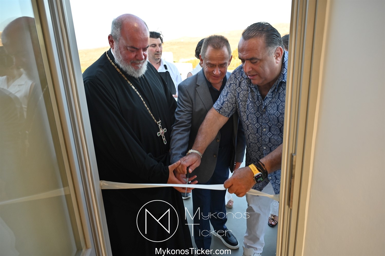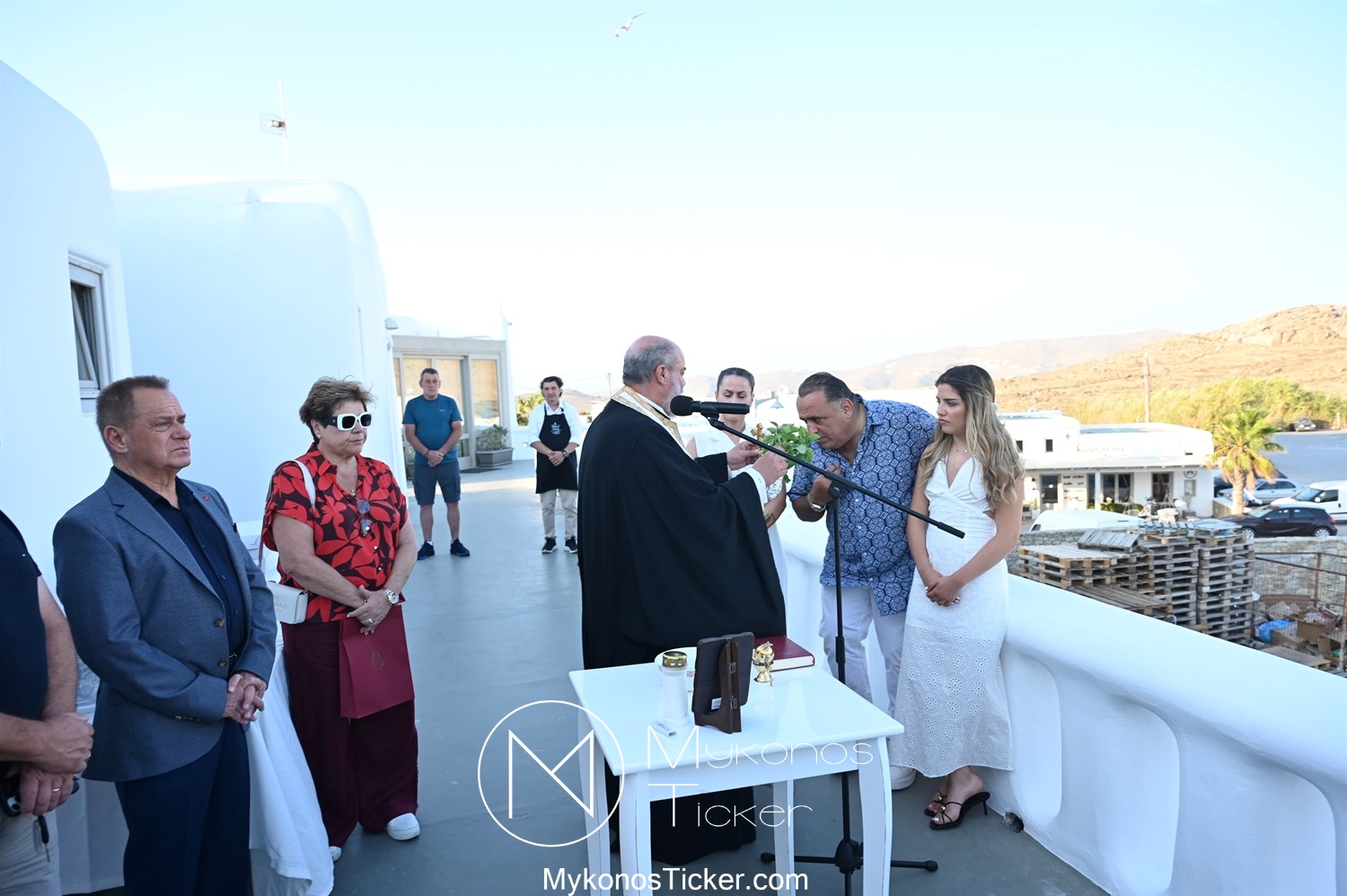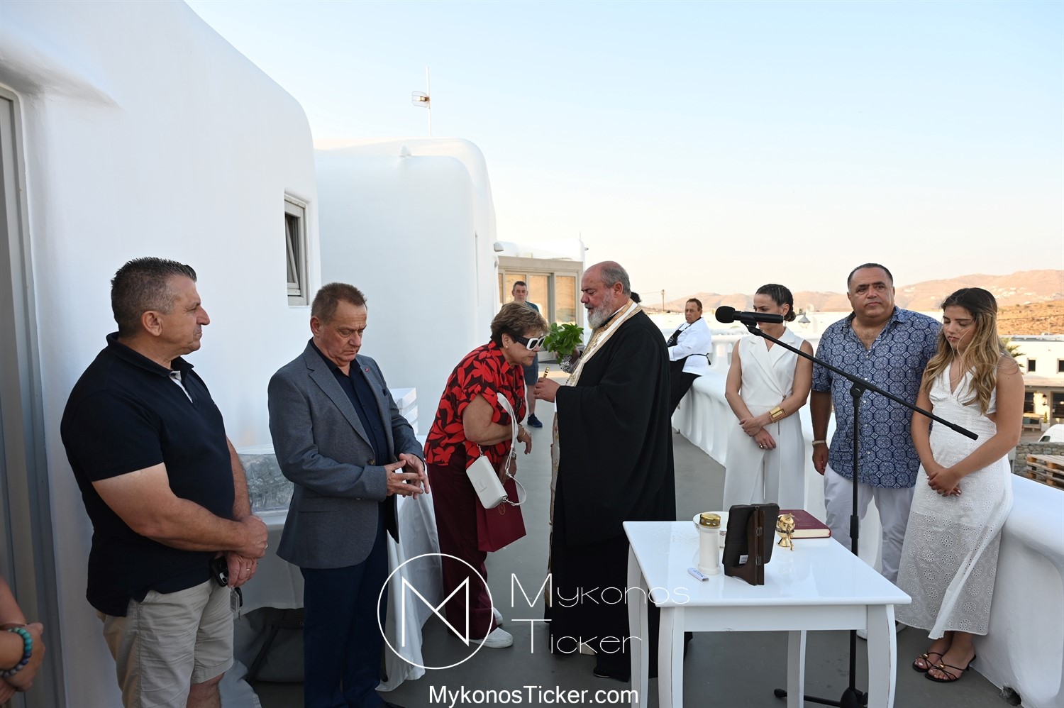 Στο πλαίσιο των εγκαινίων τελέσθηκε Αγιασμός από τον  Αρχιερατικό Επίτροπο Δήλου και Μυκόνου, Αιδεσιμολογιώτατο, π. Πέτρο Μαραγκό, ο οποίος ευχήθηκε στον αντιστράτηγο ε. α, Μανώλη Σφακιανάκη και στους συνεργάτες του, ενώ παράλληλα μετέφερε προς όλους τις ευχές και την αγάπη του Σεβασμιωτάτου Μητροπολίτου Σύρου και Μυκόνου κ.κ. Δωροθέου Β’.