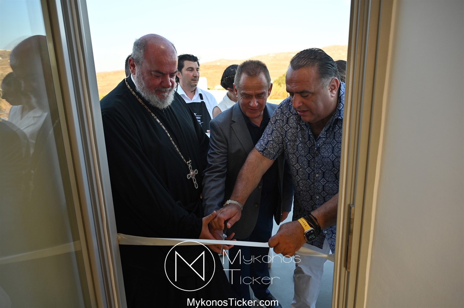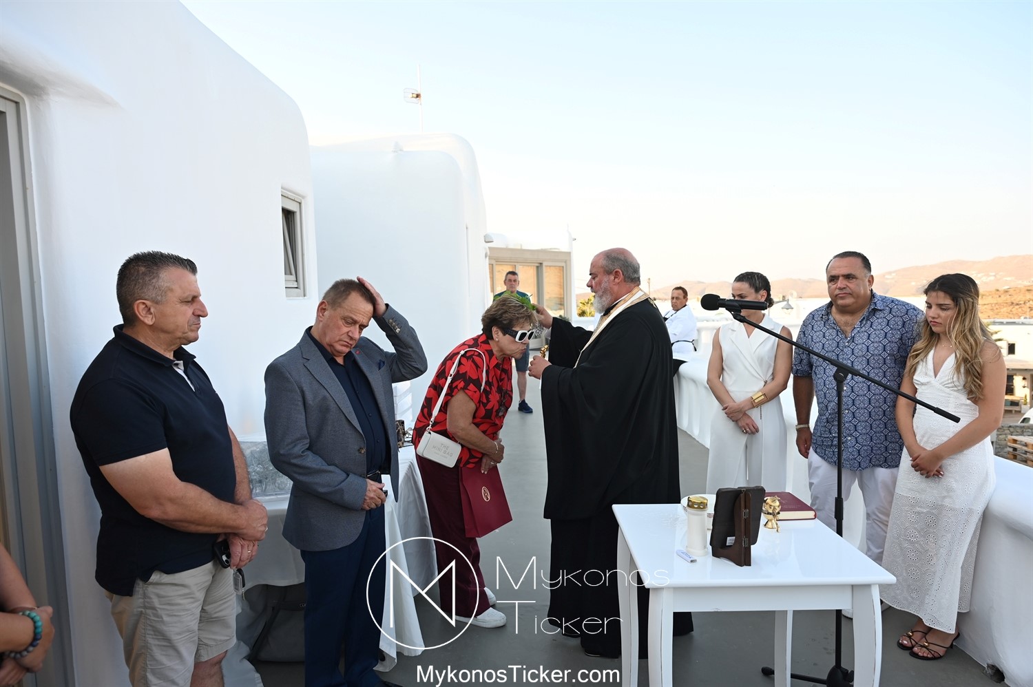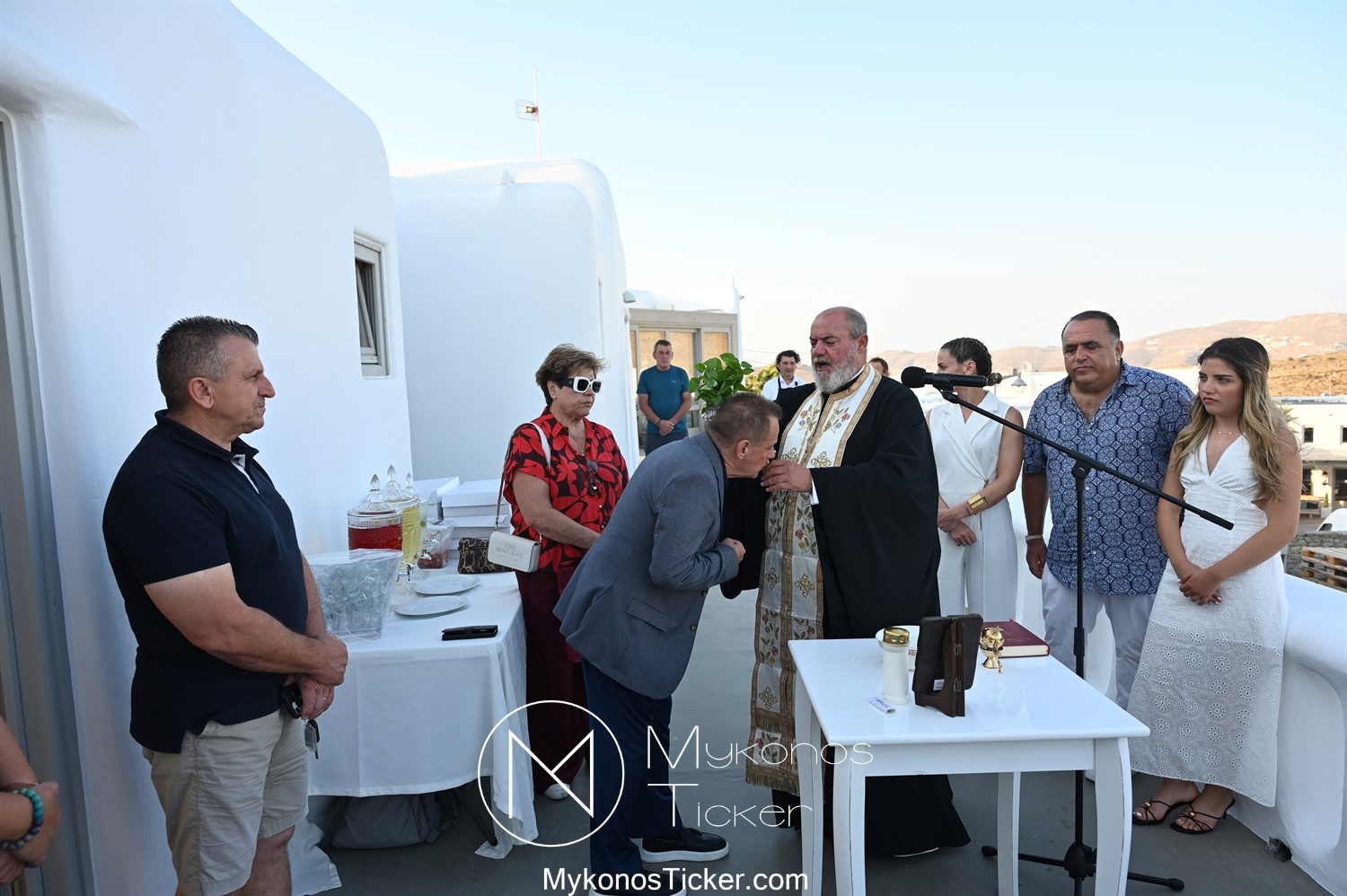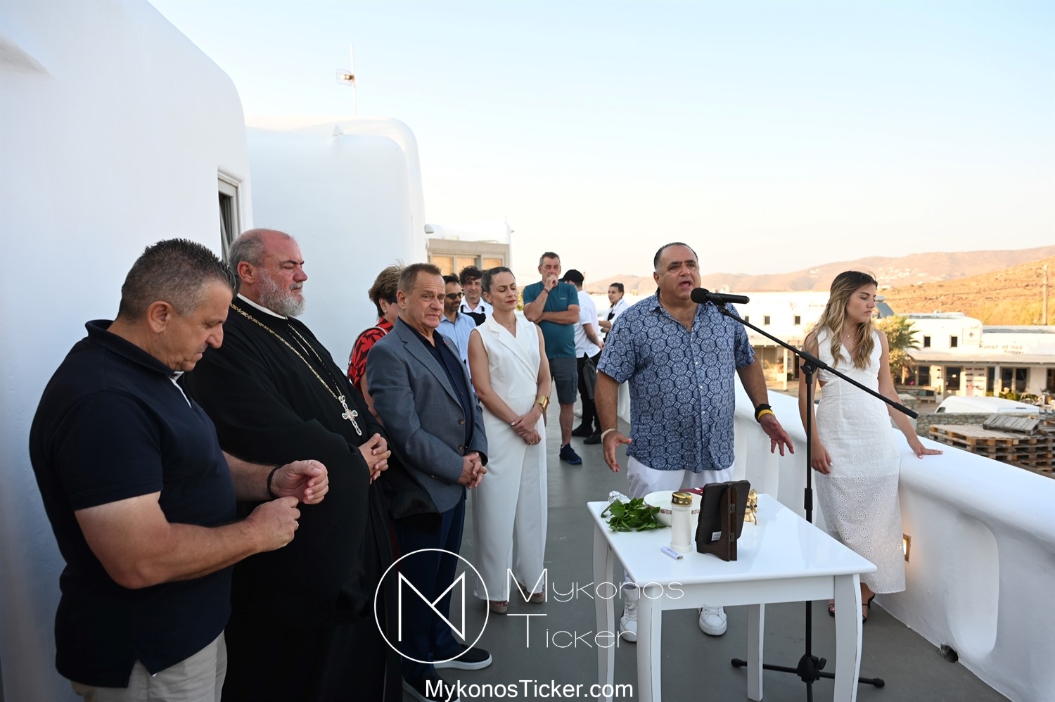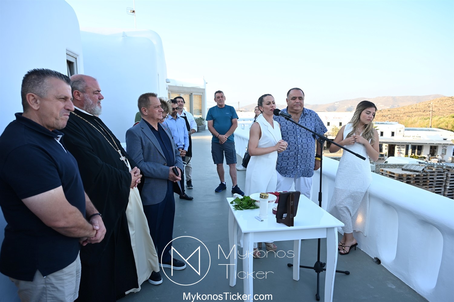 Στο πλαίσιο των εγκαινίων τελέσθηκε Αγιασμός από τον  Αρχιερατικό Επίτροπο Δήλου και Μυκόνου, Αιδεσιμολογιώτατο, π. Πέτρο Μαραγκό, ο οποίος ευχήθηκε στον αντιστράτηγο ε. α, Μανώλη Σφακιανάκη και στους συνεργάτες του, ενώ παράλληλα μετέφερε προς όλους τις ευχές και την αγάπη του Σεβασμιωτάτου Μητροπολίτου Σύρου και Μυκόνου κ.κ. Δωροθέου Β’.