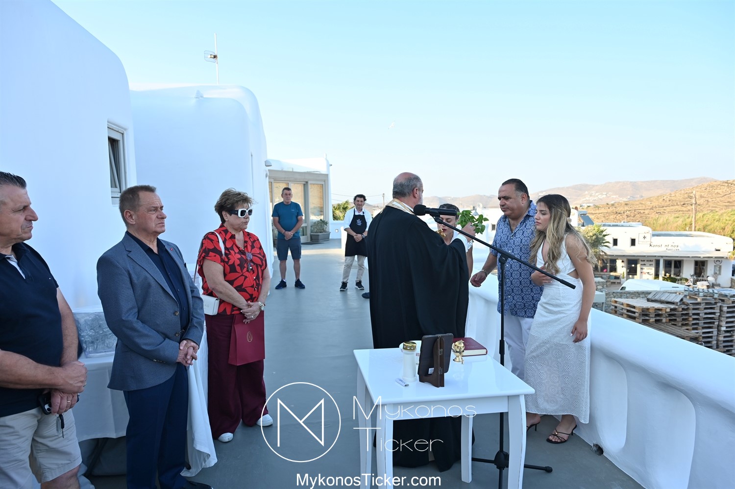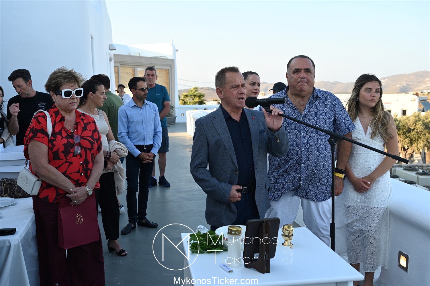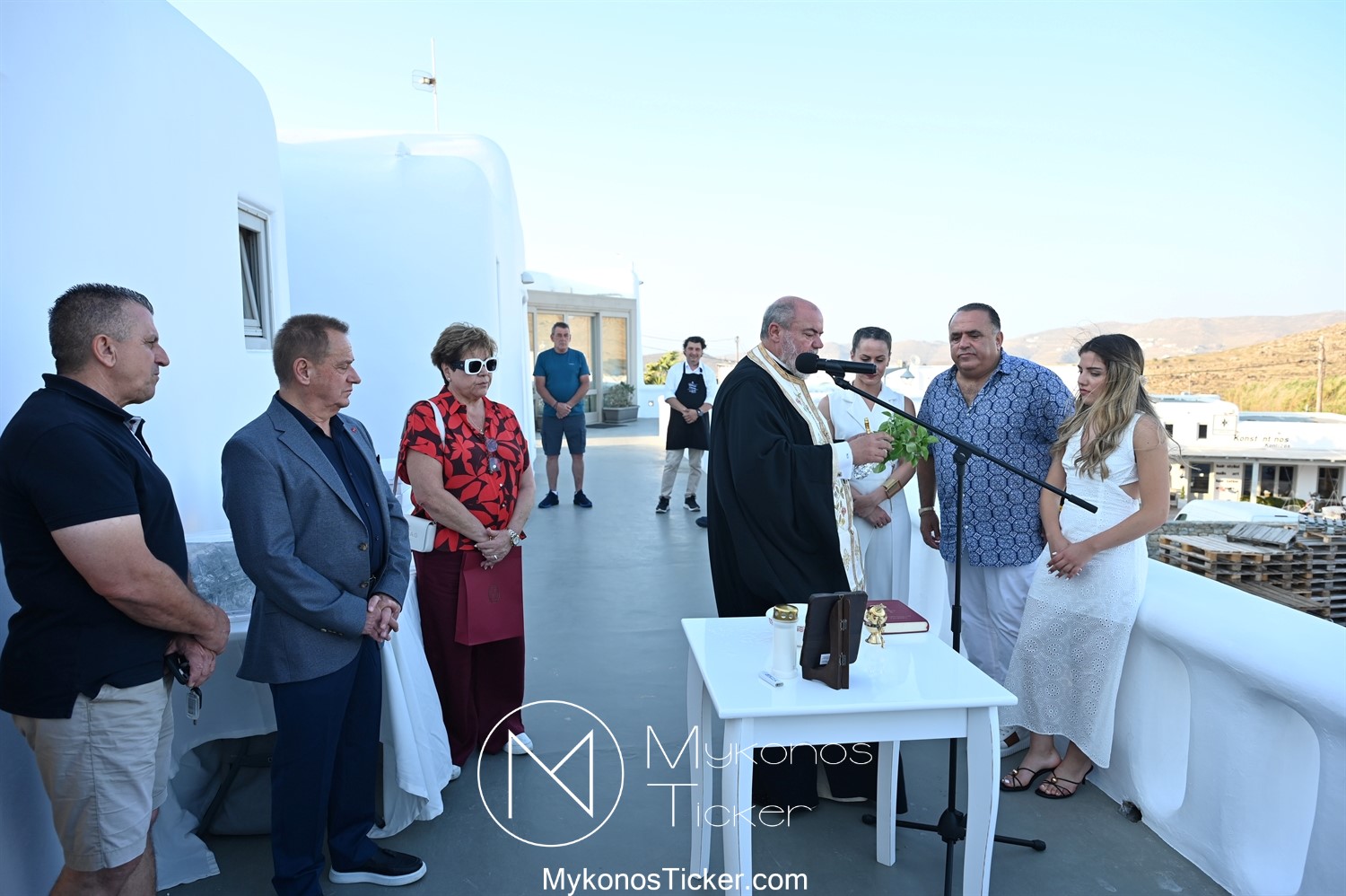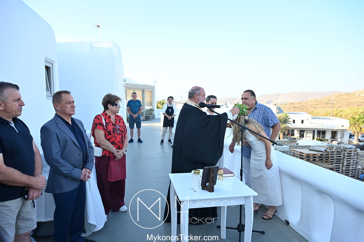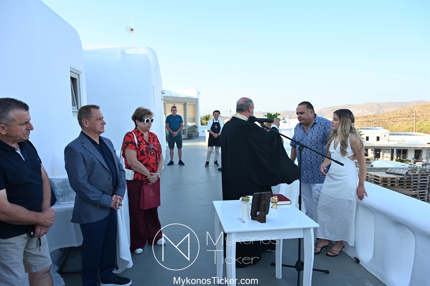 Στο πλαίσιο των εγκαινίων τελέσθηκε Αγιασμός από τον  Αρχιερατικό Επίτροπο Δήλου και Μυκόνου, Αιδεσιμολογιώτατο, π. Πέτρο Μαραγκό, ο οποίος ευχήθηκε στον αντιστράτηγο ε. α, Μανώλη Σφακιανάκη και στους συνεργάτες του, ενώ παράλληλα μετέφερε προς όλους τις ευχές και την αγάπη του Σεβασμιωτάτου Μητροπολίτου Σύρου και Μυκόνου κ.κ. Δωροθέου Β’.