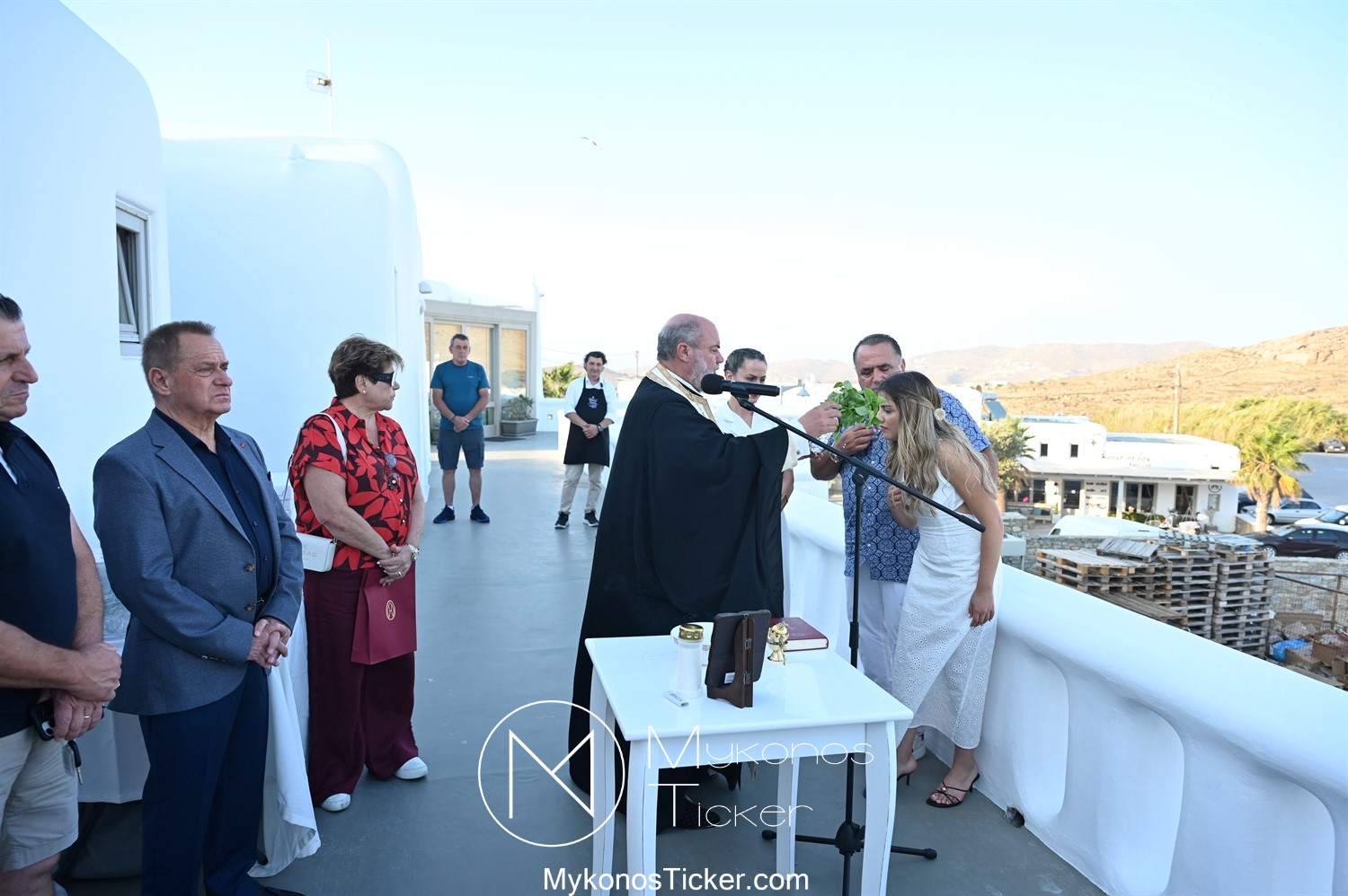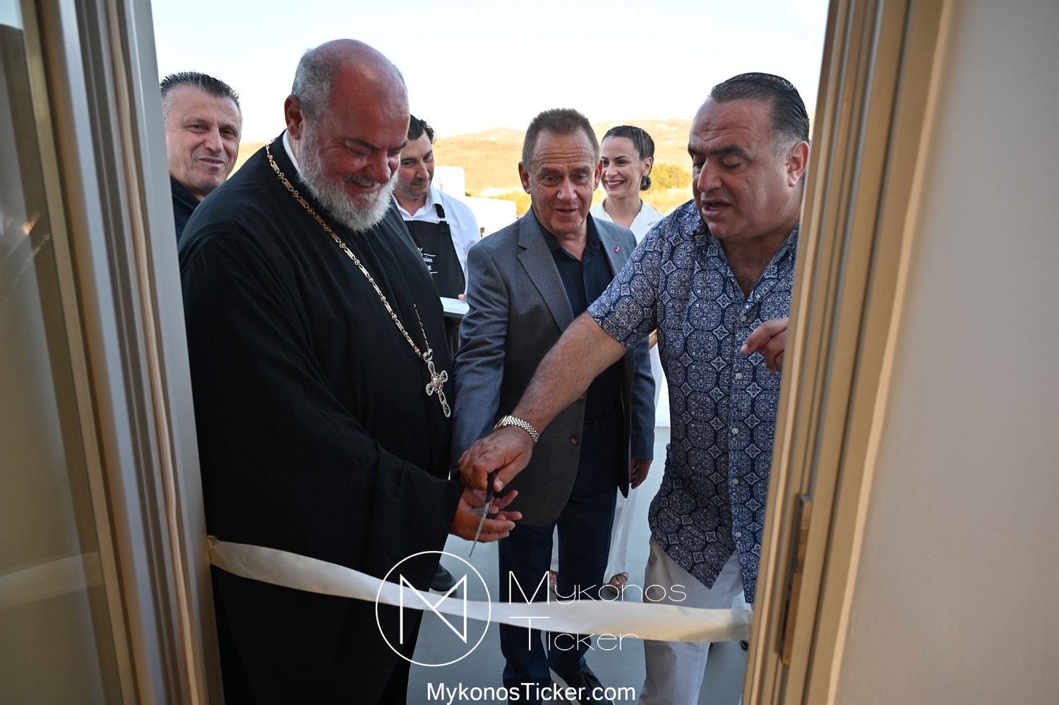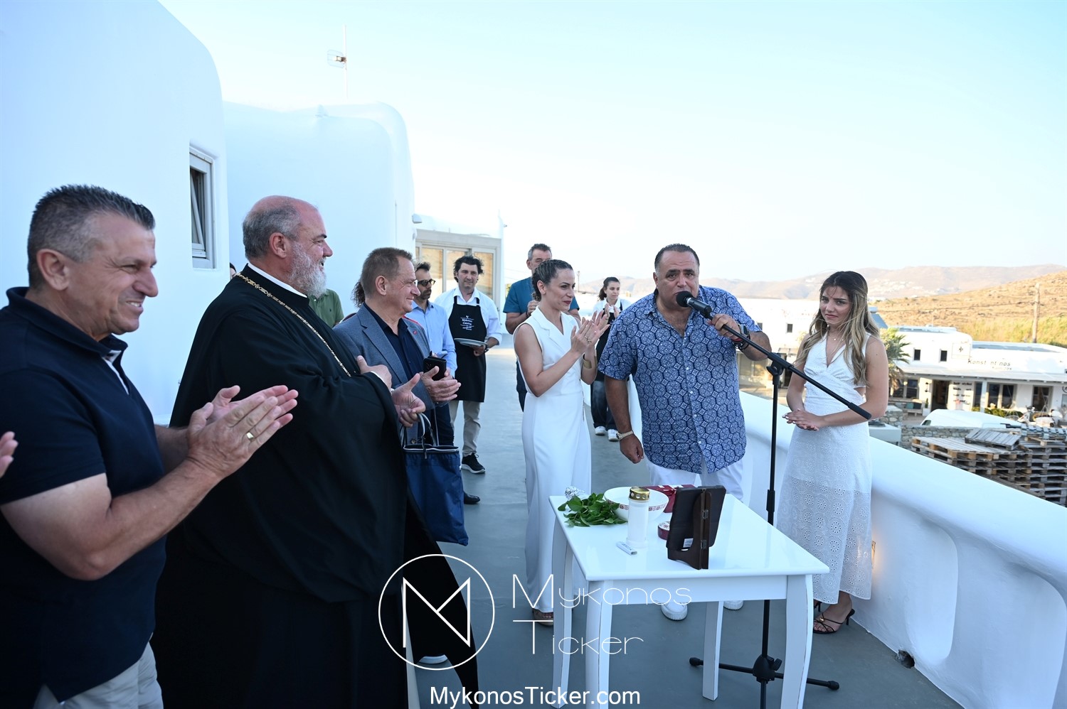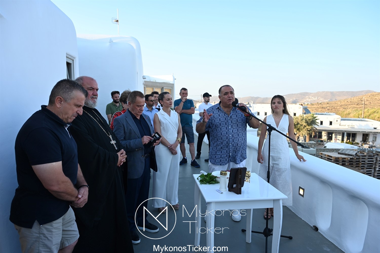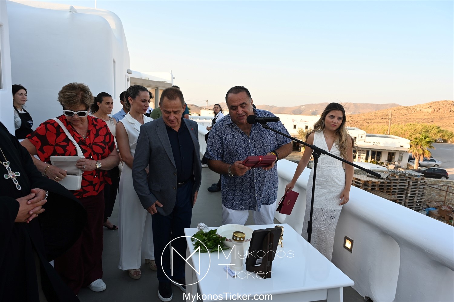 Στο πλαίσιο των εγκαινίων τελέσθηκε Αγιασμός από τον  Αρχιερατικό Επίτροπο Δήλου και Μυκόνου, Αιδεσιμολογιώτατο, π. Πέτρο Μαραγκό, ο οποίος ευχήθηκε στον αντιστράτηγο ε. α, Μανώλη Σφακιανάκη και στους συνεργάτες του, ενώ παράλληλα μετέφερε προς όλους τις ευχές και την αγάπη του Σεβασμιωτάτου Μητροπολίτου Σύρου και Μυκόνου κ.κ. Δωροθέου Β’.