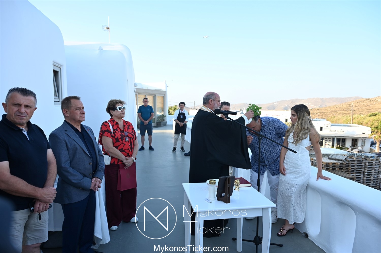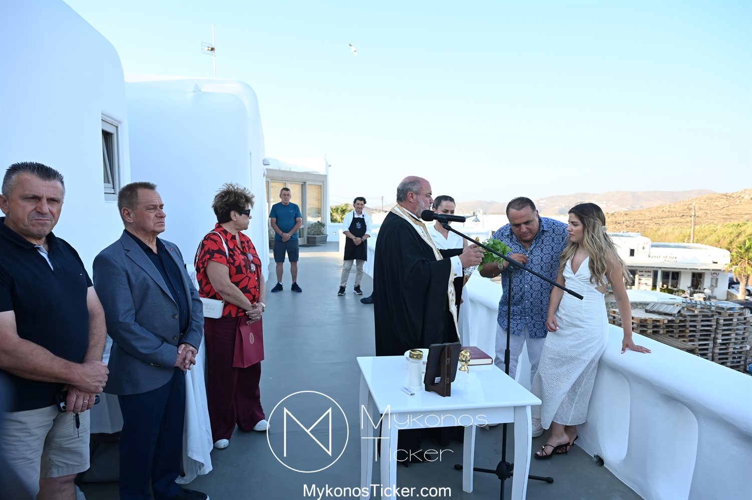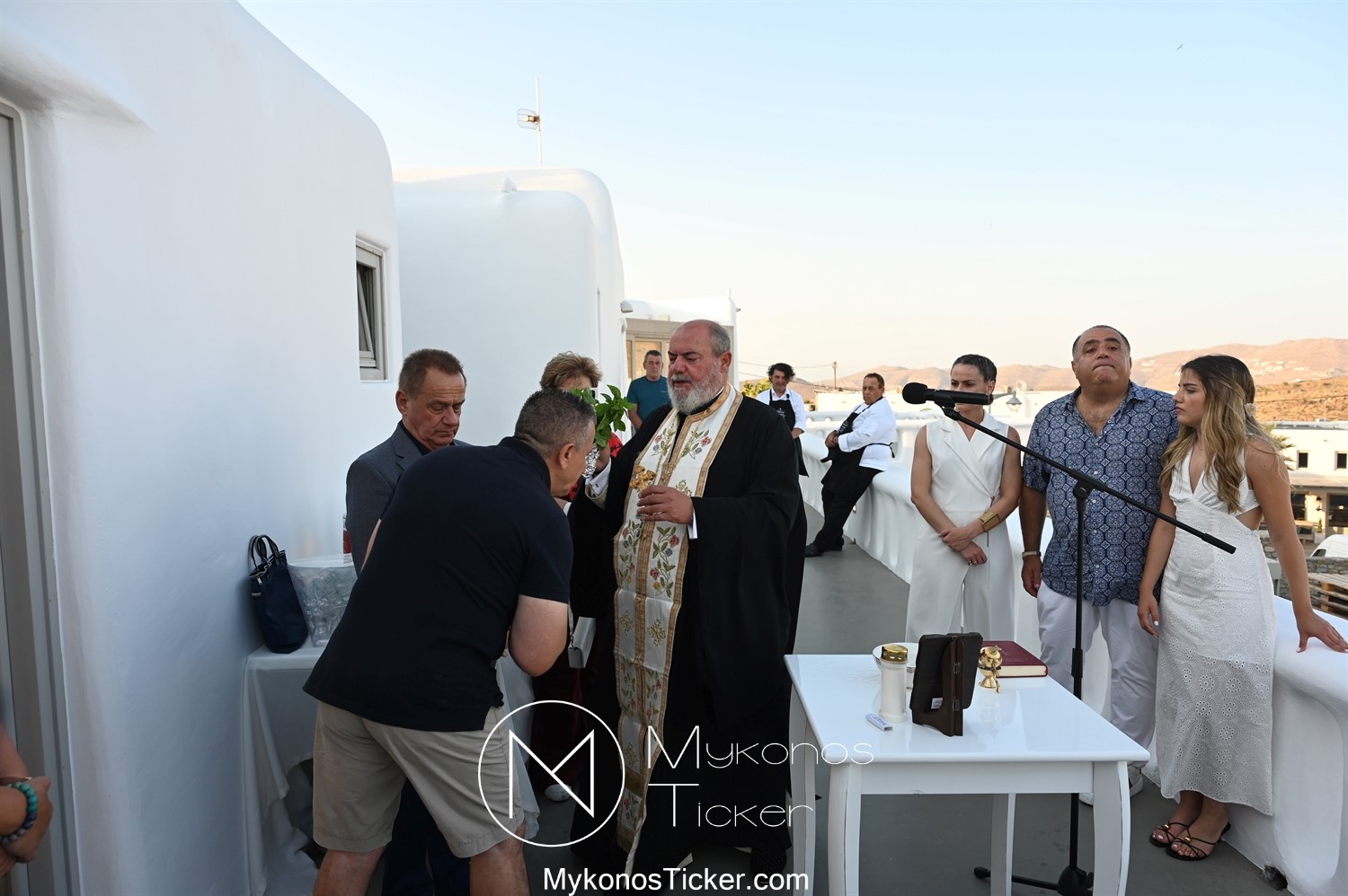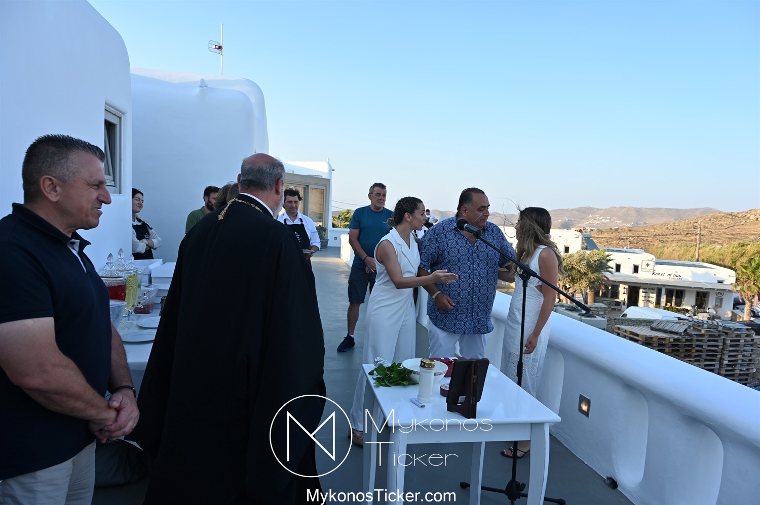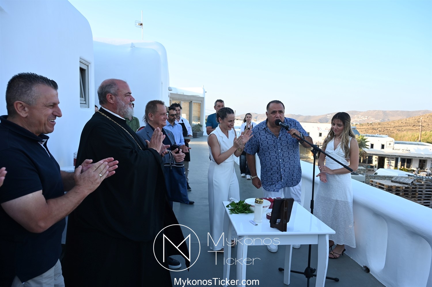 Στο πλαίσιο των εγκαινίων τελέσθηκε Αγιασμός από τον  Αρχιερατικό Επίτροπο Δήλου και Μυκόνου, Αιδεσιμολογιώτατο, π. Πέτρο Μαραγκό, ο οποίος ευχήθηκε στον αντιστράτηγο ε. α, Μανώλη Σφακιανάκη και στους συνεργάτες του, ενώ παράλληλα μετέφερε προς όλους τις ευχές και την αγάπη του Σεβασμιωτάτου Μητροπολίτου Σύρου και Μυκόνου κ.κ. Δωροθέου Β’.