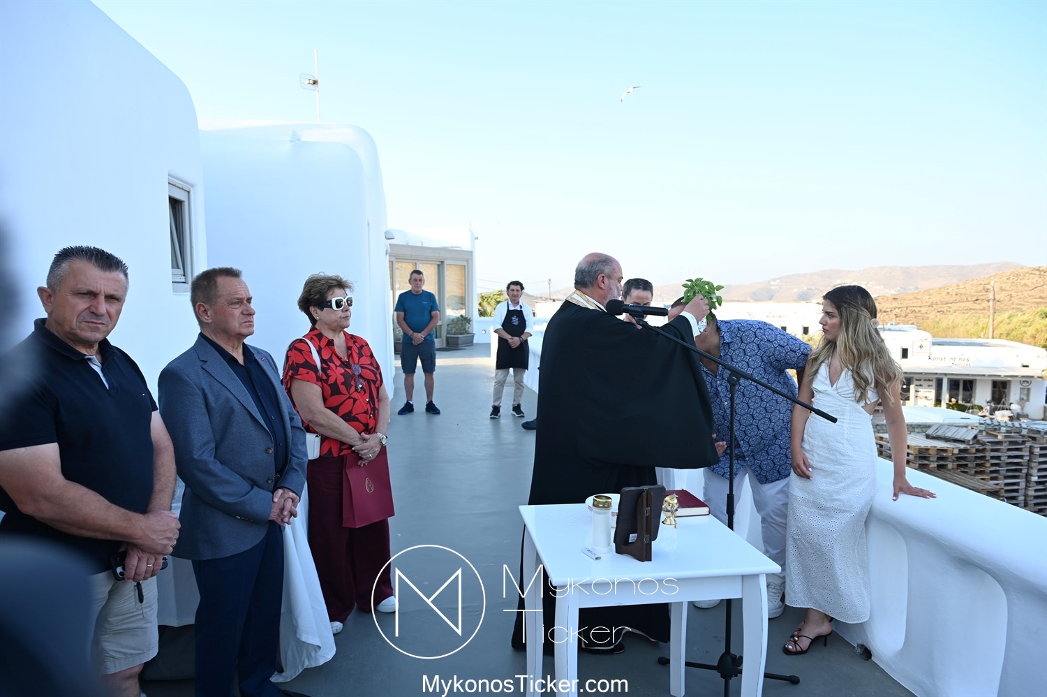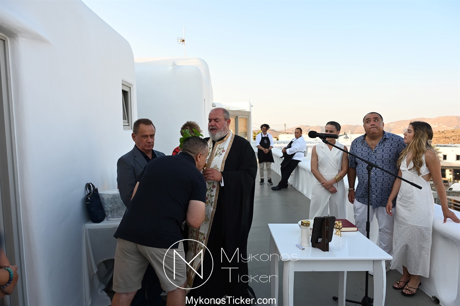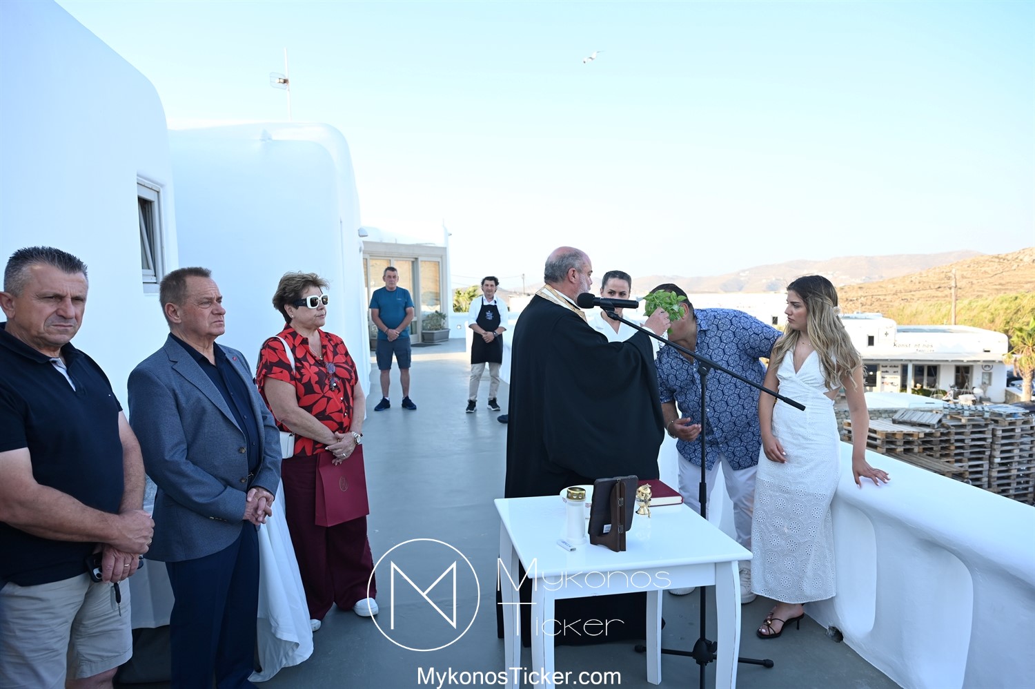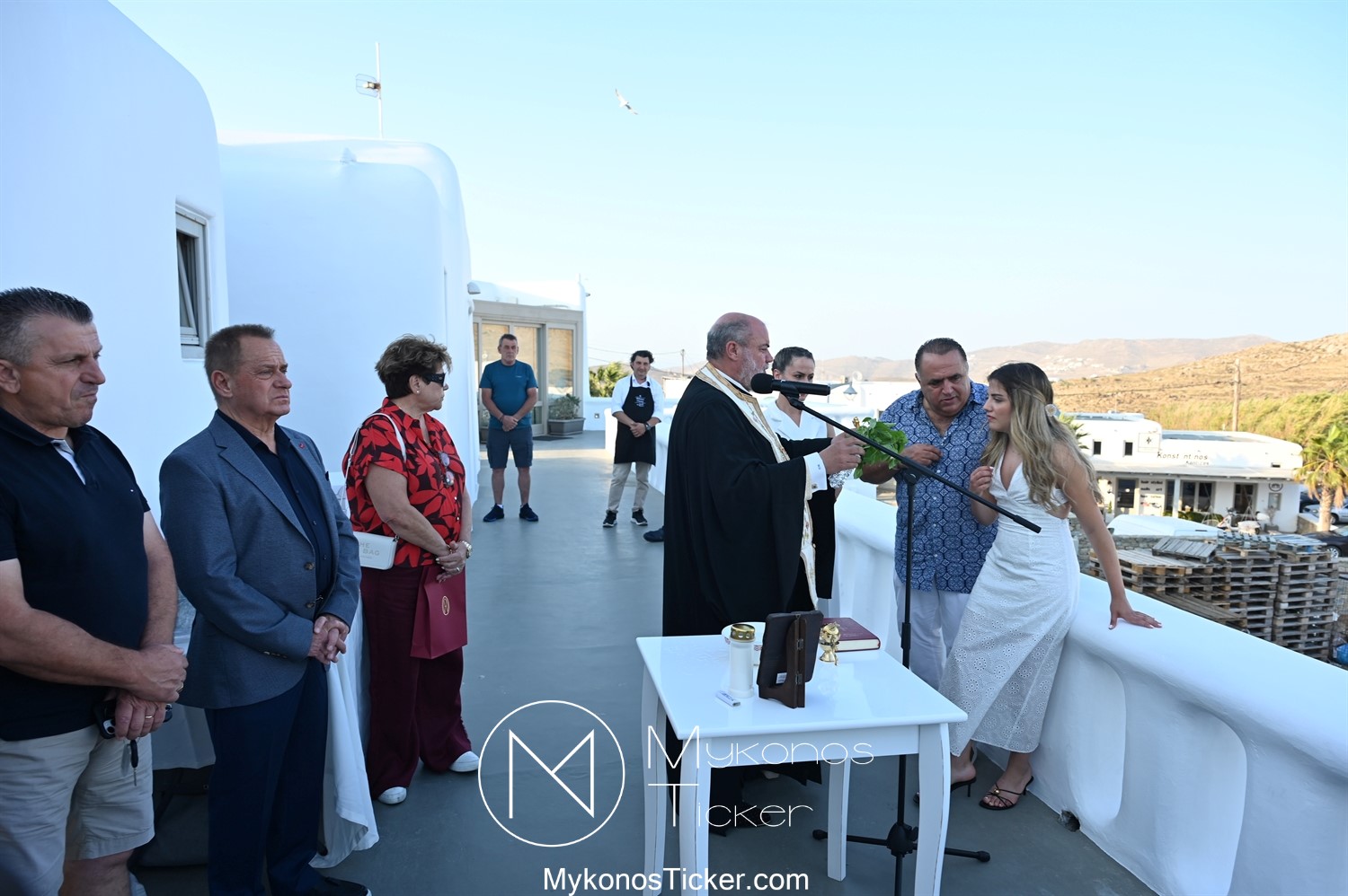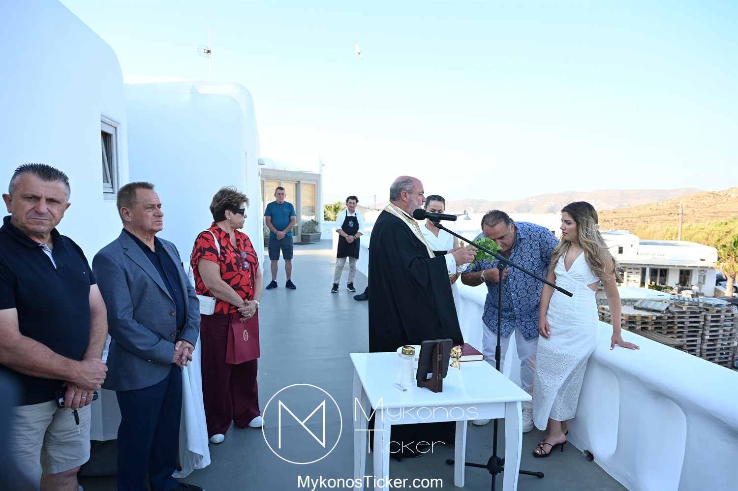 Στο πλαίσιο των εγκαινίων τελέσθηκε Αγιασμός από τον  Αρχιερατικό Επίτροπο Δήλου και Μυκόνου, Αιδεσιμολογιώτατο, π. Πέτρο Μαραγκό, ο οποίος ευχήθηκε στον αντιστράτηγο ε. α, Μανώλη Σφακιανάκη και στους συνεργάτες του, ενώ παράλληλα μετέφερε προς όλους τις ευχές και την αγάπη του Σεβασμιωτάτου Μητροπολίτου Σύρου και Μυκόνου κ.κ. Δωροθέου Β’.