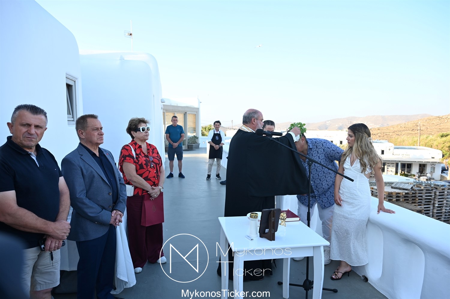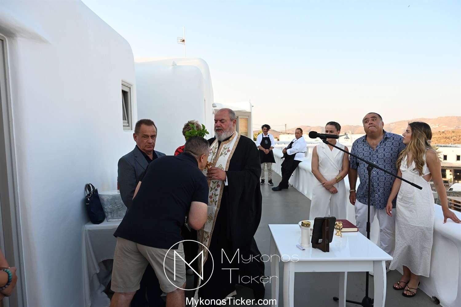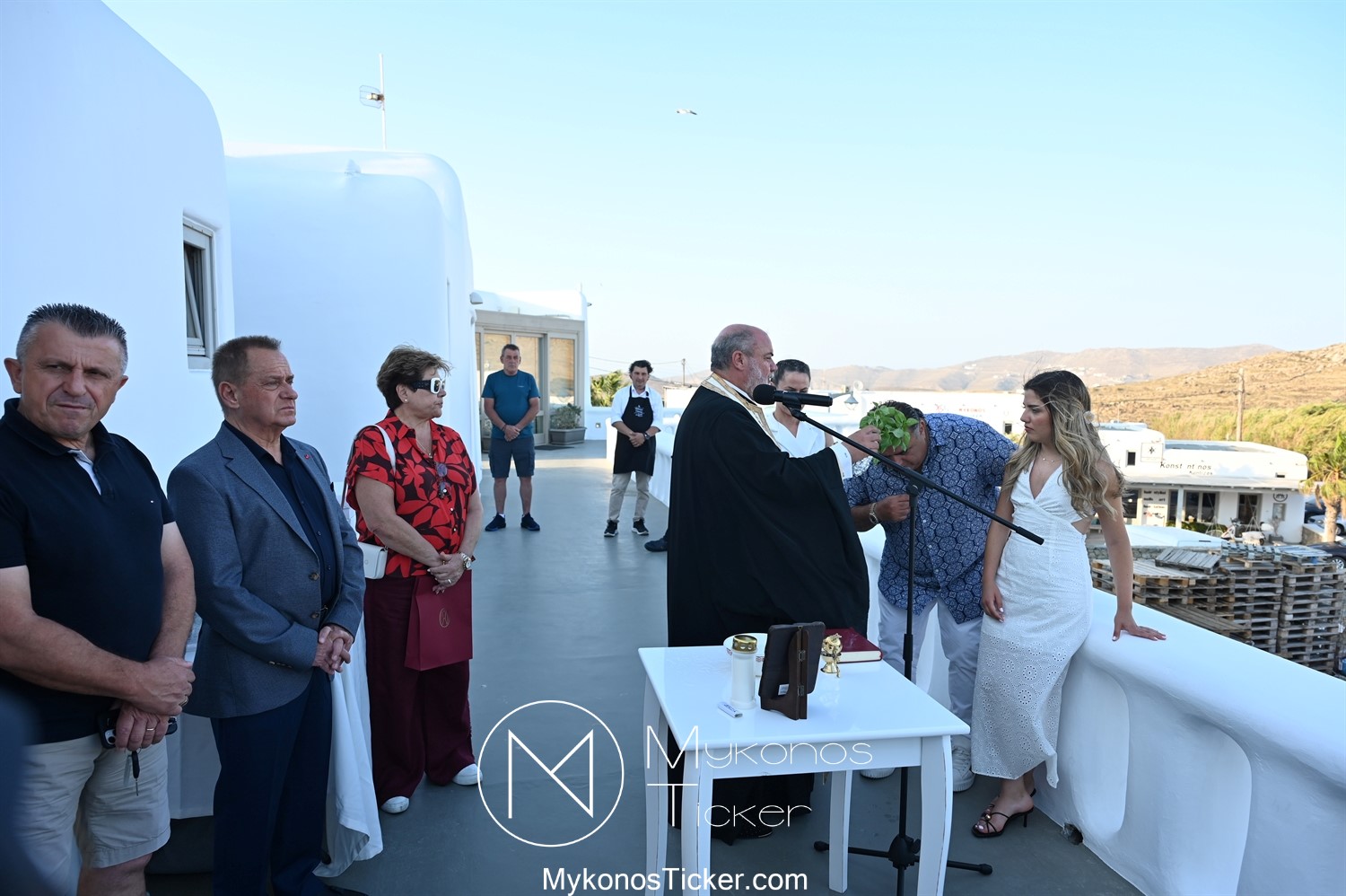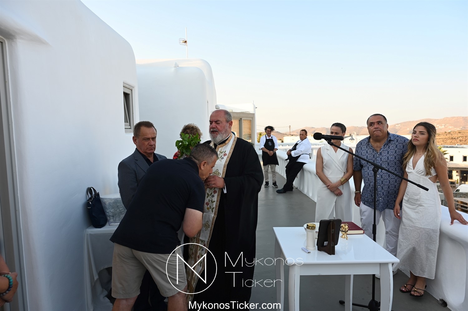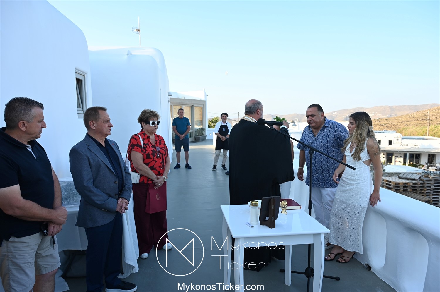 Στο πλαίσιο των εγκαινίων τελέσθηκε Αγιασμός από τον  Αρχιερατικό Επίτροπο Δήλου και Μυκόνου, Αιδεσιμολογιώτατο, π. Πέτρο Μαραγκό, ο οποίος ευχήθηκε στον αντιστράτηγο ε. α, Μανώλη Σφακιανάκη και στους συνεργάτες του, ενώ παράλληλα μετέφερε προς όλους τις ευχές και την αγάπη του Σεβασμιωτάτου Μητροπολίτου Σύρου και Μυκόνου κ.κ. Δωροθέου Β’.