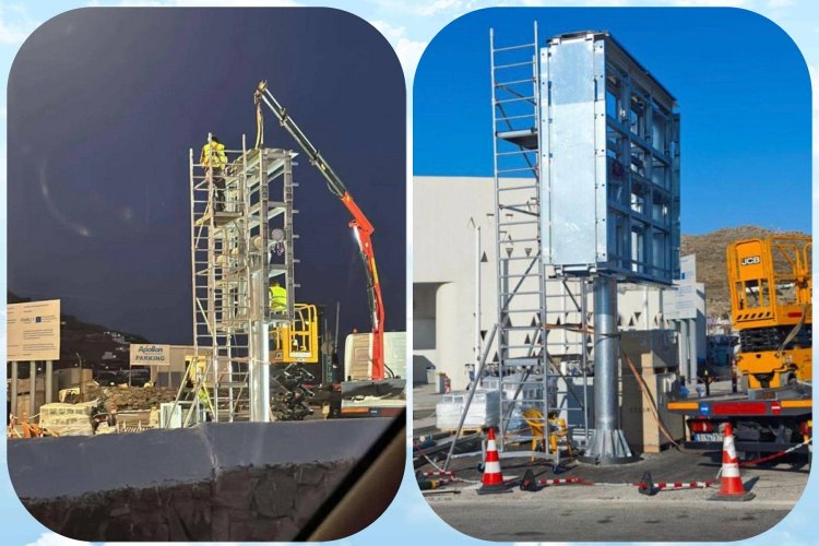 Την έντονη αντίδραση και την εύλογη αγανάκτηση της Δημοτικής Αρχής και της Μυκονιάτικης κοινωνίας προκαλεί η έναρξη εργασιών τοποθέτησης υπερμεγεθών και ακαλαίσθητων φωτιστικών διαφημιστικών πλαισίων επί κατακόρυφου στύλου στο χώρο έμπροσθεν του Αερολιμένα Μύκονου